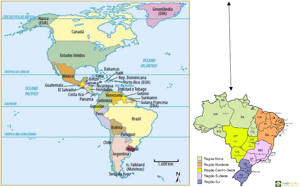 O TERRITÓRIO BRASILEIRO O Brasil é um país de dimensões continentais, isso significa que seu tamanho pode ser comparado ao de continentes como Europa e Oceania. Mas o Brasil não é grande apenas em tamanho, ele é gigante em natureza - possui diversidade natural, com vários tipos de vegetações, de climas, de solos e de relevos. Além disso, o Brasil possui realidades sociais, econômicas e culturais muito diferentes e desiguais que o tornam um país muito complexo e com muitos desafios para seu governo e seu povo. Seu território nem sempre foi como conhecemos hoje, pois sua construção vem acontecendo há mais de 500 anos por diferentes pessoas em diferentes momentos da história e continuará em construção e modificações por nós e as próximas gerações. Características territoriais: O Brasil está situado na porção sul do continente americano, a América do Sul. De acordo com o Instituto Brasileiro de Geografia e Estatística (IBGE), seu território tem 8.515.759 km² de extensão, nos quais estão distribuídos 26 estados, 5570 municípios e 1 distrito federal. Continente Americano Regiões e Estados do Brasil Copie e responda as questões em uma folha e entregue para a professora 1. Conforme o texto, explique por que o Brasil é considerado um país continental e apresente exemplos. 2. Por que podemos afirmar que o Brasil é um país complexo com muitos desafios para os governos e para o povo? Explique. 3. Qual a localização do Brasil? 4. Segundo o IBGE qual a extensão do Brasil? Quantos estados formam o Brasil? 5. Observe o Mapa: Continente Americano e responda quais países na América do Sul não fazem fronteira com o Brasil? 6. Cite o nome de 5 países que fazem fronteira com o Brasil na América do Sul e são países vizinhos. 7. Analise o mapa: Regiões e Estados do Brasil e cite quais são as regiões brasileiras segundo o IBGE. 8. Qual região do Brasil você vive? 9. Observe no mapa: “Regiões e Estados do Brasil e indique quais estados compõem a região em que você mora? image1.jpeg image2.jpeg