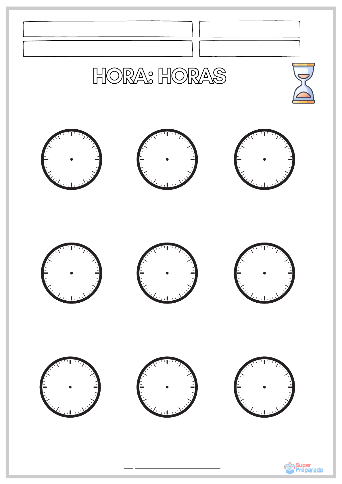 https://desafiosmate.com.br/ Nome: Data: / / Professor(a): Turma: 3:00 4:00 9:00 12:00 6:00 11:00 2:001:007:00 HORA: HORASHORA: HORAS ANOTE AS HORAS NOS RELÓGIOS ABAIXO: https://desafiosmate.com.br/ https://desafiosmate.com.br/ https://desafiosmate.com.br/ Nome: Data: / / Professor(a): Turma: CONTANDO O TEMPO ATÉ A MEIA HORA DESENHE OS PONTEIROS DO RELÓGIO DE ACORDO COM A HORA INDICADA. 5 30 12 30 1 30 https://desafiosmate.com.br/ https://desafiosmate.com.br/ https://desafiosmate.com.br/ Nome: Data: / / Professor(a): Turma: 10 30 6 30 7 30 DESENHE OS PONTEIROS DO RELÓGIO DE ACORDO COM A HORA INDICADA. CONTANDO O TEMPO ATÉ A MEIA HORA https://desafiosmate.com.br/ https://desafiosmate.com.br/ https://desafiosmate.com.br/ Nome: Data: / / Professor(a): Turma: 12 11 10 9 8 7 6 5 4 3 2 1 CONTANDO O TEMPO PARA A HORA QUAL RELÓGIO DIGITAL MOSTRA A MESMA HORA QUE O RELÓGIO ANALÓGICO? CIRCULE A RESPOSTA CORRETA. 5 4 00 12 00 1 00 10 00 11 00 6 00 12 00 9 00 8 00 8 00 7 00 00 https://desafiosmate.com.br/ https://desafiosmate.com.br/ https://desafiosmate.com.br/ Nome: Data: / / Professor(a): Turma: Eu posso dizer horas. Escreva as horas embaixo de cada relógio. https://desafiosmate.com.br/ https://desafiosmate.com.br/ https://desafiosmate.com.br/ Nome: Data: / / Professor(a): Turma: 12 6 39 12 6 39 12 6 39 12 6 39 12 6 39 12 6 39 12 6 39 12 6 39 12 6 39 : : : : : : : : : LEIA O SENTIDO HORÁRIO E ESCREVA A HORA NA SEÇÃO ABAIXO. https://desafiosmate.com.br/ https://desafiosmate.com.br/ https://desafiosmate.com.br/ Nome: Data: / / Professor(a): Turma: 11:35 07:20 09:00 12:30 Que horas são? VOCÊ SABE USAR RELÓGIOS? USANDO O TEMPO DADO, DESENHE-ME AS LINHAS DO RELÓGIO E DIGA-ME AS HORAS. https://desafiosmate.com.br/ https://desafiosmate.com.br/ https://desafiosmate.com.br/ Nome: Data: / / Professor(a): Turma: 10:20 08:05 11:25 06:55 Que horas são? VOCÊ SABE USAR RELÓGIOS? USANDO O TEMPO DADO, DESENHE-ME AS LINHAS DO RELÓGIO E DIGA-ME AS HORAS. https://desafiosmate.com.br/ https://desafiosmate.com.br/ https://desafiosmate.com.br/ Nome: Data: / / Professor(a): Turma: 01:40 04:25 12:45 07:10 VOCÊ SABE USAR RELÓGIOS? USANDO O TEMPO DADO, DESENHE-ME AS LINHAS DO RELÓGIO E DIGA-ME AS HORAS. Que horas são? https://desafiosmate.com.br/ https://desafiosmate.com.br/ https://desafiosmate.com.br/ Nome: Data: / / Professor(a): Turma: 09:30 02:15 06:00 03:50 VOCÊ SABE USAR RELÓGIOS? USANDO O TEMPO DADO, DESENHE-ME AS LINHAS DO RELÓGIO E DIGA-ME AS HORAS. Que horas são? https://desafiosmate.com.br/ https://desafiosmate.com.br/ Cursos Gratuitos Cursos Profissionalizanes Materiais de Concursos Materiais Sala de Aula Cursos Em Destaques Curso de LDB Curso Supervisão Pedagógica Curso de Inglês Curso de Libras Materiais https://superpreparadocursos.com.br/ https://superpreparado.com.br/cursos-profissionalizantes-online/ https://questoesconcursopedagogia.com.br/concursos/ https://professorpreparado.com.br/materiais-sala-de-aula/ https://professorpreparado.com.br/aprofundando-o-conhecimento-sobre-ldb/ https://superpreparado.com.br/curso/libras/ https://superpreparado.com.br/curso/supervisao-pedagogica/ https://superpreparado.com.br/curso/ingles-do-zero-a-fluencia-2/