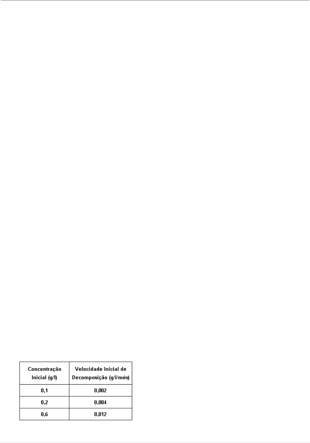 Exercícios de Química Cinética Química TEXTO PARA AS PRÓXIMAS 2 QUESTÕES. (Unirio) "O anúncio da construção de uma usina termelétrica a carvão na ilha da Madeira, município de Itaguaí, Baixada Fluminense, acendeu a luz amarela para o que pode representar um novo problema ambiental para o Estado do Rio de Janeiro. A conseqüência mais grave seria a chuva ácida, além da emissão de gases que atacam a camada de ozônio". (JB, 2001) A qualidade da água da chuva pode variar em função do tipo de carga poluidora e das condições meteorológicas. O dióxido de nitrogênio é um dos principais poluentes da atmosfera. A reação entre o dióxido de nitrogênio e o ozônio, encontrado na troposfera, foi estudada a 231K. A experiência mostrou que a reação é de primeira ordem em relação ao dióxido de nitrogênio e ao ozônio. 2 NO‚(g) + Oƒ(g) ë N‚O…(g) + O‚(g) 1. Escreva a equação de velocidade da reação. 2. Como se altera a velocidade da reação se a concentração de dióxido de nitrogênio for duplicada? TEXTO PARA A PRÓXIMA QUESTÃO (Ufpe) Na(s) questão(ões) a seguir escreva nos parênteses a letra (V) se a afirmativa for verdadeira ou (F) se for falsa. 3. Um determinado defensivo agrícola, quando exposto ao meio ambiente, decompõe-se através de uma reação química. Considerando que a velocidade de decomposição medida em laboratório apresentou os resultados a seguir: Analise as afirmativas a seguir: ( ) A decomposição deste defensivo segue uma cinética de segunda ordem. ( ) O tempo para que a concentração do defensivo se reduza a valores desprezíveis independe da sua concentração inicial. ( ) A constante de decomposição do defensivo é de 0,02mês¢. ( ) O tempo de meia vida do defensivo é de [0,02/ln(2)] mês. ( ) A velocidade inicial de decomposição do defensivo é de 0,006g/l/mês para uma concentração inicial de 0,3g/l. TEXTO PARA A PRÓXIMA QUESTÃO (Unb) Cerca de 90% do ácido nítrico, principal matéria-prima dos adubos à base de nitratos, são obtidos pela reação de oxidação da amônia pelo O‚, em presença de catalisador-platina com 5% a 10% de paládio ou de ródio (ou de ambos) - a uma temperatura de 950°C. A reação é representada pela equação 6NHƒ(g)+9O‚(g)Ï2HNOƒ(g)+4NO(g)+8H‚O(g). Essa reação ocorre nas seguintes etapas: I - 6NHƒ(g)+15/2O‚(g)Ï6NO(g)+9H‚O(g) ÐH=- 1.359kJ II - 3NO(g)+3/2O‚(g)Ï3NO‚(g) ÐH=-170kJ III - 3NO‚(g)+H‚O(g)Ï2HNOƒ(g)+NO(g) ÐH=-135kJ 4. Na(s) questão(ões) a seguir assinale os itens corretos e os itens errados. O conhecimento físico-químico acerca das reações apresentadas permite prever situações em que é possível afetar o rendimento da síntese de ácido nítrico e, conseqüentemente, prever ações para aumentar a sua produção. A respeito desse assunto, julgue os itens seguintes. (1) De acordo com a lei de Hess, aumentando-se o número de etapas da reação para a obtenção do ácido nítrico, aumenta-se a energia liberada no sistema. (2) O aumento da produção de ácido nítrico é proporcional ao consumo de ligas de platina. (3) Considerando que as reações indicadas estão em estado de equilíbrio, é correto prever que o abaixamento de temperatura no sistema reacional aumenta a produção de ácido nítrico. TEXTO PARA A PRÓXIMA QUESTÃO (Ufrj) O Grito de Satanás nas Melancias in "Zé Limeira, Poeta do Absurdo" Orlando Tejo "Possantes candeeiros a carbureto iluminam a sala espaçosa pintada a óleo, refletindo a luz forte nas lentes escuras que protegem os grandes olhos firmes do poeta, sob as grossas pestanas negras." 5. Em duas lanternas idênticas, carregadas com a mesma massa de carbureto, goteja-se água, na mesma vazão, sobre o carbureto. Na lanterna I, o carbureto encontra-se na forma de pedras e, na lanterna II, finamente granulado. a) Indique qual das lanternas apresentará a chama mais intensa. b) Indique qual delas se apagará primeiro. Justifique sua resposta, com base em seus conhecimentos de cinética química. TEXTO PARA A PRÓXIMA QUESTÃO (Cesgranrio) Indústrias farmacêuticas estão investindo no arranjo espacial dos átomos nas moléculas constituintes dos princípios ativos de seus medicamentos, de forma a torná-los mais efetivos no tratamento de moléstias, podendo alterar ou inativar determinada função biológica. Já estão sendo liberados no mercado produtos resultantes dos mais avançados centros de pesquisa. Com isso, os atuais genéricos estão-se tornando meros coadjuvantes de novas tecnologias, como a "estereosseletividade", que já é dominada por alguns laboratórios de pesquisa farmacêutica. Um exemplo é o fármaco conhecido como clorazepate, genérico do racemato, pois a produção de um dos enantiômeros puros desse mesmo fármaco já é resultado da tecnologia de "estereosseletividade". 6. A forma espacial de uma cadeia protéica tem particular importância para a sua função. Cada enzima, por exemplo, tem um centro ativo que lhe permite o "encaixe" com o seu substrato e a promoção da reação. A redução na velocidade da reação enzimática ou sua inibição pode ser causada pela deformação espacial da enzima. Esta deformação pode ser produzida por alterações significativas na: a) concentração do substrato e no pH. b) concentração do substrato e da enzima. c) temperatura e no pH. d) temperatura e na concentração do substrato. e) temperatura e na concentração da enzima. TEXTO PARA A PRÓXIMA QUESTÃO (Ufc) Na(s) questão(ões) a seguir escreva no espaço apropriado a soma dos itens corretos. 7. O óxido nítrico (NO), produzido pelo sistema de exaustão de jatos supersônicos, atua na destruição da camada de ozônio através de um mecanismo de duas etapas, a seguir representadas: (1) NO(g) + Oƒ(g) ë NO‚(g) + O‚(g); ÐH= - 199,8 kJ (2) NO‚(g) + O(g) ë NO(g) + O‚(g); ÐH = -192,1 kJ Assinale as alternativas corretas: 01. A reação total pode ser representada pel