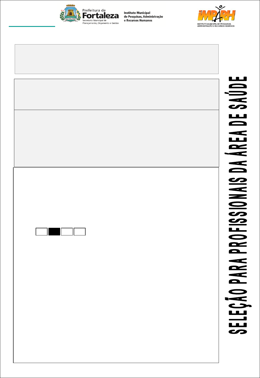DIRETORIA DE CONCURSOS E SELEÇÕES - DCS 1 SELEÇÃO PÚBLICA PARA A CONTRATAÇÃO POR TEMPO DETERMINADO DE PROFISSIONAIS DA ÁREA DE SAÚDE EDITAL Nº 12/2014 PROVA DE TERAPEUTA OCUPACIONAL Os perigos da Paixão7, LEIA COM ATENÇÃO E SIGA RIGOROSAMENTE ESTAS INSTRUÇÕES: 1. Examine se a prova está completa e se há falhas ou imperfeições gráficas que causem dúvidas. Qualquer reclamação somente será aceita até os 15 minutos iniciais. 2. A prova consistirá de 40 questões com quatro alternativas (A, B, C e D), das quais apenas uma é verdadeira. Leia atentamente cada questão e escolha a alternativa, marcando-a no cartão-resposta, cobrindo levemente todo o espaço correspondente à letra a ser assinalada. Verifique se o caderno está incompleto ou se há imperfeições. Nesses casos, informe, imediatamente, ao fiscal. Utilize somente caneta de tinta azul ou preta. Marque seu cartão-resposta, pintando completamente o quadrinho referente a sua resposta, como no modelo abaixo: Ex.: 3. A leitora de marcas não registrará as respostas em que houver falta de nitidez, uso de corretivo, marcação a lápis e/ou marcação de mais de uma letra. 4. O cartão-resposta não pode ser dobrado, amassado, rasurado ou manchado. Exceto sua assinatura, nada deve ser escrito ou registrado fora do espaço destinado às respostas. 5. Verifique se o seu nome e o número de inscrição estão corretos no cartão-resposta. Se houver erro, comunique-o ao fiscal. Não se esqueça de assiná-lo. 6. Durante a prova, é vetado o intercâmbio e o empréstimo de material de qualquer natureza entre os candidatos. A fraude ou tentativa de fraude, a indisciplina e o desrespeito às autoridades encarregadas dos trabalhos são faltas que desclassificarão o candidato. 7. De acordo com o subitem 7.10 do edital 12/2014, durante a realização da prova escrita objetiva, são terminantemente proibidos aos candidatos qualquer espécie de consulta e comunicação entre eles, a utilização ou o porte de lápis, borracha, lapiseira, livros, manuais, impressos ou anotações, máquinas calculadoras, boné, artigos de chapelaria, óculos escuros, relógios, agendas eletrônicas ou similares, telefone celular, bip, e-books, walkman, MP3 player, ipod, iphone, gravador ou qualquer outro receptor ou transmissor de mensagens e dados. Caso haja a desobediência a esta instrução, o candidato será eliminado do certame. 8. Ao terminar, entregue ao fiscal a prova e o cartão-resposta assinado, que é o único documento válido para correção. A B C D PROVA OBJETIVA DATA: 13 DE ABRIL DE 2014 DURAÇÃO: 03 horas INÍCIO: 14H 30min TÉRMINO: 17h 30min _____________________________________________________ NOME EM LETRA DE FORMA ___________________________________________ ASSINATURA DO CANDIDATO www.pciconcursos.com.br DIRETORIA DE CONCURSOS E SELEÇÕES - DCS 2 01. Segundo Bobath, o período de desenvolvimento infantil que ocorre mudança de padrão de flexão-abdução dos membros e que se inicia a rotação do tronco é respectivamente: a) 4-5 meses e 5-6 meses. b) 8-9 meses e 7-8 meses. c) 3-4 meses e 7-8 meses. d) 1-2 meses e 4-5 meses. 02. Com atraso no desenvolvimento, uma criança pode apresentar alterações sensoriais e nas habilidades perceptivas. São distúrbios das percepções visuais básicas: a) Deficiência na percepção de figura fundo. b) Hemiplegia. c) Distúrbio do esquema corporal. d) Sensação. 03. Em relação às etapas do desenvolvimento normal infantil é correto afirmar que: a) a criança com 36 meses imita risco vertical após demonstração, com orientação direcional correta, imita traçado circular. Após demonstração, diferencia claramente um rabisco circular. b) a criança com 4 meses encontra-se ainda simétrica. c) a criança com 9 meses já se coloca bem posicionada na postura ereta, ergue-se para ficar em pé, tenta ainda sem segurança mover-se para o lado. d) com 7 meses em decúbito ventral a criança pode ter sua cabeça levantada e ainda não consegue estender um braço a fim de pegar um objeto, possui atitude assimétrica. 04. A capacidade de realizar um movimento motor intencional (práxis motora) através da integração e da maturação do sistema nervoso central está relacionada ao equilíbrio neuropsicomotor nas diferentes etapas evolutivas e tem como elementos básicos: motricidade fina e global, equilíbrio, esquema corporal, organização espacial, temporal, lateralidade e linguagem. Marque a opção correta a que se refere o texto acima. a) Aprendizagem. b) Aptidão motora. c) Aptidão física. d) Apraxia. 05. Com relação ao desenvolvimento neuropsicomotor (DNPM) é correto afirmar. a) Processo pelo qual se avalia o fator determinante de uma patologia, bem como seus sinais e sintomas. b) Ocorrência de mais de uma patologia. c) Estudo dos fatores que determinam uma patologia. d) Depende da integridade do SNC, maturação que dependerá de nutrição adequada, estimulação psicomotora e afetiva. 06. A respeito da intervenção do terapeuta ocupacional na reabilitação traumato-ortopédica, assinale a opção correta. a) As musculaturas deltoides e bíceps braquial que correspondem, respectivamente, as funções de abdução do ombro e extensão do punho, devem ser fortalecidas em pessoas que sofreram lesão medular a nível 5. b) O papel do terapeuta ocupacional limita-se ao treino de atividades de vida diária no estágio agudo da recuperação de fraturas. c) A dor lombar é uma afecção crônica de pouca incidência e muito raramente resulta em incapacitação. d) Para diminuição da necessidade de tratamento após a mobilização, indica-se o uso específico e precoce do membro lesado por fratura durante a consolidação. www.pciconcursos.com.br DIRETORIA DE CONCURSOS E SELEÇÕES - DCS 3 07. As atividades de vida diária (AVD`S) são aquelas relacionadas aos cuidados pessoais e à mobilidade. Assinale a alternativa que contêm exemplos de cuidados pessoais. a)