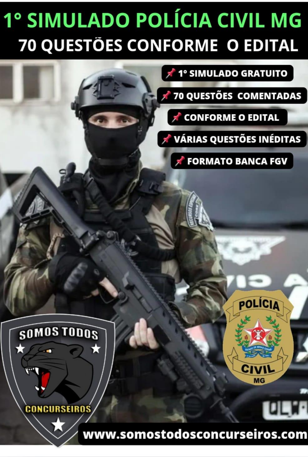 6 SIMULADOS, CONFORME O EDITAL, COM 70 QUESTÕES CADA SIMULADO. SÃO 420 QUESTÕES COMENTADAS CONFORME O EDITAL E COM VÁRIAS QUESTÕES INÉDITAS SÃO 6 SIMULADOS COMENTADOS E GABARITADOS CONFORME O EDITAL E A BANCA FGV. VÁRIAS QUESTÕES INÉDITAS FOCADAS NO EDITAL E NA BANCA FGV COM O SEGUINTE CRONOGRAMA: 1° SIMULADO GRATUITO LIBERADO 2° SIMULADO 20 SETEMBRO DE 2024 3° SIMULADO LIBERADO 4 DE OUTUBRO DE 2024 4° SIMULADO LIBERADO 18 OUTUBRO DE 2024 5° SIMULADO LIBERADO 1 NOVEMBRO DE 2024 6° SIMULADO LIBERADO 15 NOVEMBRO DE 2024 6 SIMULADOS, CONFORME O EDITAL, COM 70 QUESTÕES CADA SIMULADO. SÃO 420 QUESTÕES COMENTADAS CONFORME O EDITAL E COM VÁRIAS QUESTÕES INÉDITAS SÃO 6 SIMULADOS COMENTADOS E GABARITADOS CONFORME O EDITAL E A BANCA FGV. VÁRIAS QUESTÕES INÉDITAS FOCADAS NO EDITAL E NA BANCA FGV COM O SEGUINTE CRONOGRAMA: 1° SIMULADO GRATUITO LIBERADO 2° SIMULADO 20 SETEMBRO DE 2024 3° SIMULADO LIBERADO 4 DE OUTUBRO DE 2024 4° SIMULADO LIBERADO 18 OUTUBRO DE 2024 5° SIMULADO LIBERADO 1 NOVEMBRO DE 2024 6° SIMULADO LIBERADO 15 NOVEMBRO DE 2024 6 SIMULADOS, CONFORME O EDITAL, COM 70 QUESTÕES CADA SIMULADO. SÃO 420 QUESTÕES COMENTADAS CONFORME O EDITAL E COM VÁRIAS QUESTÕES INÉDITAS SÃO 6 SIMULADOS COMENTADOS E GABARITADOS CONFORME O EDITAL E A BANCA FGV. VÁRIAS QUESTÕES INÉDITAS FOCADAS NO EDITAL E NA BANCA FGV COM O SEGUINTE CRONOGRAMA: 1° SIMULADO GRATUITO LIBERADO 2° SIMULADO 20 SETEMBRO DE 2024 3° SIMULADO LIBERADO 4 DE OUTUBRO DE 2024 4° SIMULADO LIBERADO 18 OUTUBRO DE 2024 5° SIMULADO LIBERADO 1 NOVEMBRO DE 2024 6° SIMULADO LIBERADO 15 NOVEMBRO DE 2024 1º SIMULADO GRATUITO POLÍCIA CIVIL DE MINAS GERAIS #SOMOSTODOSCONCURSEIROS GABARITO PARA PREENCHER Nome: 1º SIMULADO PARA POLÍCIA CIVIL DE MINAS GERAIS 1 | P á g i n a #SOMOSTODOSCONCURSEIROS CONHECIMENTOS BÁSICOS LÍNGUA PORTUGUESA Questão 1 Observe o pequeno fragmento descritivo a seguir. “A pequena casa branca ficava no meio da rua, com um regato na frente. As janelas e as portas eram pintadas de azul colonial. Um estreito caminho de pedras levava até a porta da frente, que, aberta, permitia o acesso a uma simpática sala de visitas, com dois sofás, uma mesa de centro e uma grande tela de televisão na parede...” Sobre esse texto é INADEQUADA a seguinte afirmativa: (A) uma das estratégias usadas nessa descrição é o observador partir de fora para dentro da casa descrita; (B) uma segunda estratégia empregada nesse mesmo texto é o movimento partir do todo para as partes; (C) uma terceira estratégia, que acumula com as anteriores, é a de descrever a casa de longe para perto; (D) a descrição é predominantemente objetiva, com características da casa, mas apresenta também poucas interferências do observador, por meio de qualidades, como “simpática”; (E) a descrição realizada é do tipo informativo, passando ao leitor a impressão de realidade. Questão 2 A pontuação é um elemento importante na clareza da frase. A opção abaixo em que o emprego da vírgula é devido à elipse do verbo, é: (A) Quando se morre, é por muito tempo; (B) Eu percebo, sem nenhum temor, a desunião das moléculas de minha existência; (C) Nada resume um homem, nem sequer suas ideias; (D) Ele tinha a mesma doença que eu, só que a minha é pior; (E) A rosa vive uma hora; o cipreste, cem anos. Questão 3 A frase abaixo que exemplifica a voz passiva, é: (A) Basta ver um promontório, uma montanha, um mar e um rio, para ter visto todos; (B) O cão foi criado especialmente para as crianças. É o deus da brincadeira; (C) Meus cachorros são mais saudáveis que muita gente que frequenta a praia; (D) Procura na natureza e, se souberes encontrar, acharás o que procurares; (E) Pode o cão ladrar contra todos, mas não pode morder senão os que dele se aproximam. Questão 4 A coerência é uma das marcas da textualidade. Entre as frases abaixo, aquela que é logicamente coerente, é: (A) Mais valem dois pássaros voando, que um na mão; (B) Se você não for ao enterro dos seus amigos, eles não virão ao seu; (C) Pelo amor de Deus, me inclua fora dessa confusão! (D) Quando, na vida, você parar diante de um cruzamento, não titubeie, tome-o! (E) Desde quando você tem essa marca de nascença? Questão 5 A frase em que a forma do pronome demonstrativo sublinhada está bem empregada, é: (A) Desde quando você tem esta marca de nascença, aí no ombro? (B) A verdade sobre um homem reside em primeiro lugar nisso que ele esconde; (C) As almas têm ilusões assim como as aves têm asas. São essas que lhe permitem voar; (D) “Os sábios dizem que a vossa luz se apagará um dia”, disseram os pirilampos às estrelas. Estas, porém, não disseram nada; (E) Prefiro isso: o paraíso pelo clima e o inferno pelas companhias. 1º SIMULADO PARA POLÍCIA CIVIL DE MINAS GERAIS 2 | P á g i n a #SOMOSTODOSCONCURSEIROS Questão 6 A frase em que a forma da palavra “anexo” está em desacordo com as regras de concordância, é: (A) Em anexo a este documento estão as fotos pedidas; (B) Anexo vão os recibos das compras anteriores; (C) As declarações anexas estão sem reconhecimento legal; (D) As fotos e os recibos da compra estão anexos; (E) Anexas ao pacote das camisas estão as obras pedidas. Questão 7 A opção em que as duas palavras nela apresentadas recebem acento gráfico corretamente, é: (A) dócil / maquinária; (B) autóctone / rúbrica; (C) hífen / táctil; (D) barbária / têxtil; (E) éter / cíclope. Questão 8 Em todas as frases abaixo há um par de palavras sublinhado; a frase em que a inversão de posição desses termos provoca uma mudança de significado, é: (A) O trabalho do lavrador é o trabalho natural do homem, o único que acalma as paixões e vigoriza o corpo. (B) O inferno está cheio de boas intenções; (C) Inútil interrogar o céu: ele tem respostas rápidas; (D) Deus pendura os maiores pesos nas asas menores; (E) Os deuses ocupam-se das coisas grandes. Questão 9 A fras