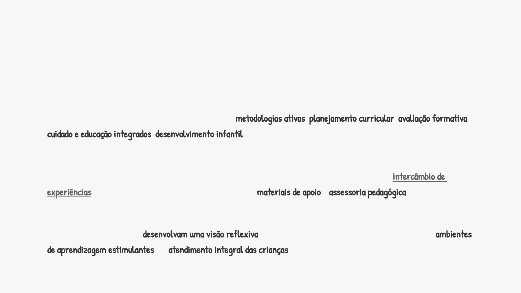 O QUE E Formação Continuada de Professores? A formação continuada de professores é fundamental para garantir a qualidade da Educação Infantil em creches e EMEIs. Essa formação deve ser contínua, integradora e contextualizada, visando o desenvolvimento profissional e pessoal dos educadores. Ela deve abordar temas relevantes, como metodologias ativas, planejamento curricular, avaliação formativa, cuidado e educação integrados, desenvolvimento infantil, entre outros. As formações devem ser oferecidas pela rede municipal, com carga horária adequada e em horário de trabalho dos professores. Elas podem incluir palestras, oficinas, grupos de estudos, reflexões sobre a prática e intercâmbio de experiências. Além disso, os educadores devem ter acesso a materiais de apoio e assessoria pedagógica contínua. Essa formação continuada permite que os professores se mantenham atualizados, compartilhem conhecimentos, aprimorem suas práticas e desenvolvam uma visão reflexiva sobre seu trabalho. Isso é essencial para garantir ambientes de aprendizagem estimulantes e o atendimento integral das crianças na Educação Infantil. https://www.educacao.sp.gov.br/formacao-continuada https://www.educacao.sp.gov.br/formacao-continuada O QUE E Avaliação Formativa? A avaliação formativa desempenha um papel fundamental na Educação Infantil, pois permite acompanhar de forma contínua o desenvolvimento e a aprendizagem das crianças. Diferente da avaliação sumativa, que visa apenas classificar o desempenho ao final de um período, a avaliação formativa tem como objetivo fornecer informações valiosas para direcionar o planejamento pedagógico e ajustar as estratégias de ensino de acordo com as necessidades individuais e coletivas dos alunos. Nessa perspectiva, a avaliação formativa na Educação Infantil se caracteriza por ser um processo dinâmico, flexível e inclusivo, valorizando os avanços e potencialidades de cada criança. Ela se baseia na observação atenta do educador, no registro sistemático das experiências e produções infantis, e no diálogo constante com as famílias, a fim de compreender melhor o processo de desenvolvimento e aprendizagem de cada aluno. Essa abordagem avaliativa permite identificar desafios e dificuldades, para então propor intervenções pedagógicas adequadas que favoreçam a superação desses obstáculos. Além disso, a avaliação formativa fortalece a autonomia e o protagonismo das crianças, incentivando-as a refletir sobre sua própria aprendizagem e a se envolverem ativamente no processo.
