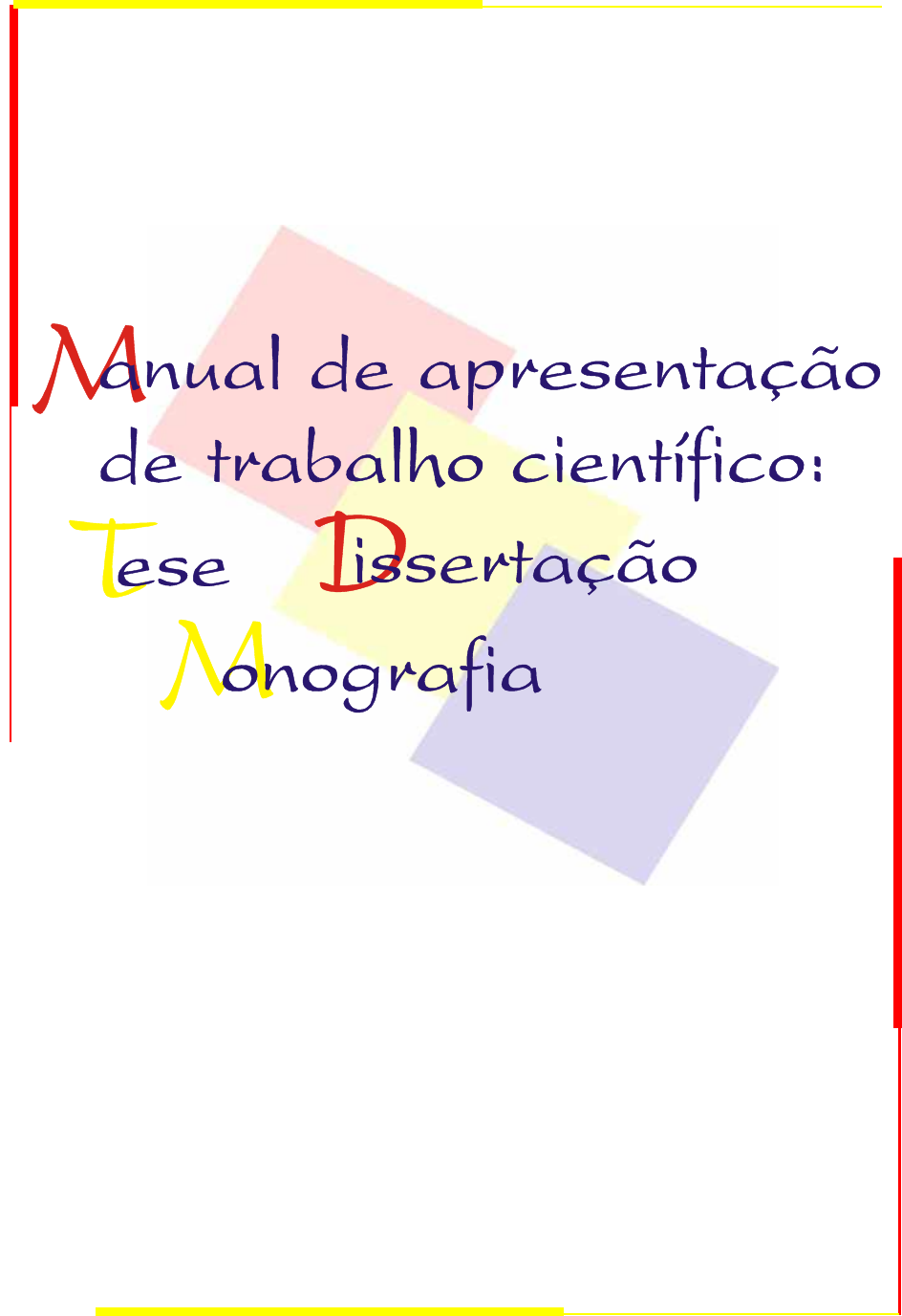 Enilze de Souza Nogueira Volpato Rosemary Cristina da Silva Luciana Pizzani Divisão Técnica de Biblioteca e Documentação – Unesp – Campus de Botucatu 2020 Ficha catalográfica elaborada pela Seção Técnica de Aquisição e Tratamento da Informação DIVISÃO DE BIBLIOTECA E DOCUMENTAÇÃO – CAMPUS DE BOTUCATU – UNESP Bibliotecária responsável: Rosângela Aparecida Lobo Volpato, Enilze de Souza Nogueira. Manual de apresentação de trabalho científico: tese, dissertação e monografia / Enilze de Souza Nogueira Volpato, Rosemary Cristina da Silva, Luciana Pizzani. ed. rev. - Botucatu: Divisão Técnica de Biblioteca e Documentação, 2020. 35p. 1. Metodologia científica. I. Silva, Rosemary Cristina II. Pizzani, Luciana CDD 001.42 Palavras-chave: Dissertações acadêmicas; Redação; Normas 3 1 Definições 1.1 Teses, dissertações e trabalhos acadêmicos Estão reunidos aqui, os principais tópicos sobre a apresentação de trabalhos acadêmicos. As normas apresentadas são baseadas na ABNT, mas estão adequadas ao estilo usado nas Unidades do Campus de Botucatu em Rubião Júnior. Definições (ABNT)* Dissertação Documento que apresenta o resultado de um trabalho experimental ou exposição de um estudo científico retrospectivo, de tema único e bem delimitado em sua extensão, com o objetivo de reunir, analisar e interpretar informações. Deve evidenciar o conhecimento de literatura existente sobre o assunto e a capacidade de sistematização do candidato. É feito sob a coordenação de um orientador (doutor), visando a obtenção do título de mestre. Tese Documento que apresenta o resultado de um trabalho experimental ou exposição de um estudo científico de tema único e bem delimitado. Deve ser elaborado com base em investigação original, constituindo-se em real contribuição para a especialidade em questão. É feito sob a coordenação de um orientador (doutor) e visa a obtenção do título de doutor, ou similar. Trabalhos acadêmicos Trabalho de conclusão de curso de graduação, trabalho de graduação interdisciplinar, trabalho de conclusão de curso de especialização e/ou aperfeiçoamento documento que apresenta o resultado de estudo, devendo expressar conhecimento do assunto escolhido, que deve ser obrigatoriamente emanado da disciplina, módulo, estudo independente, curso, programa, e outros ministrados. Deve ser feito sob a coordenação de um orientador. *ASSOCIAÇÃO BRASILEIRA DE NORMAS TÉCNICAS. NBR 14724: informação e documentação: trabalhos acadêmicos: apresentação. Rio de Janeiro, 2011. 4 2 Estrutura 2.1 Teses, dissertações e trabalhos acadêmicos Estrutura Elemento Parte externa Pré-textuais Capa (obrigatório) Lombada (impressão opcional) Folha de rosto (obrigatório) Errata (opcional) Folha de aprovação (obrigatório) Dedicatória (opcional) Agradecimentos (opcional) Epígrafe (opcional) Resumo em português (obrigatório) Resumo em inglês (obrigatório) Lista de ilustrações (opcional) Lista de tabelas (opcional) Lista de abreviaturas e siglas (opcional) Lista de símbolos (opcional) Sumário (obrigatório) Textuais Introdução Revisão da literatura Objetivo Material e método Resultado Discussão Conclusão Pós-textuais Referências (obrigatório) Glossário (opcional) Apêndice (s) (opcional) Anexo (s) (opcional) Índice (opcional) Conforme A NBR 14724:2011 a nomenclatura dos elementos textuais fica a critério do autor. 5 2.2 Capa – obrigatório Deve conter as informações na seguinte ordem: a) Instituição em que será apresentada – opcional; b) Nome completo do autor em ordem direta; c) Título e subtítulo; d) Número do volume (quando houver mais de um volume, cada um deve ter o número do respectivo volume em cada capa); e) Cidade da instituição onde será apresentada; f) Ano da entrega. Botucatu 1999 6 2.3 Lombada – impressão opcional Parte da capa que reúne as margens internas das folhas. a) Nome do autor*; b) Título do trabalho*; c) Número do volume, se houver. A V A L IA Ç Ã O D A IN T E G R A Ç Ã O D E E S F E R A S D E H ID R O X IA P A T IA S IN T É T IC A E D E P O L IE T IL E N O P O R O S O E M C A V ID A D E S E V IS C E R A D A S D E C O E L H O S S ILV A N A A R T IO L I S C H E L L IN I 1999 * impresso longitudinalmente e legível do alto para o pé da lombada. Botucatu 1999 7 2.4 Folha de rosto – obrigatório 2.4.1 Frente da folha de rosto (anverso) Deve conter as informações na seguinte ordem: a) Nome do autor; b) Título e subtítulo; c) Número do volume (quando houver mais de um volume deve ser indicado, em cada folha de rosto o respectivo número); d) Tipo do trabalho (ex.: tese, dissertação, trabalho de conclusão de curso e outros), objetivo (ex.: grau pretendido, aprovação em disciplina e outros); instituição a que é submetido; curso, área de concentração. e) Nome do orientador e coorientador (se houver); f) Cidade da instituição onde será apresentado; g) Ano da entrega. Emilio Carlos Curcelli Efeito da heparina sódica e da enoxaparina na consolidação de fratura de tíbia do rato: avaliação clínica, anatomopatológica e biomecânica Dissertação apresentada à Faculdade de Medicina, Universidade Estadual Paulista “ Julio de Mesquita Filho ”, Campus de Botucatu, para obtenção do título de Mestre em Cirurgia Orientador: Prof. Dr. William Saad Hossne Botucatu 1999 8 2.4.2 Verso da folha de rosto Deve conter a ficha catalográfica que deve ser feita por uma bibliotecária. As medidas da ficha são: 12,5 cm de comprimento X 7,5 cm de largura. A Divisão Técnica de Biblioteca e Documentação elabora a ficha catalográfica de publicações (livros, eventos, periódicos) e trabalhos acadêmicos (teses, dissertações, TCCs e TAs) desenvolvidos nas Unidades do Campus de Botucatu. A elaboração é feita pelo profissional bibliotecário. Cabe a esse profissional a inclusão dos descritores, seguindo o padrão estabelecido pelo vocabulário