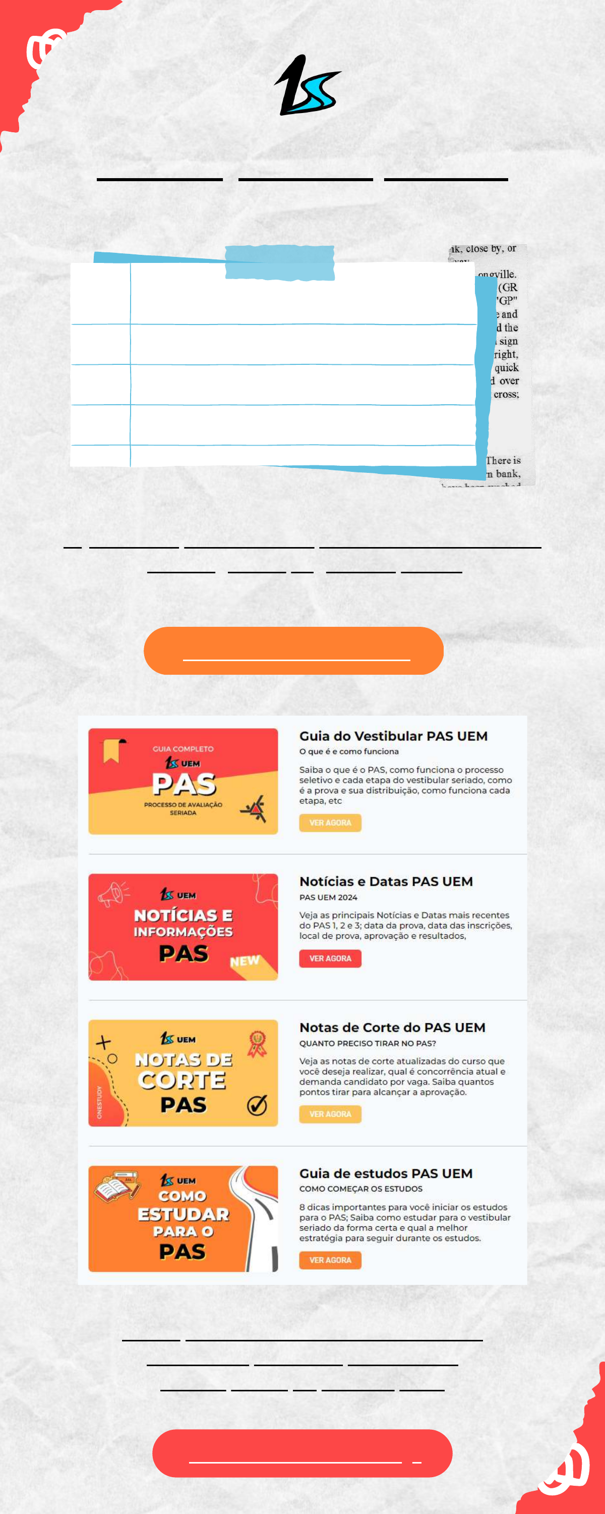 PAS UEM PROVAS ANTERIORES Conhecer a Onestudy! BAIXAR MAIS PROVAS onestudy.com.br/pas-uem Veja todas as provas do PAS 1, PAS 2 e PAS 3 da UEM em pdf com gabarito, organizado por ano Conheça o nosso site voltado ao vestibular do PAS EUM; com dicas, materiais de estudos, curso preparatório, etc... https://onestudy.com.br/pas-uem/ https://onestudy.com.br/pas-uem/ https://onestudy.com.br/pas-uem/ https://onestudy.com.br/pas-uem/ https://onestudy.com.br/pas-uem/ https://onestudy.com.br/pas-uem/ CADERNO DE QUESTÕES – ETAPA 1 N.o DE ORDEM: N.o DE INSCRIÇÃO: NOME DO CANDIDATO: INSTRUÇÕES PARA A REALIZAÇÃO DA PROVA 1. Confira os campos N.º DE ORDEM, N.º DE INSCRIÇÃO e NOME DO CANDIDATO, que constam na etiqueta fixada em sua carteira. 2. É proibido folhear o Caderno de Prova antes do sinal, às 14h. 3. Após o sinal, verifique se este caderno contém os textos de apoio para a elaboração da redação e 40 questões objetivas. Verifique também se há algum defeito de formatação/encadernação. Qualquer problema avise imediatamente o fiscal. 4. Redija a versão definitiva da Redação na Folha da Versão Definitiva destinada a esse fim. 5. Durante a realização da prova é proibido o uso de dicionário, de calculadora eletrônica, bem como o uso de boné, de óculos com lentes escurecidas, de gorro, de turbante ou similares, de relógio, de celulares, de bips, de aparelhos de surdez, de MP3 player ou de aparelhos similares. É proibida ainda a consulta a qualquer material adicional. 6. A comunicação ou o trânsito de qualquer material entre os candidatos é proibido. A comunicação, se necessária, somente poderá ser estabelecida por intermédio dos fiscais. 7. No tempo destinado a esta prova (cinco horas) está incluso o de preenchimento da Folha de Respostas e da Folha da Versão Definitiva da Redação. 8. O tempo mínimo de permanência na sala é de três horas após o início da resolução da prova, ou seja, você só poderá deixar a sala de prova depois das 17h. 9. Se desejar ter acesso ao seu desempenho, transcreva as respostas deste caderno no “Rascunho para Anotação das Respostas” (nesta folha, abaixo) e destaque-o na linha pontilhada. 10. Preenchimento da Folha de Respostas: no caso de questão com apenas uma alternativa correta, lance na Folha de Respostas o número correspondente a essa alternativa correta. No caso de questão com mais de uma alternativa correta, a resposta a ser lançada corresponde à soma dessas alternativas corretas. No caso de todas as alternativas serem incorretas, a resposta por definição será 00 (zero zero). Em qualquer caso o candidato deve preencher sempre dois alvéolos: um na coluna das dezenas e um na coluna das unidades, conforme o exemplo (do segundo caso) ao lado: questão 57, resposta 07, que corresponde à soma das alternativas corretas 01, 02 e 04. 11. ATENÇÃO: não rabisque nem faça anotações sobre os códigos de barras da Folha de Respostas e da Folha da Versão Definitiva da Redação. Mantenha-os “limpos” para leitura óptica eficiente e segura. 12. Ao término da prova, levante o braço e aguarde atendimento. Entregue ao fiscal este caderno, a Folha de Respostas e a Folha da Versão Definitiva da Redação. 13. A desobediência a qualquer uma das determinações dos fiscais poderá implicar a anulação da sua prova. 14. São de responsabilidade única do candidato a leitura e a conferência de todas as informações contidas neste Caderno de Prova, na Folha de Respostas e na Folha da Versão Definitiva da Redação. Corte na linha pontilhada. ....................................................................................................................... RASCUNHO PARA ANOTAÇÃO DAS RESPOSTAS - PAS-UEM/2023 - ETAPA 1 N.o DE ORDEM: NOME: 01 02 03 04 05 06 07 08 09 10 11 12 13 14 15 16 17 18 19 20 21 22 23 24 25 26 27 28 29 30 31 32 33 34 35 36 37 38 39 40 UEM – Comissão Central do Vestibular Unificado 2 UEM/CVU – PAS/2023 Etapa 1 Caderno de Questões FÍSICA – Formulário e Constantes Fórmulas 𝑥𝑥 = 𝑥𝑥0 + 𝑣𝑣0𝑡𝑡 + 1 2 𝑎𝑎𝑡𝑡2 𝑣𝑣𝑚𝑚 = 𝑥𝑥𝑓𝑓 − 𝑥𝑥𝑖𝑖 𝑡𝑡𝑓𝑓 − 𝑡𝑡𝑖𝑖 𝑎𝑎𝑚𝑚 = 𝑣𝑣𝑓𝑓 − 𝑣𝑣𝑖𝑖 𝑡𝑡𝑓𝑓 − 𝑡𝑡𝑖𝑖 𝑦𝑦𝑚𝑚á𝑥𝑥 = 𝑣𝑣02. sen2𝜃𝜃 2𝑔𝑔 𝑥𝑥𝑚𝑚á𝑥𝑥 = 𝑣𝑣02. sen2𝜃𝜃 𝑔𝑔 𝑇𝑇 = 1 𝑓𝑓 𝑎𝑎𝑐𝑐𝑐𝑐 = 𝑣𝑣2 𝑅𝑅 𝑓𝑓𝑎𝑎 = 𝜇𝜇𝜇𝜇 𝜔𝜔 = 2𝜋𝜋 𝑇𝑇 𝐸𝐸𝑚𝑚𝑚𝑚𝑐𝑐 = 𝐸𝐸𝑐𝑐 + 𝐸𝐸𝑐𝑐 𝐸𝐸𝑐𝑐 = 1 2 𝑚𝑚𝑣𝑣2 𝐸𝐸𝑐𝑐𝑔𝑔𝑔𝑔𝑔𝑔𝑔𝑔 = 𝑚𝑚𝑔𝑔ℎ 𝐸𝐸𝑐𝑐𝑒𝑒𝑒𝑒á = 1 2 𝑘𝑘𝑥𝑥2 𝜌𝜌 = 𝑚𝑚 𝑉𝑉 Constantes Físicas 𝐺𝐺 = 6,7 × 10−11N.m2/kg2 𝑔𝑔 = 10m/s2 MATEMÁTICA – Formulário Progressões e álgebra Progressão Aritmética (PA): n 1a = a (n-1)r+ . n 1 n nS = (a +a ) 2 . Progressão Geométrica (PG): n-1 n 1a = a q⋅ . n n 1 q -1S = a . q-1 ⋅ Relações trigonométricas em um triângulo retângulo catetoopostoasen hipotenusa θθ = catetoadjacenteacos hipotenusa θθ = catetoopostoatg catetoadjacentea θθ θ = Probabilidade e Estatística Variância: 𝑉𝑉 = ∑ (𝑥𝑥𝑖𝑖 − 𝑀𝑀𝑀𝑀)2𝑛𝑛 𝑖𝑖=1 𝑛𝑛 Desvio Padrão: 𝐷𝐷𝐷𝐷 = �∑ (𝑥𝑥𝑖𝑖 − 𝑀𝑀𝑀𝑀)2𝑛𝑛 𝑖𝑖=1 𝑛𝑛 *MA é a média aritmética. UEM/CVU – PAS/2023 Etapa 1 Caderno de Questões 3 REDAÇÃO INSTRUÇÕES 1. Verifique se a Folha da VERSÃO DEFINITIVA da Redação apresenta problemas de impressão gráfica. Caso isso ocorra, informe ao fiscal da sala. 2. O gênero textual solicitado traz (no comando) orientações específicas, que devem ser observadas para a elaboração de sua redação. 3. Transcreva a versão final de sua Redação, com letra legível e sem