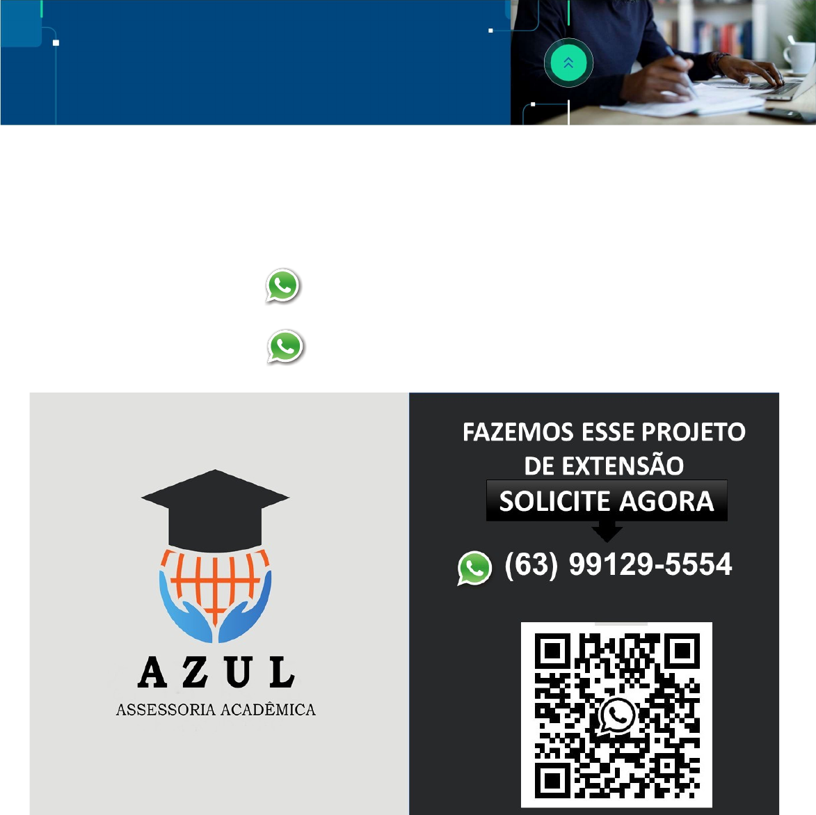 Proposta de Atividade FAZEMOS ESSE PROJETO SOLICITE AGORA (63) 99129-5554 (63) 99129-5554 Atividade de Extensão 2024.2 Cursos Contemplados A proposta se destina a todos os cursos de Licenciaturas, Bacharelados e Tecnológicos. Tema Agir Local e pensar global: atuação multidisciplinar. Grande Área A ação de extensão segue como base os Objetivos de Desenvolvimento Sustentável (ODS), nº 3 e 11, que correspondem a área de Saúde e Bem-estar e Cidades e Comunidades Sustentáveis. Áreas temáticas Ambiente Seguro para Comunidades Idosas; Educação Alimentar e Reaproveitamento de Alimentos; Educação no uso Correto e no Descarte de Medicamentos e Insumos hospitalares; Educação no Descarte de Exames de Imagem; Cidade Segura e Autossuficiente (cidade construída para diversidade, inclusão e igualdade) para todas as faixas etárias; Controle das Arboviroses (Dengue, Chikungunha e Zika, transmitidas pelo mosquito, Aedes aegypti); Políticas Públicas vigentes para melhoria da qualidade de vida da pessoa humana e animal; Identificação de estratégias de economia para comunidades sustentáveis. Como escolher a atividade? Você deverá escolher a temática para a realização da atividade de extensão de acordo com a área do seu curso. Por exemplo, se você é estudante do curso de Biomedicina ou Farmácia, poderá realizar uma ação de extensão na temática de Educação no uso Correto e no Descarte de Medicamentos e Insumos hospitalares. Mas se você é do curso de Engenharia, poderá realizar uma ação na temática Cidade Segura e Autossuficiente (cidade construída para diversidade, inclusão e igualdade) para todas as faixas etárias. O Quadro a seguir apresenta as áreas temáticas, os objetivos de cada uma delas, os exemplos de atividades de extensão que podem ser realizadas, assim como a área do curso que é aderente a cada temática. IMPORTANTE: apresentamos exemplos de atividades que podem ser realizadas, mas orientamos que não fiquem limitados(as) aos exemplos e criem suas propostas com base em cada referência. Proposta de Atividade Atividades de Extensão Temática (cada aluno deverá desenvolver apenas uma das temáticas da área do seu curso) Ambiente Seguro para Idosos (ODS 11) Áreas contempladas: Ciências Exatas, Ciências da Saúde, Ciências Humanas e Licenciaturas, Ciências Sociais Aplicadas e Engenharias e Exatas. Objetivos: criar espaços físicos e sociais que atendam às necessidades especificas da população idosa e que os permitam a ter uma participação ativa na sociedade. Essa ação implica desde infraestrutura acessível (como calçadas sem obstáculos, transportes públicos adaptados) até políticas e programas que protejam os idosos contra abusos, negligências e violência. Exemplos: Criar ações de segurança, para proteger os idosos contra abusos físicos, emocionais e financeiros. Nesse tópico, podem ser criadas estratégias para conscientização da população idosa, a partir de panfletos informativos, de palestras, criação de páginas em redes sociais que tenham esse objetivo, entre outros. Criar ações de inclusão social, para evitar o isolamento e grantir a oportunidade de interação e engajamento em sociedade. Podem ser realizadas atividades de leitura, de dança, de oficinas artisticas, dentre outras, que tenham como foco a inclusão social da população idosa. Criar ações que garantam o acesso aos cuidados de saúde adequados e programas de bem estar. Uma opção dentro dessa temática, consiste em propor uma atividade, que pode ser por meio de palestra, panfleto informativo ou outro meio de comunicação, para conscientizar a população idosa sobre seus direitos no cuidado à saúde e sua importância, sobre a importância de um estilo de vida ativo e saudável para o envelhecimento, dentre outros. Proposta de Atividade Educação Alimentar e Reaproveitamento de Alimentos (ODS 3) Áreas contempladas: Ciências Agrárias, Ciências da Saúde, Ciências Biológicas, Ciências Humanas, Licenciaturas e Ciências Sociais Aplicadas. Objetivos: essa temática está intimamente ligada à promoção de hábitos alimentares saudáveis e à redução do desperdício de alimentos, contribuindo assim para melhorar a saúde da população. Exemplos: Criar ações de conscientização da população sobre a importância da educação alimentar, por meio de informativos. Realizar palestras para informar a população sobre a importância da alimentação saudável na prevenção de doenças crônicas. Realizar oficinas para ensinar práticas de reaproveitamento de alimentos. Educação no Uso Correto e no Descarte de Medicamentos e Insumos Hospitalares (ODS 3) Áreas contempladas: Ciências da Saúde, Ciências Humanas e Licenciaturas, Ciências Biológicas e Ciências Sociais Aplicadas. Objetivos: promover práticas seguras e eficazes de uso de medicamentos, evitando por exemplo erros de administração que possam prejudicar a saúde dos pacientes. Exemplos: Criar informativos para serem disponibilizados em farmácias, contendo informações e orientações sobre a utilização correta de medicamentos e os possíveis danos do uso incorreto. Realizar campanhas de descarte de medicamentos e insumos hospitalares, e dar o destino adequado a este material. Realizar palestras com profissionais de saúde para conscientizar sobre o descarte correto dos insumos hospitalares. Proposta de Atividade Educação no Descarte de Exames de Imagens (ODS 3) Áreas contempladas: Ciências da Saúde, Ciências Humanas e Licenciaturas, Ciências Biológicas, Ciências Agrárias, Ciências Sociais Aplicadas. Objetivos: direcionar a gestão correta dos resíduos de exames de imagem, a fim de prevenir danos à saúde pública e ao meio ambiente. Muitos exames contém substâncias químicas tóxicas e perigosas, tais como a prata, que podem contaminar o solo e a água se não forem descartados de forma adequada. Exemplos: Criar estratégias para a conscien