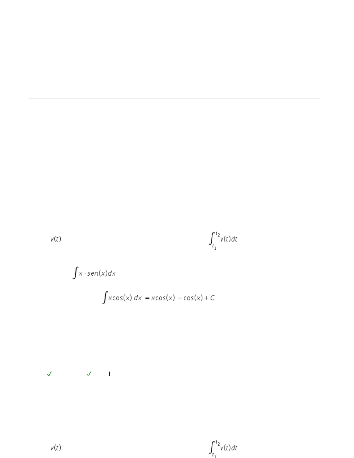 Impresso por Jacquelinne Dias, E-mail luabela16@gmail.com para uso pessoal e privado. Este material pode ser protegido por direitos autorais e não pode ser reproduzido ou repassado para terceiros. 19/02/2023, 18:44:29 Estudante Gabarito Descrição Aproximadamente2 Newton . Justificativa Solução: 10Ver Questão As aplicações dos conteúdos do Cálculo podem ser úteis, também, como formas de motivação do e Pela experiência de Silva e Borges Neto (1994), quando os alunos conseguem relacionar os conteú situações reais que possam ser vivenciadas em sua vida profissional, o nível de interesse proporcionando melhor apreensão dos conhecimentos trabalhados e, com isso, as habilida desenvolvidas mais rapidamente. Fonte:Disponível em:Acesso.23.Set.2018. Neste contexto, julgue as afirmações que se seguem. I - Se representa a velocidade de uma partícula então representa o espaço percor partícula. II - A integral pode ser resolvida por partes. III - É valida a igualdade . É correto apenas o que se afirma em: Estudante Gabarito Descrição I. II. III. I e II. II e III. Justificativa Resposta: Apenas as afirmações I e II estão corretas. I - Se representa a velocidade de uma partícula então representa o espaço percor Impresso por Jacquelinne Dias, E-mail luabela16@gmail.com para uso pessoal e privado. Este material pode ser protegido por direitos autorais e não pode ser reproduzido ou repassado para terceiros. 19/02/2023, 18:44:29 III - É valida a igualdade . (Incorreto, )