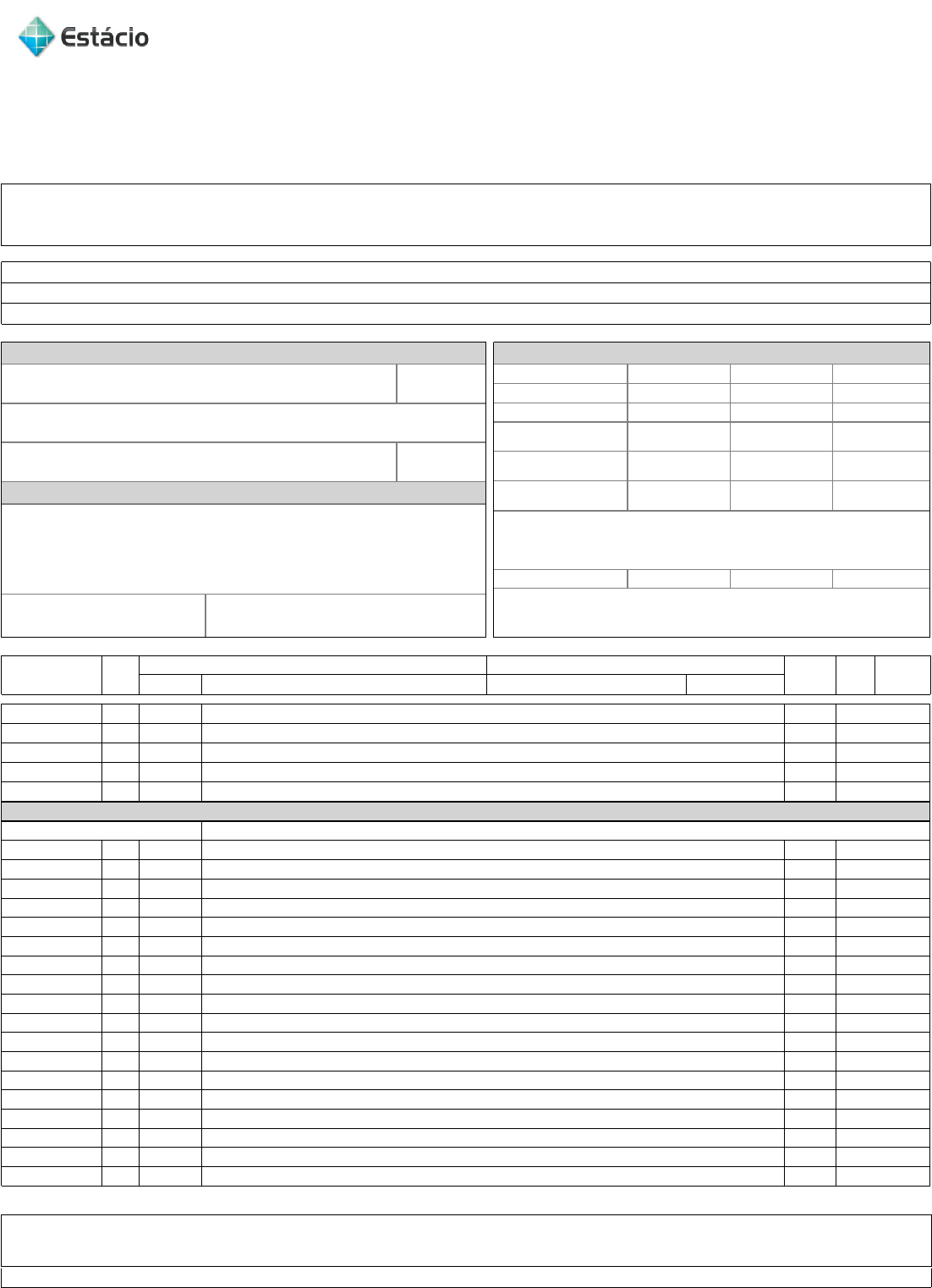 Histórico Escolar CENTRO UNIVERSITÁRIO ESTÁCIO DE RIBEIRÃO PRETO Recredenciamento: Portaria n°1843, de 14/09/2023 publicada no DOU n°178, Seção 1, Pág. 728, de 18/09/2023 Folha: 1/3 (e-MEC 1270) Histórico Escolar de Simples Conferência: Documento emitido apenas para fins de consulta, não representando a versão oficial do Histórico Escolar. O conteúdo deste documento não substitui o emitido na versão certificada. Nome do Aluno: MARIA EDUARDA CARDOSO VAZ Matrícula: 2024.09.24333-6 Nacionalidade: BRASILEIRO(A) Naturalidade: UBERABA-MG Data de Nascimento: 23/03/2005 CPF: 130313086-62 Identidade: 22806252 Órgão/UF Expedidor: SSP/RJ Ensino Médio: EE MINAS GERAIS - UBERABA UF: MG Ano de Conclusão: 2022 Forma de Ingresso: VESTIBULAR Total de Pontos: 0 Mês/Ano de ingresso: 07/2024 Período Acadêmico TP Disciplinas Docente Carga Código Nome Nome Titulação Horária Grau Situação Final 2024.3 M DGT0942 QUÍMICA BIOLÓGICA 80 CURSANDO 2024.3 M DGT1139 INTROD. À FARMÁCIA, DEONTO. E LEGIS. FARMACÊUTICA 80 CURSANDO 2024.3 M DGT2155 LÍNGUA PORTUGUESA 40 CURSANDO 2024.3 M DGT2649 ANATOMIA DOS SISTEMAS ORGÂNICOS 80 CURSANDO 2024.3 M DGT2652 BASES DE BIOLOGIA CELULAR E GENÉTICA 80 CURSANDO Falta Cursar M DGT0174 FUNDAMENTOS DE BIOQUÍMICA 80 M DGT0189 FARMACOBOTÂNICA 80 M DGT0200 QUÍMICA ORGÂNICA 80 M DGT0504 FUNDAMENTOS DA EPIDEMIOLOGIA E ESTATÍSTICA 80 M DGT0943 HISTOLOGIA E EMBRIOLOGIA 80 M DGT0944 MICROBIOLOGIA E IMUNOLOGIA 80 M DGT0946 FISIOLOGIA HUMANA 80 M DGT0948 BROMATOLOGIA 80 M DGT0949 PARASITOLOGIA 80 M DGT0952 BIOQUÍMICA CLÍNICA 80 M DGT0953 HEMATOLOGIA CLÍNICA 80 M DGT0996 QUÍMICA MEDICINAL 80 M DGT1140 MATEMÁTICA EM FARMÁCIA E PREPARO DE SOLUÇÕES 80 M DGT1143 BIOLOGIA MOLECULAR E FARMACOGENÉTICA 40 M DGT1144 FARMACOEPIDEMIOLOGIA E FARMACOVIGILÂNCIA 40 M DGT1145 GESTÃO FARMACÊUTICA E FARMÁCIA HOSPITALAR 80 M DGT1147 QUÍMICA ANALÍTICA E ANÁLISE INSTRUMENTAL 80 M DGT1148 REAÇÕES QUÍMICAS E ANÁLISE DE COMPOSTOS ORGÂNICOS 80 DADOS DO CURSO Curso: Nº e-MEC: FARMÁCIA 1458322 Titulação: BACHAREL (A) EM FARMÁCIA Habilitação: Currículo: 2024 ATOS REGULATÓRIOS Reconhecimento: Autorização: Portaria n° 76, de15/10/2018, DOU n° , Seção , Pág. , de 15/10/2018. Duração Máxima do Curso: Cursados pelo Aluno: 20 0 Optativa 240 0 - SITUAÇÃO DO ALUNO Horas Total Cumpridas A Cumprir G1 80 0 80 Mínima 3940 0 3940 Componentes Curriculares Extensionistas 480 0 480 Atividades Acadêmicas Complementares (AAC) 60 112 0 Carga Horária Total 4560 112 4500 Endereço da Sede CENTRO UNIVERSITÁRIO ESTÁCIO DE RIBEIRÃO PRETO Rua Abrahão Issa Halack, 980 - Ribeirania - Ribeirão Preto - SP - CEP.: 14096-160 Endereço do Campus/Polo Rua Coronel Manoel Borges 270, Loja 09, - Centro - Uberaba - MG - CEP.: 38.010-410 http://www.estacio.br Histórico Escolar CENTRO UNIVERSITÁRIO ESTÁCIO DE RIBEIRÃO PRETO Período Acadêmico TP Código Nome Nome Carga Horária Grau Situação FinalTitulação Disciplinas Docente Nome do Aluno: MARIA EDUARDA CARDOSO VAZ Matrícula: 2024.09.24333-6 Recredenciamento: Portaria n°1843, de 14/09/2023 publicada no DOU n°178, Seção 1, Pág. 728, de 18/09/2023 Folha: 2/3 (e-MEC 1270) Histórico Escolar de Simples Conferência: Documento emitido apenas para fins de consulta, não representando a versão oficial do Histórico Escolar. O conteúdo deste documento não substitui o emitido na versão certificada. Coeficiente de Rendimento: 0,00 Colação de Grau: Expedição de Diploma: Registro de Diploma: Data Conclusão Curso: Expedição Histórico: M DGT1149 ESTÁGIO SUPERV. ATENÇÃO E ASSISTÊNCIA FARMACÊUTICA 240 M DGT1150 FARMACOLOGIA DOS SISTEMAS 80 M DGT1151 FUND. DA TECNOLOGIA FARMACÊUTICA E FARMACOTÉCNICA 80 M DGT1152 DESENV. DE FORMULAÇÕES GALÊNICAS E COSMETOLOGIA 80 M DGT1153 FARMACOGNOSIA 80 M DGT1154 ANÁLISES CLÍNICAS MICROBIOLÓGICAS E IMUNOLÓGICAS 80 M DGT1156 FARMÁCIA HOMEOPÁTICA 80 M DGT1158 METABOLISMO VEGETAL E FITOTERAPIA 80 M DGT1160 ESTÁGIO SUPERV. EM MEDICAMENTOS E COSMÉTICOS 240 M DGT2356 POLÍTICAS E ESTRATÉGIAS EM SAÚDE 80 M DGT2658 FÍSICO-QUÍMICA 80 M DGT2718 PATOLOGIA 80 M DGT2721 TOXICOLOGIA E SAÚDE AMBIENTAL 80 M DGT2741 BIOFARMÁCIA 80 M DGT2742 ESTÁGIO SUP. EM ANÁLISES CLÍNICAS E LABORATORIAIS 300 M DGT2743 ESTÁGIO SUP. EM SERV. FARM. DISPEN. E COM. DE MED. 120 M DGT2744 ESTÁGIO SUPERV. EM PRÁTICAS FARMACÊUTICAS 120 M DGT2745 ÉTICA NA SAÚDE 80 M DGT2746 FARMÁCIA CLÍNICA E CUIDADOS FARMACÊUTICOS 80 M DGT2747 FARMACOLOGIA DOS AGENTES ANTI-INFECCIOSOS 80 M DGT2748 GARANTIA E CONTROLE DA QUALIDADE DE MEDICAMENTOS 80 M DGT2749 MÉTODOS CROMATOGRÁFICOS 80 M DGT2750 ONCOLOGIA CLÍNICA E NUTRIÇÃO PARENTERAL 80 M DGT2751 PESQUISA, INOV. E DESENV.DE PROD. E SERV. FARMAC. 80 M DGT2752 PRINCÍPIOS DE FARMACOLOGIA PARA FARMÁCIA 80 M DGT2753 SEMIOLOGIA, ANAMNESE E PRESCRICAO FARMACÊUTICA 80 Grupo de Eletivas: G1 E DGT1166 INTRODUÇÃO À ESTÉTICA 80 E DGT2127 EDUCACAO AMBIENTAL 80 E DGT2653 BIOFÍSICA 80 E DGT2716 MICOLOGIA E VIROLOGIA 80 Endereço da Sede CENTRO UNIVERSITÁRIO ESTÁCIO DE RIBEIRÃO PRETO Rua Abrahão Issa Halack, 980 - Ribeirania - Ribeirão Preto - SP - CEP.: 14096-160 Endereço do Campus/Polo Rua Coronel Manoel Borges 270, Loja 09, - Centro - Uberaba - MG - CEP.: 38.010-410 http://www.estacio.br Histórico Escolar CENTRO UNIVERSITÁRIO ESTÁCIO DE RIBEIRÃO PRETO Recredenciamento: Portaria n°1843, de 14/09/2023 publicada no DOU n°178, Seção 1, Pág. 728, de 18/09/2023 Folha: 3/3 (e-MEC 1270) Histórico Escolar de Simples Conferência: Documento emitido apenas para fins de consulta, não representando a versão oficial do Histórico Escolar. O conteúdo deste documento não substitui o emitido na versão certificada. Legenda: 1 - Na coluna "TP" (tipo) poderão constar as seguintes observações: M - MÍNIMA C - Complementar E - Eletiva O - Optativa L - Legislativa P - Plano de Curso X - EXTRA CURRICULAR F - Flexibilização A - AAC ES - DISCIPL