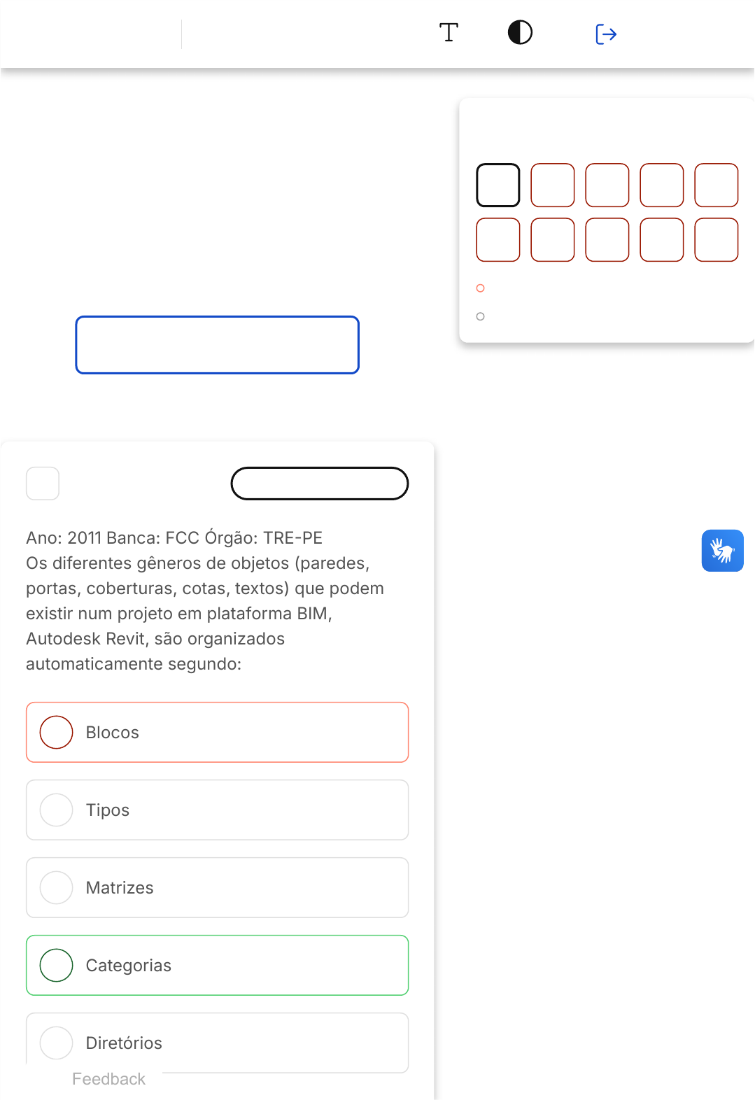 Você acertou 0 de 10 questões Verifique o seu desempenho e continue treinando! Você pode refazer o exercício quantas vezes quiser. Verificar Desempenho A B C D E 1 Marcar para revisão Ano: 2011 Banca: FCC Órgão: TRE�PE Os diferentes gêneros de objetos (paredes, portas, coberturas, cotas, textos) que podem existir num projeto em plataforma BIM, Autodesk Revit, são organizados automaticamente segundo: Blocos Tipos Matrizes Categorias Diretórios Questão 1 de 10 Incorretas �10� Em branco �0� 1 2 3 4 5 6 7 8 9 10 Exercicio Modelagem Da Informação Da Construção (bim) Sair Feedback 28/10/2024, 12:32 estacio.saladeavaliacoes.com.br/exercicio/671fade2e2fec9aeef63211d/gabarito/ https://estacio.saladeavaliacoes.com.br/exercicio/671fade2e2fec9aeef63211d/gabarito/ 1/14 A B Resposta incorreta Opa! A alternativa correta é a letra D. Confira o gabarito comentado! Gabarito Comentado No software Autodesk Revit, que opera na plataforma BIM �Building Information Modeling), os diferentes tipos de objetos presentes em um projeto, como paredes, portas, coberturas, cotas e textos, são organizados automaticamente em categorias. Portanto, a alternativa correta é a "D� Categorias". 2 Marcar para revisão Ano: 2018 Banca: COMPERVE Órgão: UFRN Um dos recursos que a plataforma building information modeling �BIM) oferece ao usuário como mecanismo de celeridade no desenvolvimento de projetos é a modelagem paramétrica de famílias. É possível modelar uma família paramétrica de janela no software Autodesk Revit que posteriormente pode assumir dimensões variáveis em um projeto. Para tanto, deve-se utilizar: Template de família de esquadria, planos de referência, parâmetros de distância, formas e ligações. Template de família de esquadria, planos guias, parâmetros de distância, formas e ligações. 28/10/2024, 12:32 estacio.saladeavaliacoes.com.br/exercicio/671fade2e2fec9aeef63211d/gabarito/ https://estacio.saladeavaliacoes.com.br/exercicio/671fade2e2fec9aeef63211d/gabarito/ 2/14 C D E Template de família de janela, planos guias, parâmetros de dimensão, formas e restrições. Template de família de janela, planos de referência, parâmetros de dimensão, formas e restrições. Template de família de janela, planos de referência, parâmetros de dimensão, formas e ligações. Resposta incorreta Opa! A alternativa correta é a letra D. Confira o gabarito comentado! Gabarito Comentado A alternativa correta é a D, que indica que para modelar uma família paramétrica de janela no software Autodesk Revit, que pode assumir dimensões variáveis em um projeto, deve-se utilizar um template de família de janela, planos de referência, parâmetros de dimensão, formas e restrições. Esses elementos permitem a criação de um modelo paramétrico flexível e adaptável, que pode ser ajustado de acordo com as necessidades específicas de cada projeto. 3 Marcar para revisão Os níveis representam os pavimentos do nosso projeto. A ferramenta de nível é importante para definir a altura vertical ou os andares de uma 28/10/2024, 12:32 estacio.saladeavaliacoes.com.br/exercicio/671fade2e2fec9aeef63211d/gabarito/ https://estacio.saladeavaliacoes.com.br/exercicio/671fade2e2fec9aeef63211d/gabarito/ 3/14 A B C D E construção, os quais serão referências para realização do projeto. No Revit, a definição dos níveis acontece: No fim do projeto, após definidas as posições das paredes em planta. Apenas após finalizada a planta, quando são feitos os cortes. Apenas após finalizada a planta, quando são feitas as elevações. De preferência, antes de dar início à realização da planta, para que as paredes já fiquem na altura adequada. De preferência, quando for realizada a visualização 3D, antes de serem feitos cortes e elevações. Resposta incorreta Opa! A alternativa correta é a letra D. Confira o gabarito comentado! Gabarito Comentado A alternativa correta é a D, que afirma que a definição dos níveis deve ocorrer de preferência antes de dar início à realização da planta. Isso é importante para que as paredes já fiquem na altura adequada desde o início do projeto. Definir os níveis no início permite que a construção seja planejada de maneira mais eficiente, evitando possíveis erros de altura que poderiam ocorrer se os níveis fossem definidos posteriormente. Portanto, a 28/10/2024, 12:32 estacio.saladeavaliacoes.com.br/exercicio/671fade2e2fec9aeef63211d/gabarito/ https://estacio.saladeavaliacoes.com.br/exercicio/671fade2e2fec9aeef63211d/gabarito/ 4/14 A B C definição dos níveis é uma etapa crucial no planejamento de um projeto no Revit. 4 Marcar para revisão Ano: 2012 Banca: FCC Órgão: MPE�AP O termo curtain wall, usado pelo Autodesk Revit Building, pode ser traduzido como parede cortina. No entanto, esta designação deve ser entendida num sentido mais lato, pois este gênero de objetos presta-se igualmente à criação de pequenos vãos, desde que referentes a um conjunto de painéis divididos por uma grelha de caixilhos. A respeito dos componentes de uma parede cortina, é correto afirmar que: A grelha é composta unicamente de linhas traçadas em uma ou duas direções perpendiculares entre si. Os painéis que resultam da divisão da superfície de uma parede cortina não podem ser manipulados individualmente. Os system panels são habitualmente utilizados para representar os painéis vazios, ou seja, um vão aberto. 28/10/2024, 12:32 estacio.saladeavaliacoes.com.br/exercicio/671fade2e2fec9aeef63211d/gabarito/ https://estacio.saladeavaliacoes.com.br/exercicio/671fade2e2fec9aeef63211d/gabarito/ 5/14 D E Para constituir uma grelha secundária dentro da grelha principal é possível inserir uma parede cortina em um painel. Não é possível colocar caixilhos sobre as linhas de grelha, pois devem ser obrigatoriamente definidos antes da criação das grelhas. Resposta incorreta Opa! A alternativa correta é a letra D. Confira o gabarito co