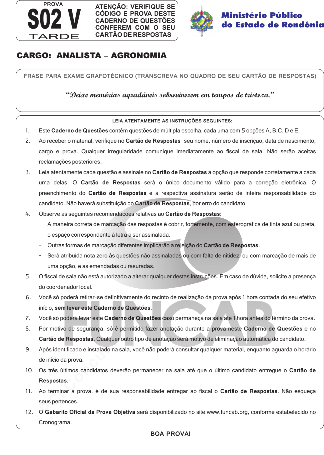 pcimarkpci MDAwMDowMDAwOjAwMDA6MDAwMDowMDAwOmZmZmY6YmQzODoyYjhh:U3VuLCAwMyBOb3YgMjAyNCAxMzowOToyNCAtMDMwMA== www.pciconcursos.com.br CARGO: ANALISTA AGRONOMIA– FRASE PARA EXAME GRAFOTÉCNICO (TRANSCREVA NO QUADRO DE SEU CARTÃO DE RESPOSTAS) “Deixe memórias agradáveis sobreviverem em tempos de tristeza.” S02 V ATENÇÃO: VERIFIQUE SE CÓDIGO E PROVA DESTE CADERNO DE QUESTÕES CONFEREM COM O SEU CARTÃO DE RESPOSTAS PROVA TARDE 1. Este contém questões de múltipla escolha, cada uma com 5 opções A, B,C, D e E. 2. Ao receber o material, verifique no seu nome, número de inscrição, data de nascimento, cargo e prova. Qualquer irregularidade comunique imediatamente ao fiscal de sala. Não serão aceitas reclamações posteriores. 3. Leia atentamente cada questão e assinale no a opção que responde corretamente a cada uma delas. O será o único documento válido para a correção eletrônica. O preenchimento do e a respectiva assinatura serão de inteira responsabilidade do candidato. Não haverá substituição do , por erro do candidato. 4. Observe as seguintes recomendações relativas ao : - A maneira correta de marcação das respostas é cobrir, fortemente, com esferográfica de tinta azul ou preta, o espaço correspondente à letra a ser assinalada. - Outras formas de marcação diferentes implicarão a rejeição do . - Será atribuída nota zero às questões não assinaladas ou com falta de nitidez, ou com marcação de mais de uma opção, e as emendadas ou rasuradas. 5. O fiscal de sala não está autorizado a alterar qualquer destas instruções. Em caso de dúvida, solicite a presença do coordenador local. 6. Você só poderá retirar-se definitivamente do recinto de realização da prova após 1 hora contada do seu efetivo início, . 7. Você só poderá levar este caso permaneça na sala até 1 hora antes do término da prova. 8. Por motivo de segurança, só é permitido fazer anotação durante a prova neste e no . Qualquer outro tipo de anotação será motivo de eliminação automática do candidato. 9. Após identificado e instalado na sala, você não poderá consultar qualquer material, enquanto aguarda o horário de início da prova. 10. Os três últimos candidatos deverão permanecer na sala até que o último candidato entregue o . 11. Ao terminar a prova, é de sua responsabilidade entregar ao fiscal o . Não esqueça seus pertences. 12. O será disponibilizado no site www.funcab.org, conforme estabelecido no Cronograma. Caderno de Questões Cartão de Respostas Cartão de Respostas Cartão de Respostas Cartão de Respostas Cartão de Respostas Cartão de Respostas Cartão de Respostas sem levar este Caderno de Questões Caderno de Questões Caderno de Questões Cartão de Respostas Cartão de Respostas Cartão de Respostas Gabarito Oficial da Prova Objetiva LEIA ATENTAMENTE AS INSTRUÇÕES SEGUINTES: BOA PROVA! Ministério Público do Estado de Rondônia pcimarkpci MDAwMDowMDAwOjAwMDA6MDAwMDowMDAwOmZmZmY6YmQzODoyYjhh:U3VuLCAwMyBOb3YgMjAyNCAxMzowOToyNCAtMDMwMA== www.pciconcursos.com.br 02 Leia o texto abaixo e responda às questões propostas. Doentes e peregrinos buscam a salvação em templos que praticam o exorcismo em Kerala, ao sul da Índia. Garanto: naquela região se operam, de fato, milagres que salvam vidas diariamente. Os “milagres” nada têm a ver com os deuses ou demônios.Apenas com homens, responsáveis por uma das mais admiradas experiências sociais já produzidas num país pobre. Como o resto da Índia, Kerala é miserável, sua renda por habitante é de US$ 300 por ano – dez vezes menos do que a brasileira e cem vezes se comparada com a americana. Primeiro “milagre” num país de 900 milhões de habitantes com explosivo crescimento populacional: cada mulher tem apenas dois filhos (1,7, para ser mais preciso), uma média semelhante à de um casal de classe média alta em Manhattan, Paris, São Paulo ou Rio de Janeiro. Segundo e mais importante: de cada mil crianças que nascem, apenas 13 morrem antes de completar um ano – um nível de mortalidade infantil semelhante ao dos Estados Unidos e quatro vezes menor que o do Brasil. Até pouco tempo atrás, Kerala era mais conhecida por suas praias, onde os turistas “descolados” se deitavam na areia depois do banho, massageados por moradores que aprenderam de seus ancestrais os segredos da massagem ayurvédica, medicina tradicional indiana. Agora, porém, atrai tipos menos transcendentais da Europa e dos Estados Unidos, decididos a entender e difundir a experiência sobre como um lugar miserável consegue indicadores sociais tão bons. As pesquisas indicam, em essência, um caminho: graças à vontade política dos governantes locais, em nenhum outro lugar da Índia se investiu tanto na educação das mulheres. Uma ação que enfrentou a rotina da marginalização. Na Índia, por questões culturais, se propagou o infanticídio contra meninas, praticado pelos próprios pais. Em Kerala, apenas 5% das garotas estão fora da escola, reduzindo a porcentagens insignificantes o analfabetismo. Elas são mais educadas, entram no mercado de trabalho, frequentam postos de saúde, amamentam os filhos, conhecem noções de higiene, sabem a importância, por exemplo, de ferver a água ou aplicar as vacinas, planejam voluntariamente o número de filhos. Daí se vê o que significou, no Brasil, termos gasto tanto dinheiro na construção de hospitais, em vez de investir mais pesadamente em medicina preventiva. Muitas dessas obras só ajudaram a saúde financeira dos empreiteiros. Como encontrar um milagre na Índia (DIMENSTEIN, Gilberto. – Cidadania hoje e amanhã. São Paulo: Ática, 2000, p. 46.) Aprendiz do futuro LÍNGUA PORTUGUESA FUNCAB - Fundação Professor Carlos Augusto Bittencourt Assinale a afirmação que tem base no texto. A) Os milagres a que se refere o texto estão diretamente relacionados com o misticismo do povo indiano. B) Inexplicavelmente, a renda indiana é menor q