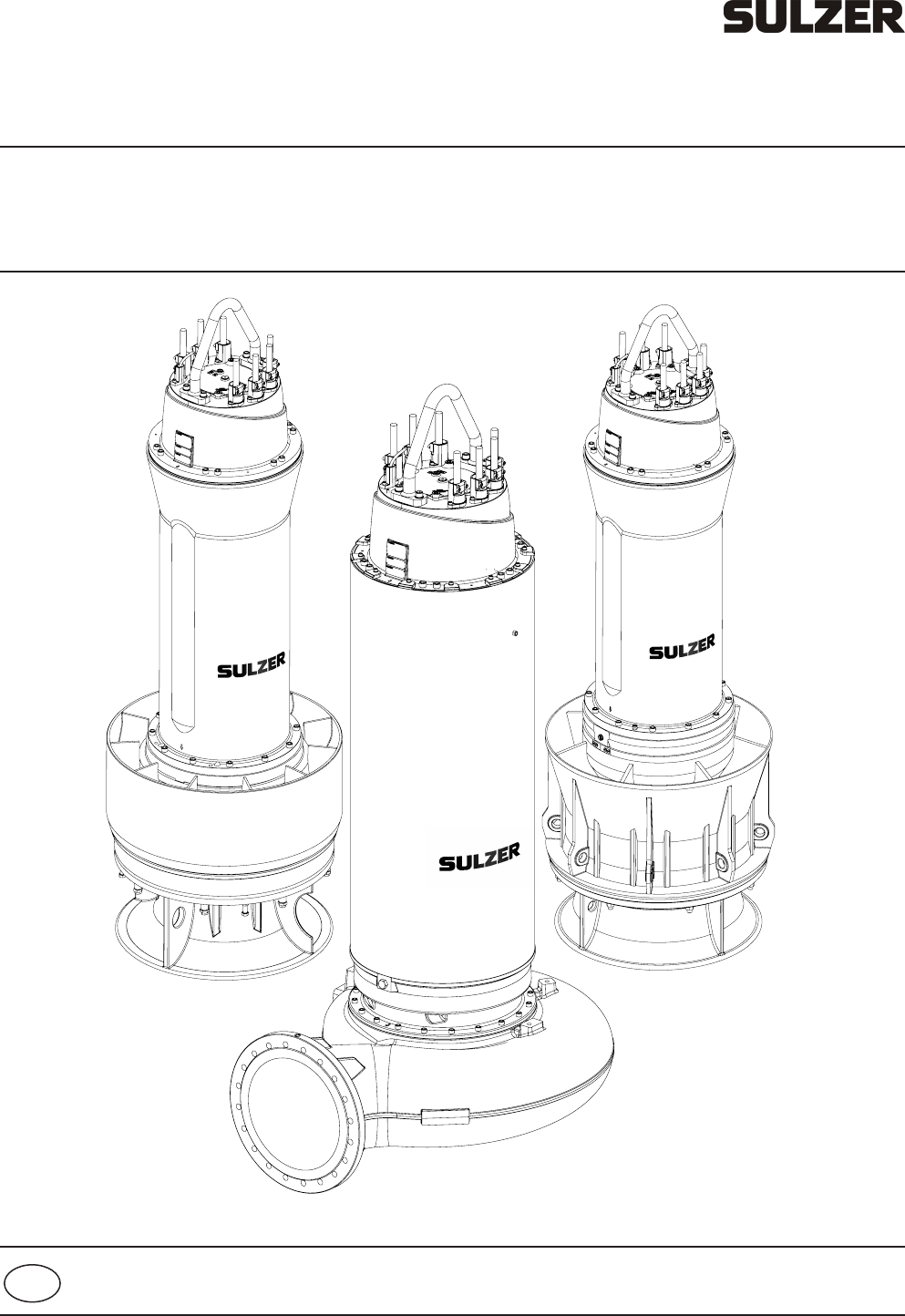 www.sulzer.com 25 00 -0 00 1 Bomba submersível para águas residuais Gama ABS XFP-PE7 Bomba submersível semi-axial Gama ABS AFLX-PE7 Bomba submersível axial Gama ABS VUPX-PE7 15 97 25 20 -0 1 (0 5. 20 23 ) Instruções de montagem e de serviçopt 2 Reservados os direitos a alterações devido ao desenvolvimento técnico contínuo! 15972520-00 Índice 1 Generalidades ....................................................................................................................................... 4 1.1 Utilização conforme as disposições ........................................................................................................ 4 1.2 Áreas de aplicação modelos XFP ........................................................................................................... 5 1.3 Áreas de aplicação para modelos AFLX ................................................................................................. 5 1.4 Áreas de aplicação para modelos VUPX ................................................................................................ 6 1.5 Dados técnicos ........................................................................................................................................ 6 2 Segurança .............................................................................................................................................. 7 3 Elevação, transporte e armazenamento ............................................................................................. 8 3.2 Dispositivos de protecção para transporte .............................................................................................. 9 3.3 Armazenamento das unidades ............................................................................................................... 9 4 Sistema de monitorização .................................................................................................................. 10 4.1 Sistema de monitorização do motor ...................................................................................................... 10 4.2 Sensor de fugas (DI) ............................................................................................................................. 10 4.3 Monitorização da temperatura do enrolamento do motor ..................................................................... 10 4.4 Monitorização da temperatura dos rolamentos (opção) ........................................................................ 10 4.5 Indicação da temperatura ..................................................................................................................... 10 4.5.1 O sensor de temperatura Bimetálico ..................................................................................................... 11 4.5.2 O sensor de temperatura Resistência PTC .......................................................................................... 11 4.5.3 O sensor de temperatura PT 100 .......................................................................................................... 11 4.6 Operação com conversores de frequência ........................................................................................... 12 Instruções de montagem e de serviço (Tradução das instruções originais) Para grupos electrobomba submersíveis Sistemas hidráulicos XFP - CH; SK; MX XFP 400T XFP 500U XFP 600V XFP 800X XFP 600X XFP 801X Sistemas hidráulicos AFLX AFLX 1202 AFLX 1203 AFLX 1207 Sistemas hidráulicos VUPX VUPX 0801 VUPX 1001 VUPX 1201 VUPX 0802 VUPX 1002 VUPX 1202 3 15972520-01 5 Instalação ............................................................................................................................................. 13 5.1 Colocação e montagem dos grupos electrobomba submersíveis XFP ................................................ 13 5.1.1 Variantes de instalação dos grupos electrobomba submersíveis XFP ................................................. 13 5.1.2 Pedestal, ajustamento do o´ring e da peça do tubo guia. .................................................................... 15 5.1.3 Binários de aperto ................................................................................................................................. 15 5.1.4 Posição de montagem das anilhas de retenção Nord-Lock® . .............................................................. 15 5.2 Colocação e montagem dos grupos electrobomba submersíveis AFLX e VUPX ................................. 16 5.2.1 Exemplos de instalação dos grupos electrobomba submersíveis AFLX e VUPX ................................. 16 5.2.2 Descer o grupo electrobomba submersível AFLX e VUPX para cima do anel de acoplamento ........... 17 6 Ligação eléctrica ................................................................................................................................. 18 6.1 Designação dos condutores .................................................................................................................. 19 6.2 Ligação dos cabos de comando .......................................................................................................... 19 6.3 Ligação da monitorização da estanquidade no sistema de comando .................................................. 20 6.3.1 Sensor de fugas interno (DI) ................................................................................................................. 20 6.4 Ligação do cabo de compatibilidade eletromagnética (CEM) na caixa de distribuição ........................ 21 7 Colocação em funcionamento ........................................................................................................... 21 7.1 Controlo do sentido de rotação ............................................................................................................. 22 8 Manutenção ...................