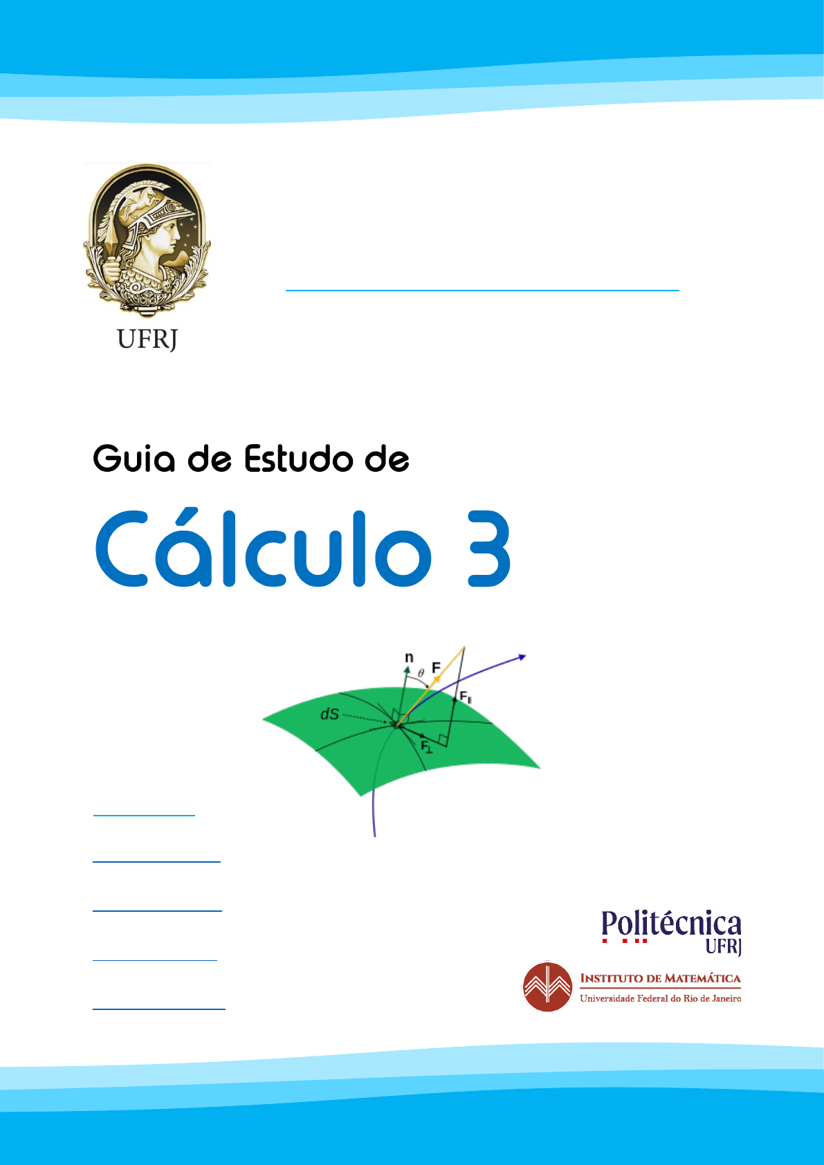 UNIVERSIDADE FEDERAL DO RIO DE JANEIRO E S C O L A P O L I T É C N I C A Instituto de Matemática Cálculo 3 MAC238 2024.1 Monitores André Freitas Pacífico af.pacifico@poli.ufrj.br Gabriel de Sousa Barboza gaboweby@poli.ufrj.br Kaio Leite Andrade kaioleite5@gmail.com Thiago Rocha da Silva thiaaggoxd@poli.ufrj.br mailto:af.pacifico@poli.ufrj.br mailto:gaboweby@poli.ufrj.br mailto:kaioleite5@gmail.com mailto:thiaaggoxd@poli.ufrj.br 2 Guia de Estudo de Cálculo 3 MAC238 https://arquimedes.nce.ufrj.br/calculo3/ https://sites.google.com/view/charlesvereau/courses/c%C3%A1lculo-3?authuser=0 https://youtube.com/playlist?list=PLAudUnJeNg4ugGUJo52dtgFZ_tCm1Ds5W&si=NZh00ctltd3bIzhK https://youtube.com/playlist?list=PLcFPTNG_73PS530nUiPkQUu52en72WmTz&si=DWZ2Bqqs9ySTjxT4 https://youtube.com/@calculodiferencialeintegra6009?si=lnVVerZusZ2RCgon https://drive.google.com/drive/folders/1ec-vKPsSn8CaNjBhPB6hIbuxdb8mKz_P?usp=sharing https://drive.google.com/drive/folders/1AbiqyImRey3b02kwY87sNVkptxkS75tE?usp=sharing https://drive.google.com/drive/folders/1hNBPKW5qlqpCake7_xmnC3cb7aLT2X2u?usp=sharing https://drive.google.com/drive/folders/1bYDNdCGawX0oR3CyDHWoucQBKs33pEG9?usp=sharing https://arquimedes.nce.ufrj.br/calculo3/pastpapers.php?mode=light 3 Guia de Estudo de Cálculo 3 MAC238 1. Integrais Duplas sobre retângulos e região de tipo I e II ❖ • Integrais Duplas: Introdução (Tópico 1, Parte 1) • Integrais Duplas: Introdução (Tópico 1, Parte 2) • Integrais Duplas: Introdução (Tópico 1, Parte 3) • Teorema de Fubini (Tópico 2, Parte 1) • Teorema de Fubini (Tópico 2, Parte 2) • Teorema de Fubini (Tópico 2, Parte 3) • Integrais Iteradas. Teorema de Fubini (Tópico 3, Parte 1) • Integrais Iteradas. Teorema de Fubini (Tópico 3, Parte 2) • Integrais Iteradas. Teorema de Fubini (Tópico 3, Parte 3) • Integrais Iteradas. Teorema de Fubini (Tópico 3, Parte 4) ❖ • Não foram gravadas. ❖ • 1ª Semana – Vídeo 1 – Cálculo de volume e integrais iteradas • 1ª Semana – Vídeo 2 – Integrais duplas e Teorema de Fubini • 1ª Semana – Vídeo 3 – Integrais duplas em domínios mais gerais ❖ • Lista 01 – Exercícios Sugeridos da 1ª Semana ❖ • Capítulo 5.4 ❖ • 1ª Semana ❖ • Seção 15.2: 23-29 https://youtu.be/8mBTfk7s63s?si=L2yEZWQjZIRabd6R https://youtu.be/wtE15tImppc?si=WBrRzNPGX7gblzw6 https://youtu.be/_xRVPnLCics?si=QrW-dFioH5hCbZp- https://youtu.be/zojjmZhXtLk?si=Pm2aYC92SXnHcQtK https://youtu.be/MLO3f22Z7sc?si=HWmODAVweSnhcbiR https://youtu.be/Rv_xEzNTk2w?si=zNdiGhzo5xutyUfm https://youtu.be/DJuBwQ5GnVE?si=DVk0_BIdSt4-tIUX https://youtu.be/bHFW8ocFI8o?si=jGkt-UiKGt7eyxLF https://youtu.be/MK3GFJub5iQ?si=kHN0QVRwFExWs3Bi https://youtu.be/_f0T4XVtvEo?si=Va-5VgVS5UHog_j5 https://youtu.be/3x8HTeUuh-4?si=9_1-9aOZJQOWJkz9 https://youtu.be/v-B-jFHSqY8?si=RCHOG6Z8HvRPGLeX https://youtu.be/SBBXrM-39p4?si=YiE-B2JLBcNKujK1 https://drive.google.com/file/d/117mjnUoEIIh2Wurj3d8xq22nT0MTlQ1r/view?usp=drive_link https://drive.google.com/file/d/1XHuobXiMOpwTOA2Wg2mbinDdJEGzgoQ2/view?usp=drive_link 4 Guia de Estudo de Cálculo 3 MAC238 • Seção 15.3: 7-28, 33-38 ❖ • Gabarito – Lista 01 • Resolução Detalhada – Lista 01 ❖ • Gabarito Diomara – 5.4 2. Mudança de Variáveis na Integral Dupla ❖ • Mudança de Variáveis na Integral Dupla (Tópico 4, Parte 1) • Mudança de Variáveis na Integral Dupla (Tópico 4, Parte 2) • Mudança de Variáveis na Integral Dupla (Tópico 4, Parte 3) • Mudança de Variáveis na Integral Dupla (Tópico 4, Parte 4) • Mudança de Variáveis na Integral Dupla (Tópico 4, Parte 5) • Mudança de Variáveis na Integral Dupla (Tópico 4, Parte 6) • Mudança de Variáveis na Integral Dupla (Tópico 4, Parte 7) ❖ • Aula 03 – Mudança de Variáveis na Integral Dupla • Aula 04 – Mudança de Variáveis EXERCÍCIOS ❖ • 2ª Semana – Vídeo 1 – Mudança de Coordenadas • 2ª Semana – Vídeo 2 – Mudança de Coordenadas gerais ❖ https://drive.google.com/file/d/1qdtMWWxloJwbyRWFN184yccw5UdV33nI/view?usp=drive_link https://drive.google.com/file/d/1wQ8L2fcZAcwa_rVtMzbQE1a4fdKFWc9u/view?usp=drive_link https://drive.google.com/file/d/1b3vpi_0ll_xzjRflZMnaePDV3Px35cg_/view?usp=drive_link https://youtu.be/-rGfJCkSzlQ?si=LUW1fBh0fTyj6uzV https://youtu.be/5oKzW1WaiAU?si=I6-IfXc4q5UUOlcg https://youtu.be/buB9X9WfTPs?si=Fg2dkZd8z7KBsTYo https://youtu.be/ZSNgDr6duOU?si=h2zG3nbVAVjepWqD https://youtu.be/4zSwz6maKKM?si=f33NFpYHtbIIxil8 https://youtu.be/f0VRgp5n5RQ?si=ooeYaUMNBp-E_oKK https://youtu.be/Gaj12X0E6dc?si=PdsvQIWkRZ5QKSSY https://youtu.be/BQSQi98D3Q4?si=9RCeAZlsTozJE8Hq https://youtu.be/-I6B23xJavQ?si=2m3b1wu427AWSn-B https://youtu.be/BRyCXplHqW4?si=S-hPWymSLEQKxUHa https://youtu.be/IYovFOrjvu4?si=kuYaG4ynC7vf_I_9 5 Guia de Estudo de Cálculo 3 MAC238 • Lista 02 – Exercícios Sugeridos da 2ª Semana ❖ • Capítulo 5.6 ❖ • 1ª Semana ❖ • Seção 15.4: 1-27, 36, 37 ❖ • Gabarito – Lista 02 • Resolução Detalhada – Lista 02 ❖ • Gabarito Diomara – 5.6 3. Integral de Linha Escalar e Vetorial ❖ • Integrais de Linha (Tópico 7, Parte 1) • Integrais de Linha (Tópico 7, Parte 2) • Integrais de Linha (Tópico 7, Parte 3) • Integrais de Linha (Tópico 7, Parte 4) • Revisão e complementação (Tópico 8, Parte 1) • Revisão e complementação (Tópico 8, Parte 2) • Revisão e complementação (Tópico 8, Parte 3) • Revisão e complementação (Tópico 8, Parte 4) • Revisão e complementação (Tópico 8, Parte 5) • Revisão e complementação (Tópico 8, Parte 6) • Revisão e complementação (Tópico 8, Parte 7) • Integral de Linha de Campos Vetoriais (Tópico 9, Parte 1) https://drive.google.com/file/d/1FIW_GU-85EnBqZ8UEJu7Rwdc_1imH8KD/view?usp=drive_link https://drive.google.com/file/d/1XHuobXiMOpwTOA2Wg2mbinDdJEGzgoQ2/view?usp=drive_link https://drive.google.com/file/d/1Y-D57buL3R1XO2kR0tI0S0PgyOnn2H4p/view?usp=drive_link https://drive.go
