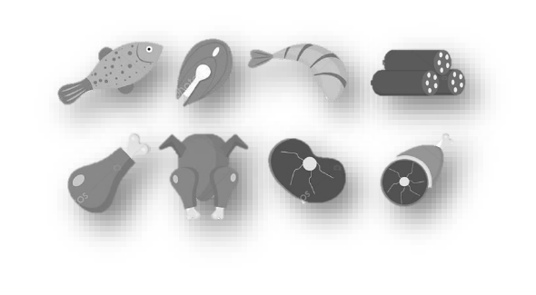 proteínas, tais como, peixes, aves, bovinos, suínos e outros,