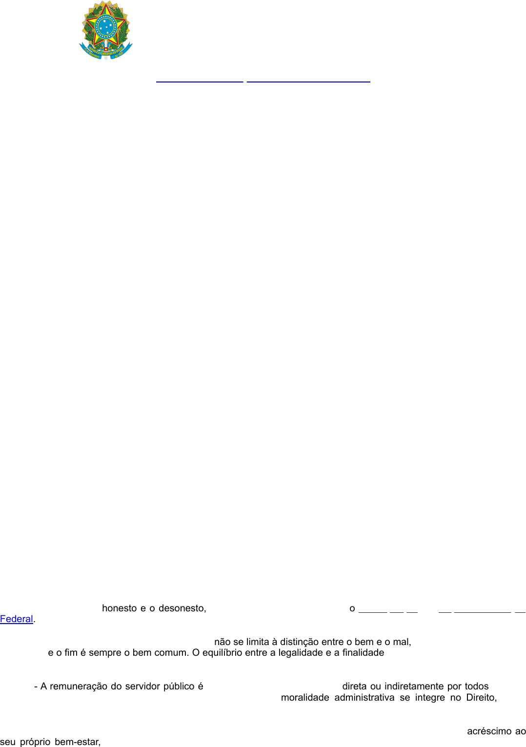 Presidência da República Casa Civil Subchefia para Assuntos Jurídicos DECRETO Nº 1.171, DE 22 DE JUNHO DE 1994 Aprova o Código de Ética Profissional do Servidor Público Civil do Poder Executivo Federal. O PRESIDENTE DA REPÚBLICA, no uso das atribuições que lhe confere o art. 84, incisos IV e VI, e ainda tendo em vista o disposto no art. 37 da Constituição, bem como nos arts. 116 e 117 da Lei n° 8.112, de 11 de dezembro de 1990, e nos arts. 10, 11 e 12 da Lei n° 8.429, de 2 de junho de 1992, DECRETA: Art. 1° Fica aprovado o Código de Ética Profissional do Servidor Público Civil do Poder Executivo Federal, que com este baixa. Art. 2° Os órgãos e entidades da Administração Pública Federal direta e indireta implementarão, em sessenta dias, as providências necessárias à plena vigência do Código de Ética, inclusive mediante a Constituição da respectiva Comissão de Ética, integrada por três servidores ou empregados titulares de cargo efetivo ou emprego permanente. Parágrafo único. A constituição da Comissão de Ética será comunicada à Secretaria da Administração Federal da Presidência da República, com a indicação dos respectivos membros titulares e suplentes. Art. 3° Este decreto entra em vigor na data de sua publicação. Brasília, 22 de junho de 1994, 173° da Independência e 106° da República. ITAMAR FRANCO Romildo Canhim Este texto não substitui o publicado no DOU de 23.6.1994. ANEXO Código de Ética Profissional do Servidor Público Civil do Poder Executivo Federal CAPÍTULO I Seção I Das Regras Deontológicas I - A dignidade, o decoro, o zelo, a eficácia e a consciência dos princípios morais são primados maiores que devem nortear o servidor público, seja no exercício do cargo ou função, ou fora dele, já que refletirá o exercício da vocação do próprio poder estatal. Seus atos, comportamentos e atitudes serão direcionados para a preservação da honra e da tradição dos serviços públicos. II - O servidor público não poderá jamais desprezar o elemento ético de sua conduta. Assim, não terá que decidir somente entre o legal e o ilegal, o justo e o injusto, o conveniente e o inconveniente, o oportuno e o inoportuno, mas principalmente entre o honesto e o desonesto, consoante as regras contidas no art. 37, caput, e § 4°, da Constituição Federal. III - A moralidade da Administração Pública não se limita à distinção entre o bem e o mal, devendo ser acrescida da idéia de que o fim é sempre o bem comum. O equilíbrio entre a legalidade e a finalidade, na conduta do servidor público, é que poderá consolidar a moralidade do ato administrativo. IV- A remuneração do servidor público é custeada pelos tributos pagos direta ou indiretamente por todos, até por ele próprio, e por isso se exige, como contrapartida, que a moralidade administrativa se integre no Direito, como elemento indissociável de sua aplicação e de sua finalidade, erigindo-se, como conseqüência, em fator de legalidade. V - O trabalho desenvolvido pelo servidor público perante a comunidade deve ser entendido como acréscimo ao seu próprio bem-estar, já que, como cidadão, integrante da sociedade, o êxito desse trabalho pode ser considerado como seu maior patrimônio. 22/10/2024, 10:46 D1171 https://www.planalto.gov.br/ccivil_03/decreto/d1171.htm 1/5 http://legislacao.planalto.gov.br/legisla/legislacao.nsf/Viw_Identificacao/DEC%201.171-1994?OpenDocument https://www.planalto.gov.br/ccivil_03/Constituicao/Constitui%C3%A7ao.htm#art37 https://www.planalto.gov.br/ccivil_03/Constituicao/Constitui%C3%A7ao.htm#art37%C2%A74 https://www.planalto.gov.br/ccivil_03/Constituicao/Constitui%C3%A7ao.htm#art37%C2%A74 Highlight Highlight VI - A função pública deve ser tida como exercício profissional e, portanto, se integra na vida particular de cada servidor público. Assim, os fatos e atos verificados na conduta do dia-a-dia em sua vida privada poderão acrescer ou diminuir o seu bom conceito na vida funcional. VII - Salvo os casos de segurança nacional, investigações policiais ou interesse superior do Estado e da Administração Pública, a serem preservados em processo previamente declarado sigiloso, nos termos da lei, a publicidade de qualquer ato administrativo constitui requisito de eficácia e moralidade, ensejando sua omissão comprometimento ético contra o bem comum, imputável a quem a negar. VIII - Toda pessoa tem direito à verdade. O servidor não pode omiti-la ou falseá-la, ainda que contrária aos interesses da própria pessoa interessada ou da Administração Pública. Nenhum Estado pode crescer ou estabilizar-se sobre o poder corruptivo do hábito do erro, da opressão ou da mentira, que sempre aniquilam até mesmo a dignidade humana quanto mais a de uma Nação. IX - A cortesia, a boa vontade, o cuidado e o tempo dedicados ao serviço público caracterizam o esforço pela disciplina. Tratar mal uma pessoa que paga seus tributos direta ou indiretamente significa causar-lhe dano moral. Da mesma forma, causar dano a qualquer bem pertencente ao patrimônio público, deteriorando-o, por descuido ou má vontade, não constitui apenas uma ofensa ao equipamento e às instalações ou ao Estado, mas a todos os homens de boa vontade que dedicaram sua inteligência, seu tempo, suas esperanças e seus esforços para construí-los. X - Deixar o servidor público qualquer pessoa à espera de solução que compete ao setor em que exerça suas funções, permitindo a formação de longas filas, ou qualquer outra espécie de atraso na prestação do serviço, não caracteriza apenas atitude contra a ética ou ato de desumanidade, mas principalmente grave dano moral aos usuários dos serviços públicos. XI - O servidor deve prestar toda a sua atenção às ordens legais de seus superiores, velando atentamente por seu cumprimento, e, assim, evitando a conduta negligente. Os repetidos erros, o descaso e o acúmulo de desvios tornam-se, às