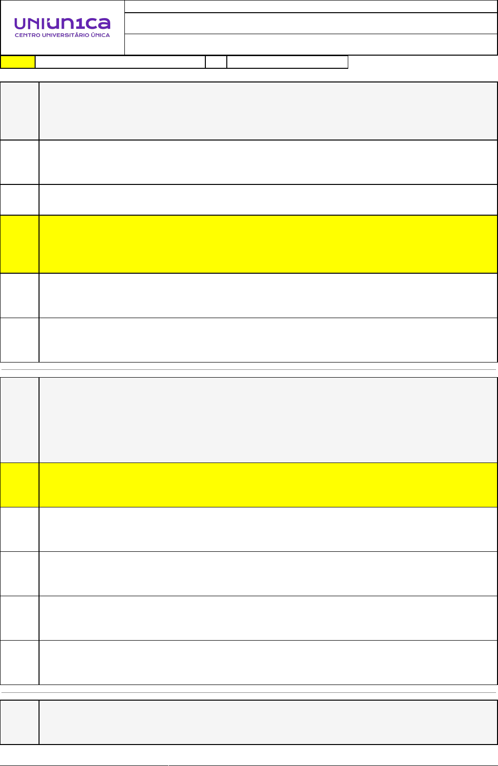 Respostas corretas são marcadas em amarelo X Respostas marcardas por você.