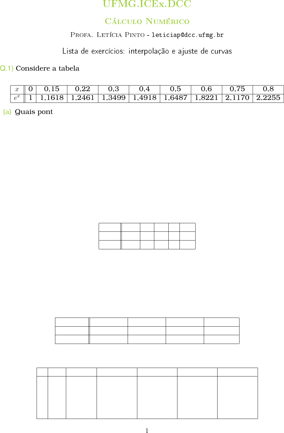 Q.7) Considere um conjunto de pares de pontos (xi, yi) obtidos experimentalmente.