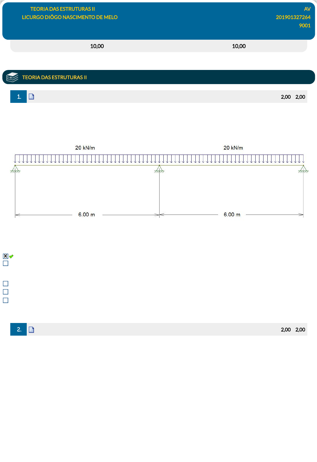 Disciplina: TEORIA DAS ESTRUTURAS II AV