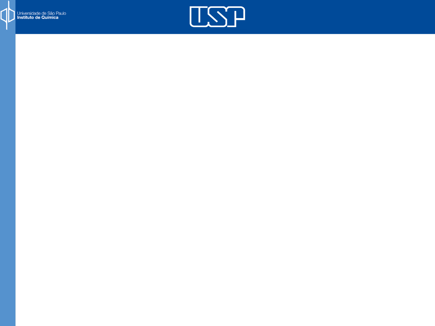 Cassius V. Stevani Aula 6. Espectroscopia Aula Comentada – Parte 1 Estrutura e Propriedades de Compostos Orgânicos Es tr ut ur a e Pr op rie da de s d e Co m po st os O rg ân ic os Literatura Recomendada 1 •Clayden, Greeves, Warren, Wothers (2ª ed.): cap. 3, 13 e 18 •Klein (2ª ed.): cap. 15 e 16 •Bruice (4ª ou 5ª ed.): cap. 13 e 14 Es tr ut ur a e Pr op rie da de s d e Co m po st os O rg ân ic os Espectroscopia e Espectrometria 2 IV (IR): grupos funcionais UV/Vis: conjugação EM (MS): massa molecular e composição de átomos RMN (NMR): esqueleto carbônico, ligações C-C e C-H Raio-X: estrutura mais realista, porém tem limitações: ü Aplicável para sólidos cristalinos ü Não é uma análise de rotina e demanda tempo e pessoal especializado Wikipedia: Difratômetro de raios-X em movimento Wikipedia cristal padrão de difração mapa de densidade eletrônica modelo molecular re fin am en to raio-X ajuste fases Es tr ut ur a e Pr op rie da de s d e Co m po st os O rg ân ic os Espectroscopia | Utilidade 3 Análises espectroscópicas são utilizadas para: ü Descobrir a estrutura de um produto desconhecido de uma reação química ü Descobrir um composto desconhecido da natureza ü Detectar contaminantes em comida ü Checar de forma rotineira a pureza de remédios sintéticos Es tr ut ur a e Pr op rie da de s d e Co m po st os O rg ân ic os Espectroscopia | Princípios 4 Radiação Eletromagnética Klein D (2015) Química Orgânica, 2ª Ed., Wiley aumento de frequência (ν) aumento de comprimento de onda (λ) Algumas formas de espectroscopia e seus usos Tipo Região do espectro Informação obtida Ressonância magnética nuclear (RMN) Ondas de rádio Infravermelho Visível e ultravioleta Infravermelho (IV) UV-Vis Arranjo específico de todos os carbonos e hidrogênios no composto Grupos funcionais presentes Qualquer conjugação π presente no composto raio γ raio X UV-C UV-A UV-B Visível IV (NIR) IV Micro ondas Es tr ut ur a e Pr op rie da de s d e Co m po st os O rg ân ic os Infravermelho (IV) 5 Espectroscopia no IV estiramento simétrico estiramento assimétrico Flexão Bruice PY (2015) Química Orgânica, 8ª Ed., Pearson Estiramentos Flexão simétrica no plano (tesoura) Flexão simétrica no plano (balanço) Flexão simétrica fora do plano (torção) Flexão simétrica fora do plano (abano) IV: transição vibracional Es tr ut ur a e Pr op rie da de s d e Co m po st os O rg ân ic os Infravermelho (IV) 6 Espectro de IV: a técnica permite a identificação de grupos funcionais Clayden J, Greeves N, Warren SG (2001) Organic Chemistry, 2ª Ed., Oxford University Press cianoacetamida Frequência (cm-1) Tr an sm itâ nc ia (% ) frequência em número de onda (ν, cm-1) ligação de hidrogênio ligação tripla ligação dupla ligação simples Valores afetados pela massa atômica (átomos mais leves, maior frequência) Valores afetados pela força de ligação (ligações mais fortes, maior frequência) Es tr ut ur a e Pr op rie da de s d e Co m po st os O rg ân ic os Infravermelho (IV) 7 Espectro de IV: ligação de hidrogênio Clayden J, Greeves N, Warren SG (2001) Organic Chemistry, 2ª Ed., Oxford University Press Espectro 1 Espectro 2 Espectro 4Espectro 3 T ra ns m iss ão T ra ns m iss ão T ra ns m iss ão T ra ns m iss ão Frequência (cm-1) Frequência (cm-1) Frequência (cm-1) Frequência (cm-1) Estiramento do NH2 simétrico anti- simétrico ~3400cm-1 ~3300cm-1 ligação de hidrogênio álcool ligação de hidrogênio dímero ácido carboxílico Es tr ut ur a e Pr op rie da de s d e Co m po st os O rg ân ic os Infravermelho (IV) 8 Espectro de IV: ligação de hidrogênio e C-H T ra ns m iss ão Frequência (cm-1) T ra ns m iss ão Frequência (cm-1) Frequência (cm-1) T ra ns m iss ão ligação de hidrogênio grupo OH no paracetamol no BHT não ocorre ligação de hidrogênio devido o impedimento estérico: banda mais fina Clayden J, Greeves N, Warren SG (2001) Organic Chemistry, 2ª Ed., Oxford University Press Es tr ut ur a e Pr op rie da de s d e Co m po st os O rg ân ic os Infravermelho (IV) 9 Espectro de IV: região de bandas 3000-2000 cm-1 Espectro de IV: ligação de hidrogênio H não ligado H ligado O-H 3500-3300 NH2 3300 e 3400 alcino nitrila alceno arenos alcino carbonila entre 1750 e 1650 (dependendo do tipo) Espectro de IV: padrão típico de bandas O-H e C-H Espectro de IV: região de bandas dupla ligação Clayden J, Greeves N, Warren SG (2001) Organic Chemistry, 2ª Ed., Oxford University Press Es tr ut ur a e Pr op rie da de s d e Co m po st os O rg ân ic os Infravermelho (IV) 10 Espectro de IV: faixas de bandas Frequência (cm-1) Bandas de absorção no infravermelho (flexão) Es tr ut ur a e Pr op rie da de s d e Co m po st os O rg ân ic os Infravermelho (IV) 11 Características da banda de IV Clayden J, Greeves N, Warren SG (2001) Organic Chemistry, 1ª Ed., Oxford University Press Absorções no espectro de IV Posição das bandas depende da: massa reduzida de átomos* força da ligação momento de dipolo Largura das bandas depende da: ligação de hidrogênio * massa reduzida: ácido hexanodióico 1720 cm-1 heptan-2-ona 1710 cm-1 paracetamol 1667 cm-1 átomos leves dão alta frequência ligações fortes dão alta frequência Intensidade das bandas depende do: momento de dipolo grande dão absorção intensa ligação de hidrogênio forte dão bandas largas Es tr ut ur a e Pr op rie da de s d e Co m po st os O rg ân ic os Infravermelho (IV) 12 Região abaixo de 1500 cm-1 confere a identidade da substância (impressão digital) Absorções úteis na região de impressão digital Clayden J, Greeves N, Warren SG (2001) Organic Chemistry, 1ª Ed., Oxford University Press Frequência (cm-1) Intensidade Grupo Comentários médio médio forte forte forte forte forte forte forte forte forte deformação (presente em nujol) deformação (presente em nujol) estiramento de ligação dupla estiramento simétrico N=O estiramento sim