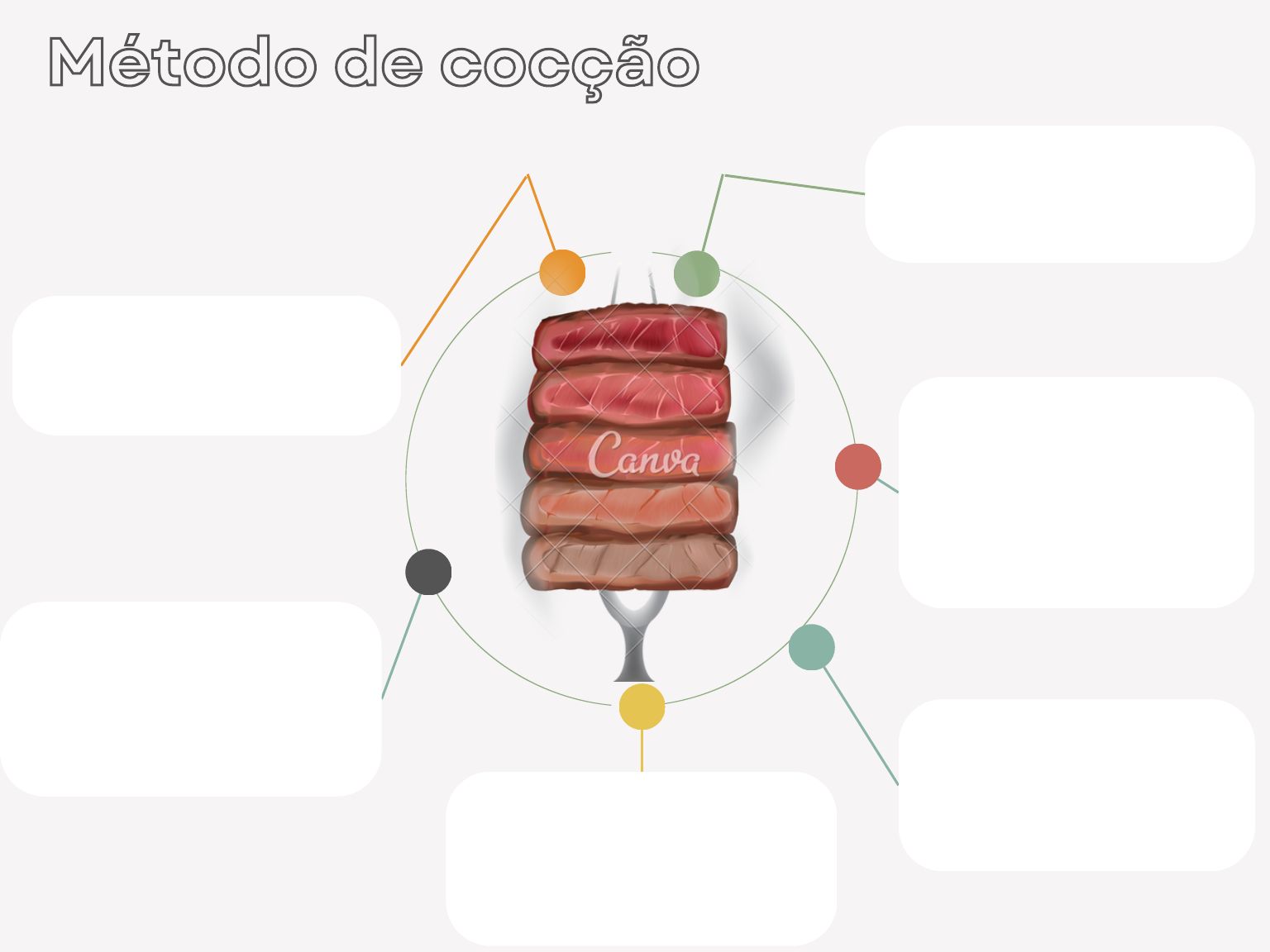 Como o coxão duro, acém e músculo, devem ser cozidos na presença de líquido (ou vapor), que pode ser o da própria carne embalada em material impermeável, pelo tempo necessário para gelatinizar o colágeno. Cortes com menor teor de colágeno, como por exemplo, o filé, contrafilé e alcatra, devem sofrer uma cocção rápida com calor seco, até 62-70°C, de acordo com a preferência por “mal passado”(cor rosada), médio (cor rosa acinzentado), ou “bem passado” (cor marrom acinzentado). Os métodos de cocção (“cozimento”) consistem na aplicação de técnicas na etapa de preparo dos alimentos, na qual se utiliza alguma fonte de calor para modificar características sensoriais, ocorrendo muitas vezes por meio de alterações químicas na sua composição. Calor seco: Aplica apenas ar seco e calor direto ao alimento, ou seja, não adiciona nenhum líquido para agir no cozimento. Calor úmido: Utiliza o vapor de água ou juntamente com outro líquido para cozinhar os alimentos. Calor misto: Primeiro cozinha os alimentos com o calor seco para que o líquido do alimento permaneça e depois adiciona-se o líquido. A temperatura, a presença ou não de umidade, o tempo de cozimento e a temperatura final no interior da carne. Método de cocção Tipos de calor Variáveis observadas de acordo com o tipo de músculo Carnes com menor teor de colágeno Carnes com maior teor de colágeno O que é? Tecnologia de Produtos de Origem Animal Acadêmica: Juliana A. Radwanski O método de cocção tem uma influência marcante na qualidade organoléptica da carne. Um método inadequado pode por a perder todo o esforço feito nos segmentos de produção, abate e comercialização, para se ter uma carne de boa qualidade. Método