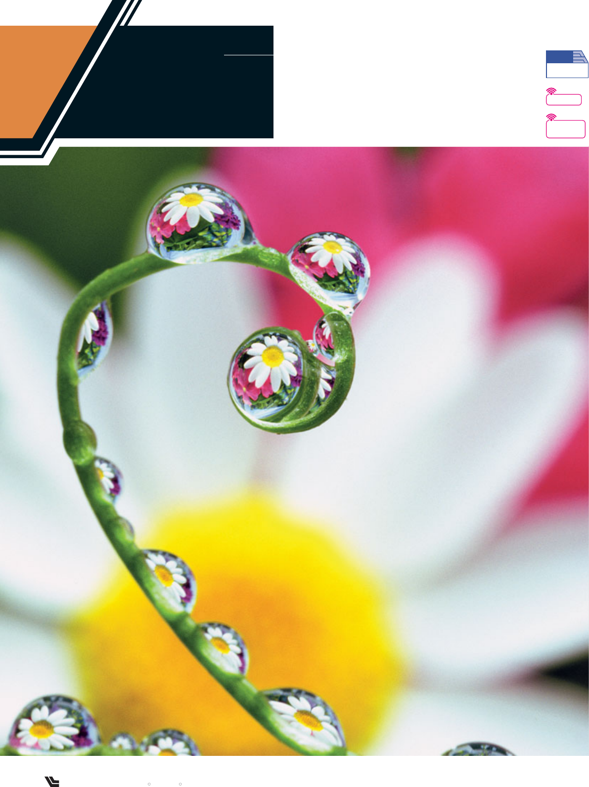 As gotas de água vistas na foto mostram ima- gens de flores como se fossem visualizadas através de uma lente. Nas lentes, as imagens são formadas pela refração da luz que as atravessa. Neste capítulo, estudaremos a refração da luz e as lentes esféricas. S TE V E S A S H U TE K /G E TT Y IM A G E S R ep ro d uç ão p ro ib id a. A rt .1 84 d o C ód ig o P en al e L ei 9 .6 10 d e 19 d e fe ve re iro d e 19 98 . Física – Nicolau Torres Penteado336 26 Capítulo Refração da luz Enem C5: H17 Anotações Biblioteca do professor 1 2 Posição em que a moeda parece estar Figura 1. Duas fotos de uma xícara contendo uma moeda no fundo, tiradas na mesma posição. (A) A moeda não aparece; (B) a moeda aparece depois de se colocar água na xícara. Figura 2. (A) Ao passar da água para o ar, a luz sofre refração, que pode ocorrer com ou sem desvio (raios 1 e 2, respectivamente); (B) com a refração, ocorre uma elevação aparente da moeda. Figura 3. (A) A piscina parece ter uma profundidade menor que a real. (B) O lápis parece quebrado quando mergulhado em um copo com água. JA N V A N D E R H O E V E N /S H U TT E R S TO C K Definir o índice de refração absoluto de um meio. Enunciar a lei de Snell-Descartes. Apresentar o fenômeno da reflexão total. Verificar as características da imagem fornecida por um dioptro plano. Analisar a decomposição da luz policromática e a formação do arco-íris. Apresentar as lentes esféricas, caracterizando seus comportamentos ópticos. Verificar a formação de imagens nas lentes convergentes e divergentes. Apresentar a equação de Gauss e a definição de aumento linear transversal para as lentes. Objetivos do capítulo ZU B IN S H R O FF /S TO N E /G E TT Y IM A G E S FO TO S : D O TT A 2 1 Refração da luz A figura 1 mostra duas fotos de uma mesma xícara contendo uma moeda no fundo, tiradas na mesma posição. Na figura 1A, a moeda não aparece; na figura 1B, a moeda aparece depois de se colocar água na xícara. Isso ocorre porque a luz que provém da moeda muda de direção ao passar da água para o ar, atingindo a câmara fotográfica. A passagem da luz de um meio para outro, acompa- nhada de variação em sua velocidade de propagação, re- cebe o nome de refração da luz. Na figura 2A, ao analisar os raios 1 e 2, percebe-se que a refração pode ocorrer com ou sem desvio na sua direção de propagação. Além disso, por causa da refração, nota-se uma elevação aparente da moeda (fig. 2B). A B Devido à refração, a profundidade de uma piscina (fig. 3A) parece, para uma pessoa fora da água, menor do que realmente é. Um lápis mergulhado em um copo con- tendo água parece quebrado e dobrado para cima (fig. 3B). IL U S TR A Ç Õ E S : S E LM A C A PA R R O Z A B A B R ep ro d uç ão p ro ib id a. A rt .1 84 d o C ód ig o P en al e L ei 9 .6 10 d e 19 d e fe ve re iro d e 19 98 . Capítulo 26 Refração da luz 337 2 Indice de refração absoluto de um meio Para caracterizar a velocidade de propagação (v) de uma dada luz monocromática, em um determinado meio homogêneo e transparente, compara-se a velocidade v da luz nesse meio com a velocidade de propagação da luz no vácuo (c). Para isso, define-se a grandeza índice de refração absoluto do meio para uma dada luz monocromática (n), pela relação entre c e v: 5n v c Observe que n é uma grandeza adimensional. É igual a 1 para o vácuo, pois no vácuo a luz de qualquer com- primento de onda se propaga com velocidade c (aproxi- madamente 300.000 km/s) e maior que 1 para os meios materiais homogêneos e transparentes, pois v , c. Para o ar, n é praticamente igual a 1, pois a velocidade da luz no ar é muito próxima da velocidade da luz no vácuo. Na tabela 1, apresentamos os índices de refração absolu- tos de alguns meios para a luz amarela emitida pelo sódio. Tabela 1. Índíce de refração absoluto de alguns meios materiais homogêneos e transparentes para a luz amarela emitida pelo sódio. Meio Índice de refração absoluto Ar 1,00 Água (20 °C) 1,33 Álcool (20 °C) 1,35 Acrílico 1,49 Glicerina 1,90 Vidro 1,50 Diamante 2,41 Dizer que o índice de refração absoluto da água é 1,33 sig- nifica dizer que a velocidade de propagação da luz no vácuo é 33% maior que a velocidade de propagação da luz na água. O índice de refração absoluto de um meio depende do tipo de luz monocromática que se propaga nesse meio. A tabela 2 apresenta o índice de refração absoluto de um cristal para as diferentes luzes monocromáticas. Note que o menor índice de refração corresponde à luz vermelha e o maior, à luz violeta. Luz monocromática Índice de refração absoluto Vermelha 1,26 Alaranjada 1,30 Amarela 1,35 Verde 1,44 Azul 1,60 Violeta 1,94 Tabela 2. Índices de refração absolutos de um cristal para diferentes luzes monocromáticas. 1. A velocidade de propagação da luz amarela no vidro é 2,0 ? 105 km/s. A velocidade de propagação da luz no vácuo é 3,0 ? 105 km/s. Determinar o índice de refração absoluto do vidro para a luz amarela. Solução O índice de refração absoluto n do vidro para a luz amarela é a relação entre a velocidade de propagação da luz no vácuo (c) pela velocidade de propagação da luz amarela no vidro (v): 5n v c ] , , 5 ? ? n 2 0 10 3 0 10 km/s km/s 5 5 ] ,5n 1 5 2. O que significa dizer que o índice de refração absoluto do diamante, para a luz amarela, é igual a 2,41? Solução Dizer que o índice de refração absoluto do diamante para a luz amarela é 2,41 significa que a velocidade de propagação da luz no vácuo é 2,41 vezes a velocidade de propagação da luz amarela no diamante. 3. Sejam n1 e n2 os índices de refração absolutos de dois meios homogêneos e transparentes, para determinada luz mono- cromática, que se propaga nesses meios com velocidades v1 e v2, respectivamente. A relação n n 2 1 é igual a: a) v v 1 2 b) v v 2 1 c) v1 2 v2 d) v2 2 v1 e) 1 2 v v v v 2 1 2 1 Solução De ,5 5