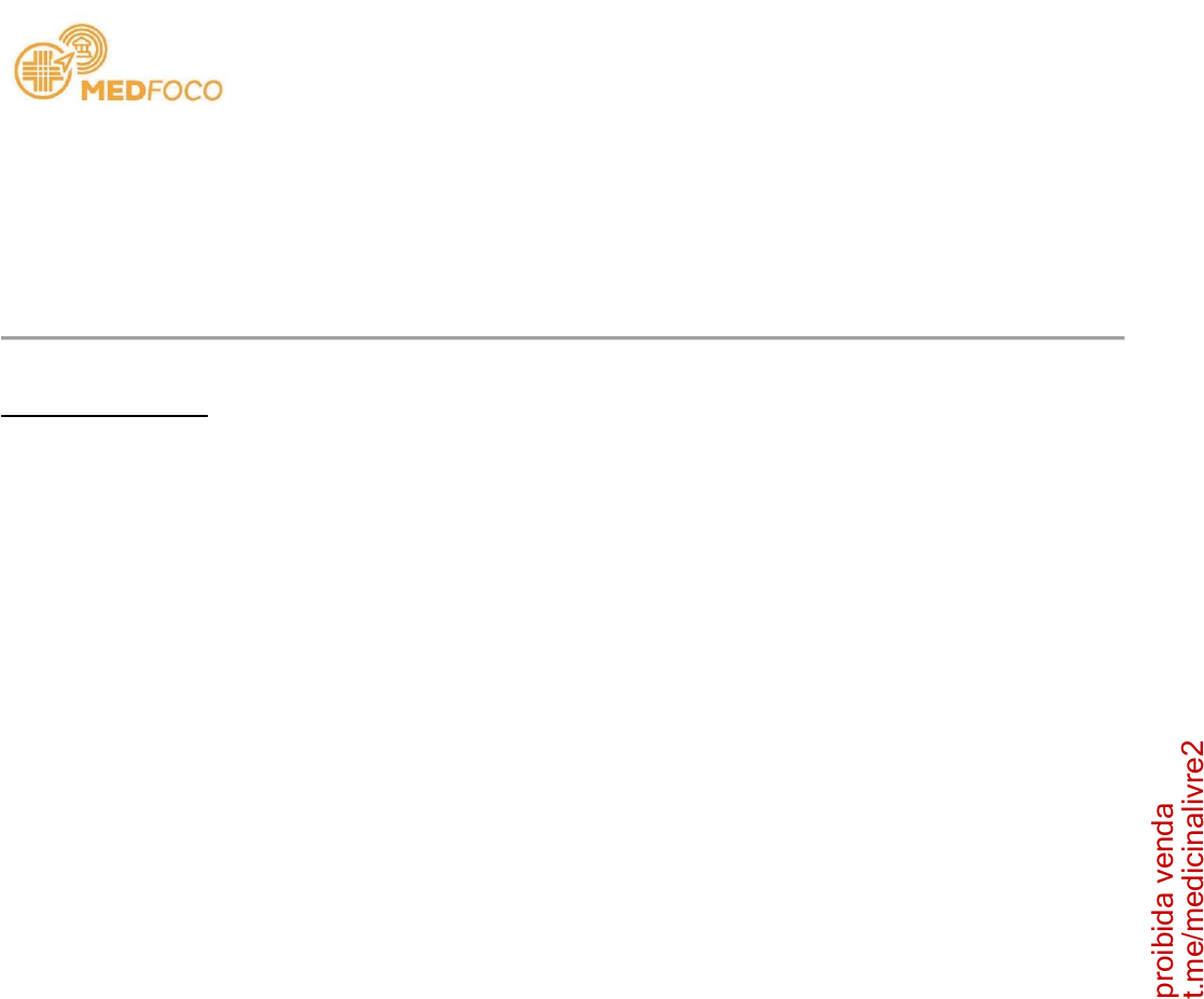 Clínica Médica 01 - O uso de metformina em pacientes com pré-diabetes deve ser considerado nas seguintes situações: I- Idade < 60 anos. II- IMC > 35 kg/m2. III- Glicemia de jejum > 110 mg/dl. Quais estão corretas? A) Apenas I e II. B) Apenas I e III. C) Apenas II e III. D) I, II e III. 02 - É causa medicamentosa de hiperpotassemia, EXCETO: A) Betabloqueador. B) Heparina. C) Anfotericina. D) Sulfametoxazol-trimetoprima. 03 - Sobre a insuficiência cardíaca (IC), é INCORRETO afirmar que: A) Pacientes portadores de IC com fração de ejeção reduzida devem ser vacinados contra pneumococos e influenza. B) A ivabradina é opção para pacientes em fibrilação atrial com FC acima de 70 bpm, apesar do uso de betabloqueadores. C) Inibidores da ECA aumentam a sobrevida e reduzem sintomas. D) A espironolactona pode desencadear ginecomastia dolorosa. 04 - Sobre os cálculos ureterais e seu manejo, assinale a alternativa CORRETA. A) O melhor exame de imagem para o diagnóstico é a ultrassonografia. B) A terapia médica expulsiva é realizada pela associação de alfabloqueador e opioide. C) Caso haja cólica nefrética por um cálculo ureteral obstrutivo com infecção estará indicada intervenção urológica de urgência. D) Havendo indicação de intervenção de urgência a conduta deve ser sempre a ureterolitotripsia. 05 - Mulher de 62 anos, tabagista, diagnosticada com carcinoma de pulmão, evolui com edema generalizado, hipoalbuminemia e proteinúria maciça. Qual é o provável diagnóstico? A) Glomerulopatia membranosa. B) Doença por lesão mínima. C) Glomeruloesclerose focal e segmentar. D) Glomerulonefrite membranoproliferativa. 2023 AMRIGS t.m e/ m ed ic in al iv re 2 pr oi bi da v en da MEDFOCO 2023 AMRIGS 06 - Sobre o atendimento de adultos em parada cardiorrespiratória (PCR), analise as assertivas abaixo e assinale V, se verdadeiras, ou F, se falsas. ( ) A capnografia de onda contínua é o método mais confiável para confirmar e monitorar a colocação correta de um tubo endotraqueal. ( ) Em pacientes intubados, a falha em atingir um ETCO₂ < 10 mmHg após 20 min de manobras de ressuscitação pode ser considerado preditor de mau prognóstico. ( ) Volumes correntes de aproximadamente 250 a 300 mL são razoáveis durante as manobras de ressucitação cardiopulmonar. ( ) Os socorristas devem realizar compressões torácicas a uma profundidade de 5 a 6 cm, com frequência de 100 a 120/minuto. A ordem correta de preenchimento dos parênteses, de cima para baixo, é: A) F – V – V – F. B) V – F – F – V. C) V – F – V – V. D) F – F – V – V. 07 - Paciente de 44 anos, com história de cirurgia bariátrica (by-pass gástrico em Y de Roux) há 5 anos, apresenta fadiga e parestesias em membros inferiores. Os exames complementares mostram hemoglobina de 8,8 g/dl, VCM de 109 fL, leucócitos de 2.800/mm³ e plaquetas de 125.000/mm³. O diagnóstico mais provável é: A) Anemia de doença crônica. B) Síndrome mielodisplásica. C) Anemia ferropriva. D) Anemia megaloblástica. 08 - Mulher de 35 anos, hipertensa e portadora de insuficiência cardíaca, refere tosse seca há três meses. Nega febre, perda ponderal, ortopneia, dispneia paroxística noturna ou dor torácica. Nega tabagismo. Em uso regular de enalapril, metoprolol e espironolactona há seis meses. Ao exame físico, apresenta PA = 100/70mmHg, FC = 55 bpm, FR = 17 irpm. Ausculta cardíaca e respiratória não revela alterações, sem edema de membros inferiores, ausência de turgência jugular. Radiografia de tórax não revela anormalidades. Qual alternativa apresenta a melhor conduta? A) Iniciar furosemida. B) Trocar metoprolol por carvedilol. C) Solicitar tomografia de tórax. D) Trocar enalapril por losartana. 09 - Homem de 18 anos, comparece à consulta de retorno com diagnóstico de asma brônquica. Nas últimas quatro semanas, refere sintomas diurnos três vezes por semana com necessidade e uso de "bombinha" e despertares noturnos semanais. Não há limitação de atividades cotidianas. Está em uso de budesonida + formoterol 200/6 mcg nas crises. Considerando que o paciente está usando o medicamento corretamente e que foram adotadas as medidas comportamentais, qual a conduta correta? A) Aumentar a dose do corticoide inalatório. B) Aumentar a dose de formoterol. C) Indicar o uso regular e diário do esquema atual. D) Associar tiotrópio. 10 - Mulher de 38 anos, assintomática, realizou exame ultrassonográfico, solicitado pelo ginecologista, que revelou a presença de um nódulo sólido, hipoecoico, de contornos regulares, com pontos hiperecogênicos sugestivos de microcalcificações, medindo 1,3 x 0,9 x 1,1 cm, localizado no lobo esquerdo da glândula. Exames laboratoriais: TSH = 1,0 UI/mL, T4 livre = 1,2 ng/dL. Qual é a melhor conduta para elucidação diagnóstica? A) Cintilografia de tireoide. B) Tireoidectomia total. C) Punção aspirativa com agulha fina (PAAF). D) Observação com ultrassonografia a cada 6 meses. t.m e/ m ed ic in al iv re 2 pr oi bi da v en da MEDFOCO 2023 AMRIGS 11 - Homem de 35 anos, sem comorbidades, é levado à Emergência após colisão moto x auto. Durante o atendimento pré-hospitalar, foi constatado choque hemorrágico, o que motivou a administração de solução cristaloide. No segundo dia de internação, os exames laboratoriais evidenciaram aumento importante da creatinina. Assinale a alternativa que apresenta a alteração que indica que a etiologia da injúria renal aguda é a necrose tubular aguda. A) Cilindros hialinos. B) Osmolaridade urinária de 280 mOsm/L. C) Sódio urinário de 15 mEq/L. D) Fração excretória de ureia de 30%. 12 - Em relação à dengue, analise as assertivas abaixo: I) Cursa com síndrome febril que pode durar até 10 dias, associada a cefaleia, astenia, mialgia, artralgia e dor retro-orbitária. II) Os sinais de choque incluem: pulso rápido e fraco, hipotensão, pressão arterial convergente, pele úmida e pegajosa, olig