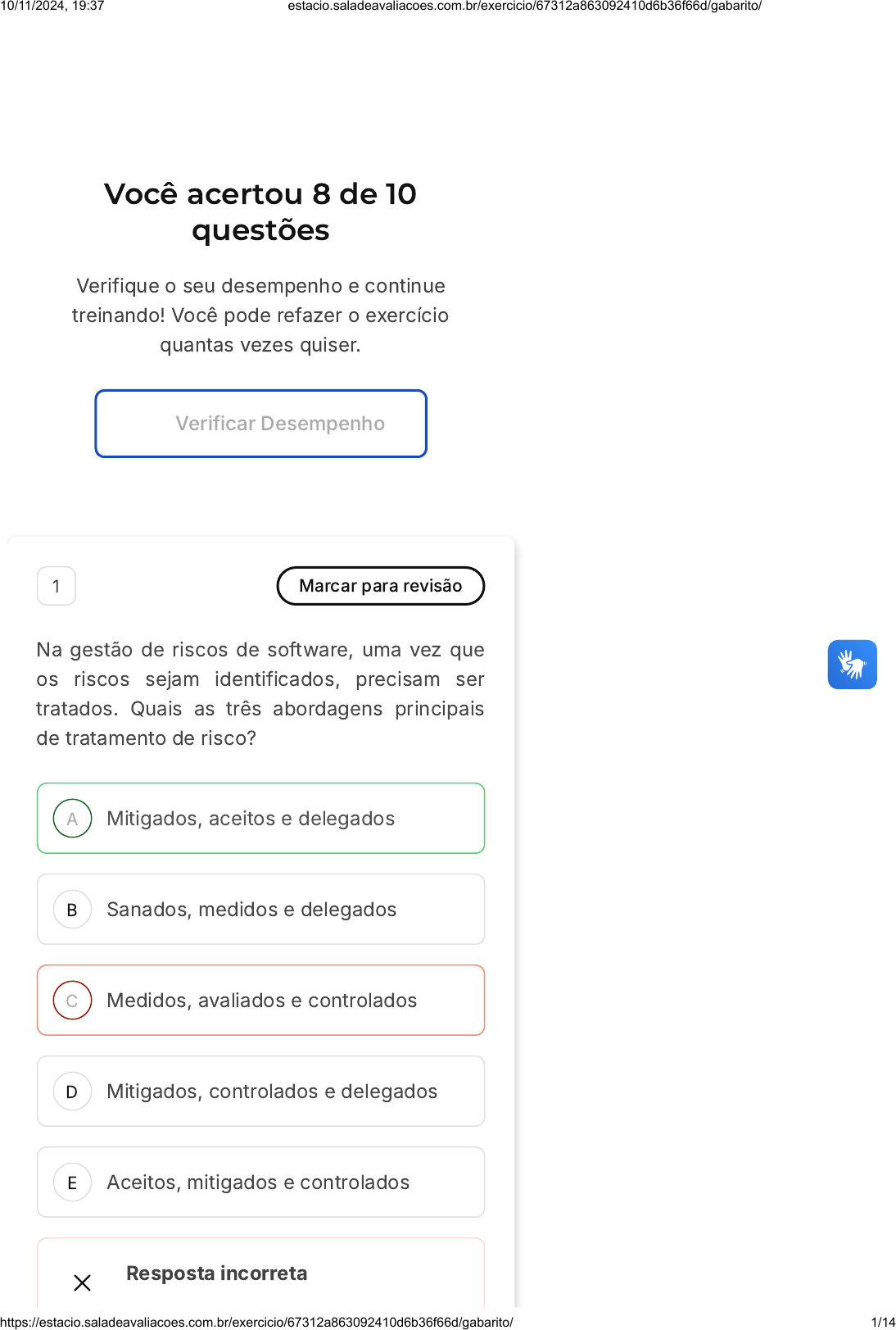 https://estacio.saladeavaliacoes.com.br/exercicio/67312a863092410d6b36f66d/gabarito/ 14/14