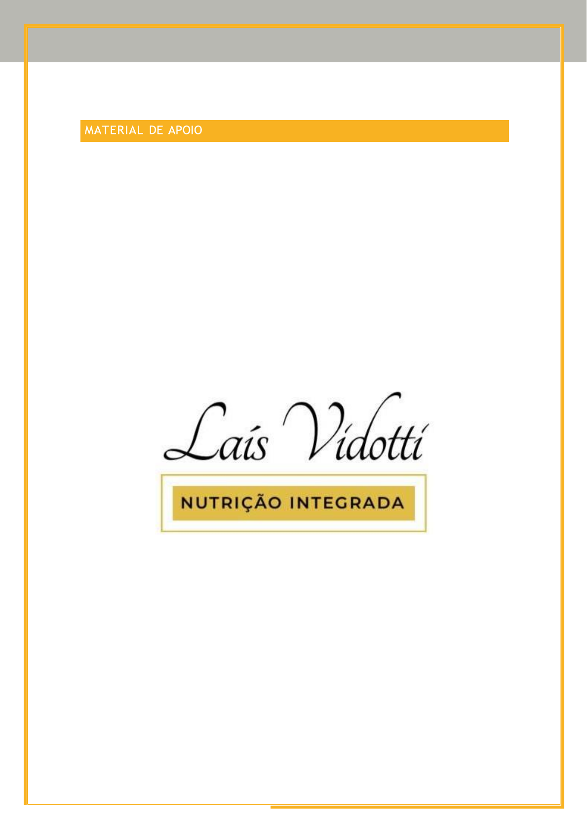 NUTRIÇÃO E ALIMENTAÇÃO SAUDÁVEL NUTRIÇÃO E ALIMENTAÇÃO SAUDÁVEL Este arquivo tem como objetivo orientar sobre aspectos da nutrição e auxiliar pessoas a adquirirem uma alimentação saudável e balanceada, dando autonomia na hora da escolha dos alimentos, na elaboração de receitas e na hora da compra. ELABORADO POR LAÍS VIDOTTI NATALINO | REPRODUÇÃO PROIBIDA | SÃO PAULO, 20 20 Alimentação saudável pode ser descrita de diversas formas. Isso porque cada pessoa tem uma visão e um conhecimento diferente sobre esse assunto, o que envolve a forma como foi criada, o contexto social em que vive, os gostos e estilo de vida que leva e até mesmo a condição financeira. Por esse e outros motivos, na nutrição sempre enfatizamos a importância de um cardápio individualizado para cada um, pois a alimentação deve estar incluída no contexto em que o paciente vive, e não o contrário, onde as pessoas sofrem para seguir uma dieta com alimentos que sequer gostam. Uma alimentação saudável deve englobar três aspectos importantes: sabor, ingredientes mais naturais possíveis e efeitos positivos no seu corpo. Este último envolve efeitos visuais, como melhora da pele, da composição corporal e de sintomas de algumas doenças, e o efeito interno de bem-estar, alegria, satisfação. Portanto, devemos nos ater àquilo que faz sentido para nós, aquilo que está dentro da nossa realidade e dentro das nossas possibilidades. Às vezes, o que funciona para uma pessoa, não dá certo para outra. Olhe para si mesmo, para o seu dia a dia, para sua rotina e suas possibilidades, e faça o seu melhor dentro daquilo que está ao seu alcance! ELABORADO POR LAÍS VIDOTTI NATALINO | REPRODUÇÃO PROIBIDA | SÃO PAULO, 20 20 Macronutrientes são aqueles elementos presente nos alimentos que nos dão energia em forma de quilocaloria. São eles: Carboidratos Proteínas Lipídeos (ou gorduras) Os carboidratos possuem 4kcal em cada 1 grama do alimento, ou seja, 10g de carboidrato nos oferecem 40kcal. Eles são responsáveis por diversas funções no nosso organismo, e a principal é a de nos dar energia. Todo carboidrato ingerido é metabolizado e transformado em glicose. Ou seja, o macarrão, o pão e a batata que comemos virarão glicose no nosso sangue, da mesma forma que o chocolate, a banana e o bolo. O carboidrato é o nutriente que nos da energia de maneira mais rápida, e é armazenado de duas maneiras: como glicose no nosso sangue, dando energia para vários órgãos, e como glicogênio, que é armazenado nos músculos e utilizado apenas por eles. As proteínas também possuem 4kcal a cada grama do alimento, e tem a função estrutural de tecidos e músculos. Ela é responsável pelo crescimento de massa muscular, pela cicatrização, por dar força às unhas, cabelos e pele. As proteínas ingeridas, como ovos, carnes, frango e peixes, são compostas por diversos aminoácidos, e são eles que agem no nosso organismo para realizar essas funções essenciais ao nosso corpo. Já os lipídeos são mais calóricos, contendo 9kcal em cada grama de alimento. Sua função também é de dar energia, além de tantas outras. Porém, sua “quebra” no organismo é mais lenta quando comparada ao carboidrato, por isso não é utilizada como fonte de energia rápida. Também por isso ela nos dá a sensação de saciedade por mais tempo, evitando que tenhamos fome o tempo todo. Esses três macronutrientes são essenciais para a manutenção do nosso corpo, porém em proporções diferentes. ELABORADO POR LAÍS VIDOTTI NATALINO | REPRODUÇÃO PROIBIDA | SÃO PAULO, 20 20 CARBOIDRATOS: Os carboidratos são subdivididos em dois grupos: carboidratos simples e complexos. Carboidratos simples são digeridos e absorvidos pelo nosso organismo de maneira rápida, ou seja, são fontes de energia imediata. Isso faz com que ocorra o aumento da glicemia (glicose circulante no sangue) e picos de insulina. Carboidratos complexos são digeridos de forma mais lenta pelo organismo, levando à saciedade prolongada e também ao aumento lento e gradual da glicemia. Normalmente são carboidratos mais ricos em fibras se comparados aos carboidratos simples. PROTEÍNAS As proteínas podem ser de origem animal, consideradas proteínas de alto valor biológico (PAVB), ou de origem vegetal, chamadas de baixo valor biológico (PBVB). Proteína de Alto Valor Biológico é composto por aminoácidos essenciais em proporções adequadas, sendo considerada uma proteína completa. Proteína de Baixo Valor Biológico não contém todos os aminoácidos essenciais nas quantidades necessárias. LIPÍDEOS As gorduras são divididas em saturadas e insaturadas, sendo esta última subdividida em poli e monoinsaturadas. Saturadas: as gorduras saturadas provêm de produtos de origem animal, como carnes de vaca, porco, frango e derivados como creme de leite, manteiga e iogurte. Há estudos que associam gorduras saturadas à doenças cardiovasculares, e outros estudos que contradizem isso, garantindo serem uma boa fonte de lipídeos. De qualquer maneira, devem ser consumidas com moderação, devido ao seu alto valor calórico. Insaturadas: são gorduras presentes em alimentos de origem vegetal e também em alguns peixes, consideradas benéficas à saúde. Ela contribui para a diminuição do LDL (colesterol considerado prejudicial à saúde vascular) e aumento do HDL, responsável por diminuir os níveis de LDL. ELABORADO POR LAÍS VIDOTTI NATALINO | REPRODUÇÃO PROIBIDA | SÃO PAULO, 20 20 Veja a seguir uma tabela com a divisão dos alimentos em seus respectivos grupos de macronutrientes: CARBOIDRATOS SIMPLES COMPLEXOS Mel, açúcar e xaropes Arroz e macarrão integrais Frutas como abacaxi, melancia e banana Frutas como cereja, maçã, morango e pera Arroz branco Aveia Massas refinadas (macarrão, lasanha) Batata doce Batata Lisa Cenoura Beterraba Mandioca Abóbora Mandioqinha (batata baroa) Chocolate Pão integral Pipoca Feijões Suco de frutas P