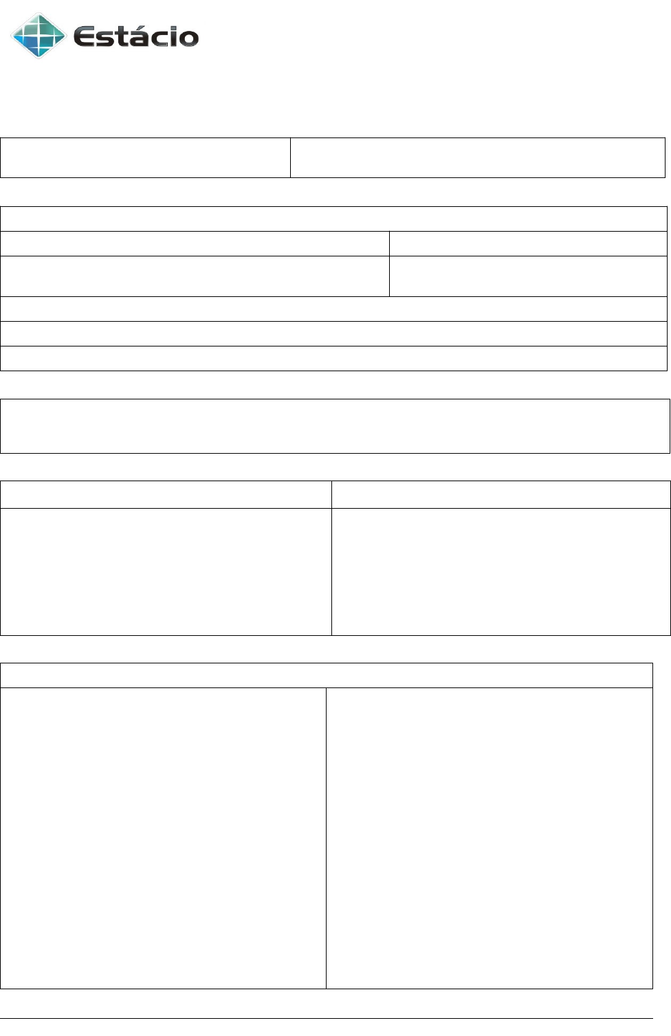 PROJETO DAS ATIVIDADES DE ENSINO, PESQUISA, EXTENSÃO E RESPONSABILIDADE SOCIAL ENTRADA: ASSINATURA: 1. COORDENADOR DA ATIVIDADE: Nome: KARLA CRISTINA ANDRADE FERREIRA e-mail:karlaandrade477@gmail.com Função/Titulação: PROFESSORA MESTRE EM PLANEJAMENTO E POLÍTICAS PÚBLICAS Telefone: (96) 991134650 CAMPUS: ESTÁCIO MACAPÁ Curso: DIREITO Disciplina(s): ASPECTOS ANTROPOLOGICOS E SOCIOLOGICOS 2. TÍTULO DA ATIVIDADE: Análise da Evasão Escolar: Causas, Impactos e Estratégias de Intervenção 3. EIXO: 4. ÁREA TEMÁTICA: ( ) Cidadania ( X ) Científico-Acadêmico ( ) Empregabilidade, Empreendedorismo e Inovação ( ) Sustentabilidade ( ) Comunicação ( ) Vulnerabilidades, Segurança Pública e Direitos humanos (x) Educação ( ) Meio Ambiente ( ) Saúde ( )Tecnologia ( ) Cultura ( ) Outra. Qual? 5. MACROATIVIDADE ( ) Atividades culturais e esportivas na unidade (x) Atividades em instituições de ensino ( ) Evento de cidadania e direitos humanos ( ) Prestação de serviços à comunidade ( )Rolé brasil ( ) Trote solidário ( ) Audiências e júris simulados ( ) Cursos livres ( ) ENADE entrega da prova ( ) ENADE simulados presenciais ( ) Eventos acadêmico-científicos ( ) Iniciação científica ( ) Intercâmbio ( ) Monitoria ( ) Nivelamentos ( ) Núcleos de práticas acadêmicas (X) Oficinas acadêmicas ( ) Palestras presenciais ( ) Projeto boas-vindas ( ) Projetos de extensão universitária ( ) Semanas acadêmicas ( ) Trabalhos extraclasse ( ) Atividades de empreendedorismo e inovação ( ) Atividades de empregabilidade ( ) Auxílio na organização de eventos ( ) Encontro com egressos ( ) Evento de empreendedorismo e inovação ( ) Olimpíadas e concursos ( ) Representante de turma ( ) Startup weekend ( ) Ações ambientais ( ) Evento de sustentabilidade ( ) Oficinas sustentáveis ( ) Projeto Interdisciplinar ( )Doação a comunidade ( ) Interdisciplinar FACULDADE ESTÁCIO DO AMAPÁ COORDENAÇÃO DE EXTENSÃO Rod. Juscelino Kubitscheck, s/n - Jardim Equatorial, Macapá - AP, 68900-002 6. DADOS DO PROJETO: 6.1. Objetivo (no máximo 150 caracteres): Através das nossas propostas de intervenção buscar diminuir a taxa de evasão escolar, sendo através de atrativos na escola, ou incentivos financeiros. 6.2. Justificativa (no máximo 300 caracteres): A proposta de utilização de atrativos na escola ou incentivos financeiros como estratégias de intervenção para reduzir a evasão escolar busca motivar e engajar os estudantes, estimular sua frequência e permanência na escola, e valorizar a importância da educação. 6.3. Metodologia (no máximo 400 caracteres): Estimular os discentes a aprimorarem seus estudos por meio da nossa palestra motivacional. Além disso, informaríamos sobre projetos sociais e cursos gratuitos disponíveis, visando ao desenvolvimento e à especialização dos mesmos. Público Alvo: ( ) Aluno ( ) Colaborador administrativo ( ) Docente ( X ) Externo. Especificar: Alunos que participam do EJA na escola Zolito De Jesus Nunes. Expectativa de público: 50 pessoas Data de início: 09/03/2023 Data de término: 29/06/2023 Carga Horária: Local: SALA 208 Horário: 07:30 7. CRONOGRAMA: Ação Responsável Data Local Questionário com as turmas do EJA de quarto e terceiro período Jaime Perez, Luiza Leite, Lais Peres, Nielson Gabriel 11.04.2023 Escola Estadual Zolito Nunes Oficina de análise dos dados obtidos a partir da pesquisa Todos os participantes do grupo 12.04.2023 Biblioteca da Estácio Palestra com viés motivacional visando mostrar a experiencia educacional dos palestrantes Palestra informativa e demonstrativa acerca de métodos de fomentação curricular Reunião com os docentes, para debater a pesquisa e a implementação do NPJ Implementação do NPJ Reunião do grupo para organização do trabalho a ser apresentado em sala 8. DADOS OPERACIONAIS: ( ) Apoio da Comunicação Institucional ( ) Apoio da Assessoria Institucional ( ) Cadastro no site de Cursos livres Período de Inscrição: Local de realização: Outras necessidades (ex. mesa, cadeira, etc.): 9. DADOS ECONÔMICOS: (X ) Projeto SEM custo operacional ( ) Projeto COM custo operacional 10. RECURSOS MATERIAIS (para atividades com custo operacional, anexar orçamento) Material Quantidade 11.CUSTO DE PESSOAL TIPO QUANTIDADE VALOR ______________________________________ ASSINATURA _______ / _____/ 2022 DATA 12. TRAMITAÇÃO: COORDENAÇÃO DE CURSO ASSINATURA/DATA ( )Recomendo ( )Não Recomendo ( )Ajustes MOTIVO: COORDENAÇÃO DE EXTENSÃO E PESQUISA ASSINATURA/DATA ( )Recomendo ( )Não Recomendo ( )Ajustes MOTIVO: DIRETORIA ACADÊMICA ASSINATURA/DATA ( )Recomendo ( )Não Recomendo ( )Ajustes MOTIVO: DIREÇÃO ADMINISTRATIVA FINANCEIRA ASSINATURA/DATA ( )Recomendo ( )Não Recomendo ( )Ajustes MOTIVO: DIRETOR GERAL ASSINATURA/DATA ( )Recomendo ( )Não Recomendo ( )Ajustes MOTIVO: image1.png