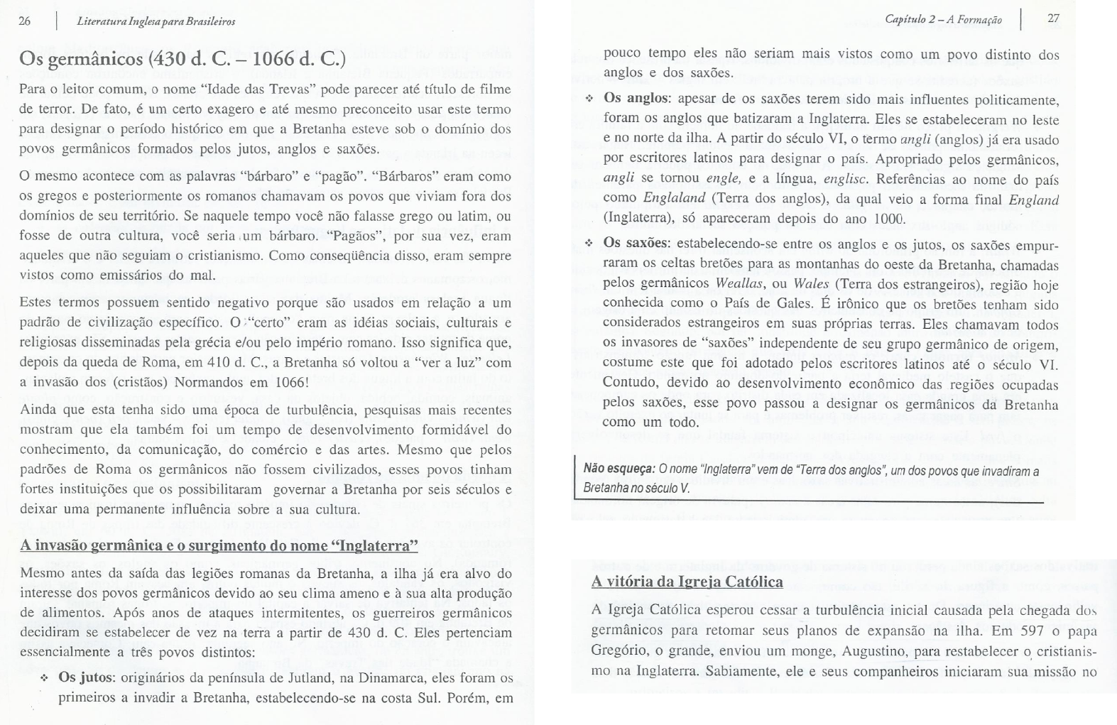 Fonte: SILVA, Alexander Meireles da. Literatura inglesa para brasileiros. Rio de Janeiro: Editora Ciência Moderna, 2006, p. 26- 29.