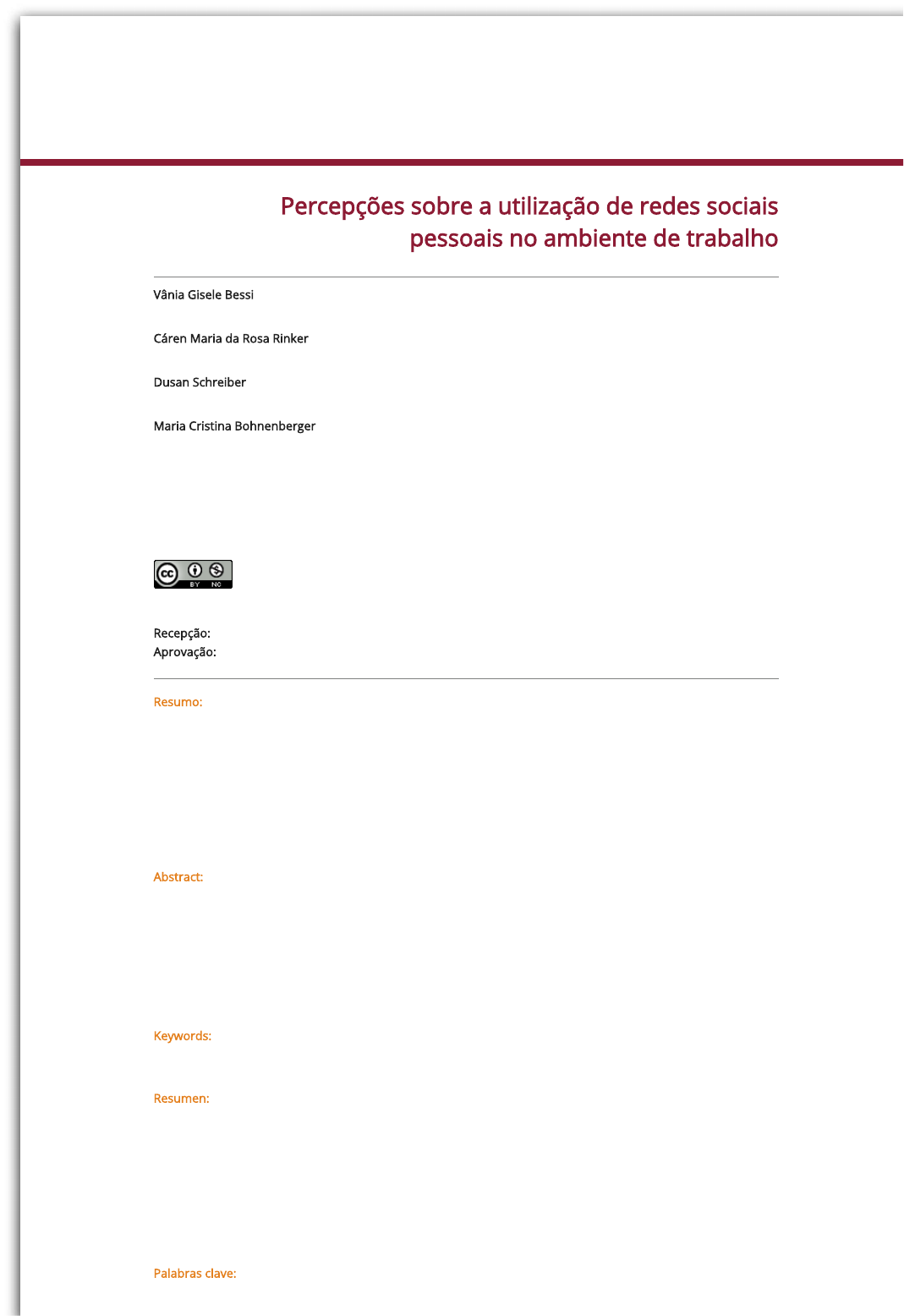 Percepções sobre a utilização de redes sociais pessoais no ambiente de trabalho Vânia Gisele Bessi vania@feevale.br Universidade Feevale, Brasil Cáren Maria da Rosa Rinker carenrinker@feevale.br Universidade Feevale, Brasil Dusan Schreiber dusan@feevale.br Universidade Feevale, Brasil Maria Cristina Bohnenberger cristin@feevale.br Universidade Feevale, Brasil, Brasil Percepções sobre a utilização de redes sociais pessoais no ambiente de trabalho Contextus – Revista Contemporânea de Economia e Gestão, vol. 16, núm. 1, pp. 150-181, 2018 Universidade Federal do Ceará Este trabalho está sob uma Licença Creative Commons Atribuição-NãoComercial 4.0 Internacional. Recepção: 05 Setembro 2017 Aprovação: 11 Abril 2018 Resumo: Nesta pesquisa, verifica-se a percepção de gestores quanto à utilização das redes sociais virtuais por membros de suas equipes, bem como a interferência dessa utilização no ambiente de trabalho, na visão do usuário. O artigo foi elaborado através de uma survey com alunos de uma instituição de ensino superior em Novo Hamburgo/RS. Os dados foram coletados através de questionário estruturado, e a análise ocorreu de forma quantitativa, com a aplicação de testes estatísticos. Os resultados apontam que gestores e usuários compreendem o uso das redes sociais virtuais durante a jornada de trabalho como algo corriqueiro. Acreditam que o acesso desmedido pode interferir no desempenho das equipes. Porém, ambos apresentam a percepção de que o uso das redes sociais virtuais não apresenta reflexos negativos no desempenho do usuário, embora compreendam que as lideranças precisam manter-se atentas aos sinais emitidos pelas equipes. Abstract: In this research, authors seek to analyze the perception of managers regarding the use of virtual social networks by members of their teams, as well as the effect of this use on the work activities from the users’ point of view. The article was prepared based on the results of a survey with the students in a higher education institution in Novo Hamburgo/RS. Data were collected by means of a structured questionnaire and were analyzed quantitatively with the use of statistical tests. The results of this study indicate that both managers and users understand that the use of social networking services at work is usual. They believe that excessive accesses can interfere on the team performance. However, both groups have the perception that using social networking services does not have negative effects on the user’s performance, although they understand that leaders need to be aware of some possible signals from their workers. Keywords: Tecnologias de Informação e Comunicação Redes Sociais. Liderança. Desempenho., Information and communication technologies Social networking service. Leadership. Performance.. Resumen: En esta investigación se identifica la percepción de los administradores con respecto al uso de las redes sociales virtuales por miembros de sus equipos, así como el efecto de dicho uso en el escritorio, desde el punto de vista del usuario. El artículo fue elaborado a través de un levantamiento con los estudiantes en una institución de educación superior en Novo Hamburgo/RS. Los datos fueron recolectados por medio de un cuestionario estructurado, y el análisis fue cuantitativo, con la aplicación de pruebas estadísticas. Los resultados de este estudio indican que los administradores y los usuarios entienden el uso de las redes sociales virtuales durante las horas de trabajo como un lugar común, pero creen que el acceso excesivo puede interferir con el funcionamiento de los equipos. Sin embargo, ambos grupos tienen la percepción de que el uso de las redes sociales virtuales no tiene un impacto negativo en el rendimiento del usuario, aunque entiendan que los líderes tienen que estar alerta a las señales de sus equipos. Palabras clave: Tecnologías de la información y comunicación Redes sociales. Liderazgo. Rendimiento.. 24/09/24, 14:26 Percepções sobre a utilização de redes sociais pessoais no ambiente de trabalho https://www.redalyc.org/journal/5707/570761050007/html/ 1/16 https://creativecommons.org/licenses/by-nc/4.0/ https://creativecommons.org/licenses/by-nc/4.0/ https://creativecommons.org/licenses/by-nc/4.0/ PERCEPÇÕES SOBRE A UTILIZAÇÃO DE REDES SOCIAIS PESSOAIS NO AMBIENTE DE TRABALHO PERCEPTIONS ON THE USE OF PERSONAL SOCIAL NETWORKS IN THE WORK ENVIRONMENT PERCEPCIONES SOBRE LA UTILIZACIÓN DE REDES SOCIALES PERSONALES EN EL MEDIO AMBIENTE DE TRABAJO RESUMO Nesta pesquisa, verifica-se a percepção de gestores quanto à utilização das redes sociais virtuais por membros de suas equipes, bem como a interferência dessa utilização no ambiente de trabalho, na visão do usuário. O artigo foi elaborado através de uma survey com alunos de uma instituição de ensino superior em Novo Hamburgo/RS. Os dados foram coletados através de questionário estruturado, e a análise ocorreu de forma quantitativa, com a aplicação de testes estatísticos. Os resultados apontam que gestores e usuários compreendem o uso das redes sociais virtuais durante a jornada de trabalho como algo corriqueiro. Acreditam que o acesso desmedido pode interferir no desempenho das equipes. Porém, ambos apresentam a percepção de que o uso das redes sociais virtuais não apresenta reflexos negativos no desempenho do usuário, embora compreendam que as lideranças precisam manter-se atentas aos sinais emitidos pelas equipes. Palavras-chave: Tecnologias de Informação e Comunicação. Redes Sociais. Liderança. Desempenho. ABSTRACT In this research, authors seek to analyze the perception of managers regarding the use of virtual social networks by members of their teams, as well as the effect of this use on the work activities from the users’ point of view. The article was prepared based on the results of a survey with the students in a higher education institution in Novo Hamburgo/RS.