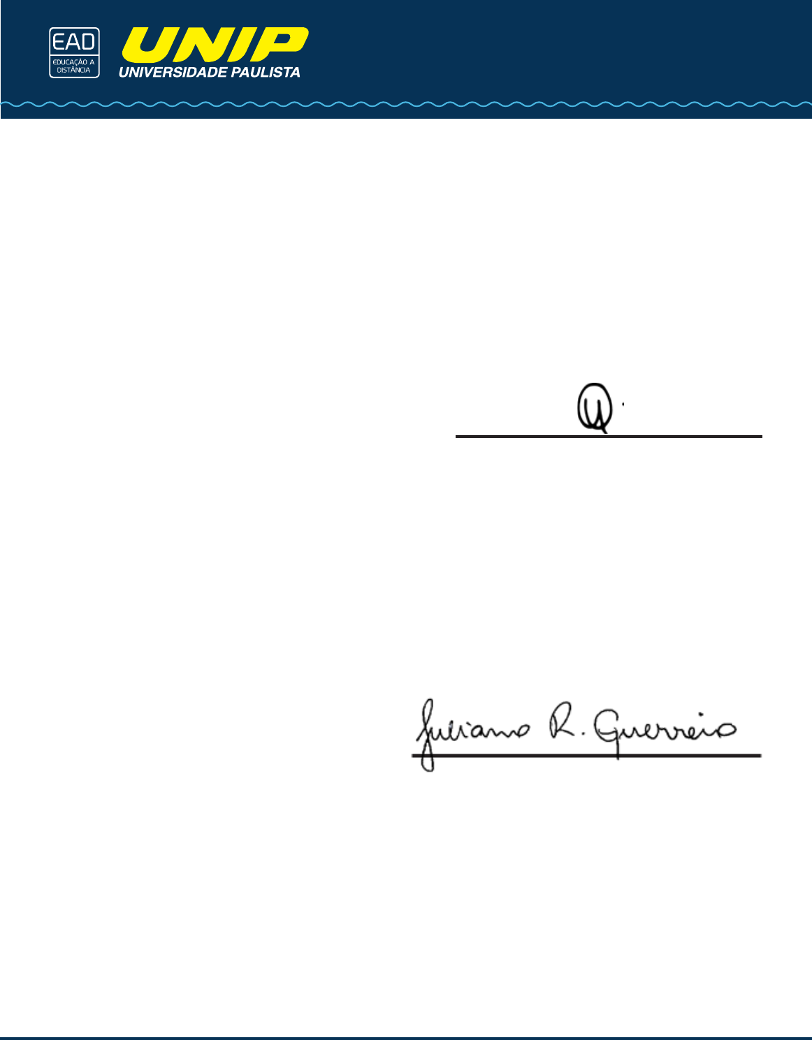 Serviço Social ESTÁGIO DE ALUNO – CARTA DE CREDENCIAMENTO Ao(À) Senhor(a): A. Credenciamento O(A) aluno(a) abaixo designado(a) está credenciado(a) por esta Universidade a solicitar, nesta Unidade, a devida autorização para a realização de estágio, conforme determina a LDBEN 9.394/96, declarando submeter-se a todas as determinações legais. Apólice de Seguro Porto Seguro CIA de Seguros Gerais. São Paulo, de de 20 . Profa. Ma. Lucy Ferreira de Almeida Coordenadora de Estágios Bacharelado B. Dados referentes ao(à) aluno(a) estagiário(a) O(A) aluno(a): , RA: RG nº , regularmente matriculado (a) no curso de , semestre, deverá realizar estágio em: Área de conhecimento: Total de horas: Professor(a) orientador(a): Polo: Prof. Dr. Juliano Rodrigo Guerreiro Coordenador Auxiliar do Curso C. Estabelecimento de opção Nome: Endereço: Nome do Diretor: D. Autorização Autorizo o estágio solicitado , de de 20 . Universidade Paulista – UNIP . Texto5: TextoA: TextoVB: TextoC: TextoD: TextoE: TextoF: TextoG: TextoH: TextoI: TextoJ: TextJ: TextoK: TextoL: TextM: TextN: TextoO: TextoP: TextoQ: TextT: TextoR: TextoS: