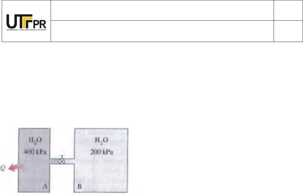 Página 1 de 4 UNIVERSIDADE TECNOLÓGICA FEDERAL DO PARANÁ CAMPUS PONTA GROSSA Engenharia Química Disciplina: Termodinâmica Lista 2 (1° lei para sist fechados e abertos - até turbinas) ) 1) Dois tanques rígidos são conectados por uma válvula. O tanque A contém 0,2m³ de água a 400kPa e título de 80%. O tanque B contém 0,5m³ de água a 200kPa e 250ºC. A válvula então é aberta e os dois tanques chegam ao mesmo estado, atingindo o equilíbrio térmico com a vizinhança a 25ºC. Determine a pressão final, a quantidade de calor transferido e caracterize o estado final. Resp. 3,2kPa, -2390,7kJ 2) Um tanque rígido tem volume de 1m3 e contém 2Kg de água a 100°C. O tanque é aquecido. Se uma válvula de segurança de pressão for instalada, em qual pressão a válvula deve ser acionada para que a água atinja no máximo 200°C? Qual a quantidade de calor envolvida? Faça o diagrama Tv, mostrando o caminho percorrido pelo processo e P1, T1, v1, P2, T2, v2. 3) Um recipiente não condutor, que contém 25kg de água comprimida a 20°C, possui um agitador girado pela gravidade ao agir sobre um peso de massa igual a 35kg (como no experimento de Joule). O peso desce vagarosamente uma distância de 5m acionando o agitador. Admitindo que todo o trabalho realizado sobre o peso é transferido para a água e que a aceleração da gravidade local é de 9,8m/s². Calcule: a. A quantidade de trabalho realizado sobre a água; b. A variação na energia interna da água; c. Temperatura final da água que possui Cp=4,18 kJ/Kg °C. Dica: para calcular a temperatura final observe a unidade de Cp da água. d. Quantidade de calor que deve ser removida da água para retorná-la à sua temperatura inicial. R: 1715J; 1715J; 20,016°C; -1715J Página 2 de 4 4) Um sistema consiste em um gás confinado por um pistão. No diagrama PV abaixo, os pontos A, B e C representam os estados do gás e as linhas representam os processos que o gás sofre. O sistema sofre uma mudança de estado de A para B ao longo do caminho ACB. O processo AC, que ocorre a pressão constante, recebe 50J de trabalho e libera 25 J na forma de calor para o ambiente. No processo CB, que ocorre a volume constante, o sistema recebe 75 J na forma de calor. Para retornar ao estado A o sistema sofre um processo adiabático representado pela curva BA. Quanto trabalho é trocado com o meio ao longo do processo BA? 5) Um cilindro/embolo contém 50kg de água a 200kPa com um volume de 0,1m³. Os batentes nos cilindros são colocados para restringir o volume para um valor máximo de 0,5m³. A água é aquecida até o pistão alcançar os batentes. Encontre a transferência de calor necessária. Faça o diagrama Tv, mostrando o caminho percorrido pelo processo e P1, T1, v1, P2, T2, v2. R: 995 KJ 6) Se 0,1 kg de hélio inicialmente está a 235K, sob pressão de 100kPa, e é comprimido adiabaticamente e reversivelmente até a pressão de 700kPa. Calcule: a) Temperatura final; 511,81K b) ΔU para o processo; 86,25kJ c) ΔH para o processo; 143,75kJ d) W para o processo. 86,25kJ Página 3 de 4 7) Um mol de gás ideal, inicialmente a 150°C e 8 bar, sofre as seguintes modificações mecanicamente reversíveis: expande isotermicamente até uma pressão que, quando é resfriado a volume constante até 50°C, sua pressão é de 3 bar. Calcule Q, W, ΔU e ΔH. Considere cp=(7/2)R e cv=(5/2)R. Q=438,52J; W = -2516,7J; ΔU= -2078,5J e ΔH = -2909,9J 8) Um arranjo pistão-cilindro isolado contém 5 L de água líquida saturada à pressão constante de 175 kPa. A água é agitada por uma roda de pás enquanto uma corrente de 8 A (ampères), flui durante 45 min por um resistor colocado na água. Se metade do líquido evaporar durante esse processo à pressão constante e o trabalho da roda de pás for 400 kJ, determine a voltagem da fonte. Mostre também o processo em um diagrama P-V que inclua as linhas de saturação. R: 224 V. 9) A vazão em massa que alimenta uma turbina a vapor d’água é 1,5 kg/s e o calor transferido da turbina é 8,5 kW. São conhecidos os seguintes dados para o vapor d’água que entra e sai da turbina: Condições de entrada Condições de saída Pressão 2,0 MPa 0,1 Mpa Temperatura 350ºC Título 100% Velocidade 50 m/s 100 m/s Cota em relação ao plano de referência 6 m 3 m g = 9,8066 m/s² Determine a potência fornecida pela turbina. R: - 678,2 kW 10) Uma turbina é alimentada com 100 kg/s de vapor d’água a 15 MPa e 600ºC. Num estágio intermediário, onde P = 2 MPa e T = 350ºC, é realizado uma extração de 20 kg/s. Na seção final de descarga, a pressão e o título são, respectivamente, iguais a 75 kPa e 95%. Admitindo que a turbina Página 4 de 4 seja adiabática e que as variações de energia cinética e potencial sejam desprezíveis, determine a potência da turbina. R:-91563kW 11) A cogeração é normalmente utilizada em processos industriais que apresentam consumo de vapor d’água a várias pressões. Admita que, num processo, existe a necessidade de uma vazão de 5 kg/s de vapor a 0,5 MPa. Em vez de gerar este insumo, utilizando um conjunto bomba-caldeira independente, propõe-se a utilização da turbina mostrada na figura abaixo. Determine a potência gerada nesta turbina. R:-18,1MW