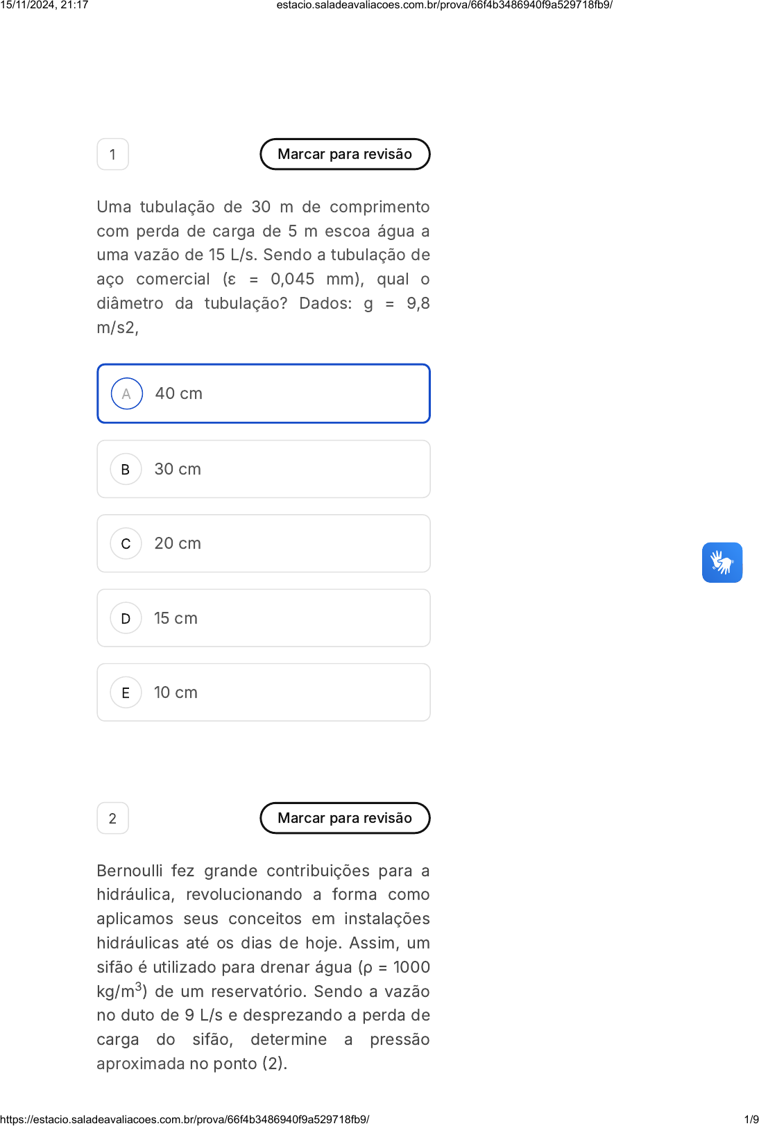 https://estacio.saladeavaliacoes.com.br/prova/66f4b3486940f9a529718fb9/ 2/9