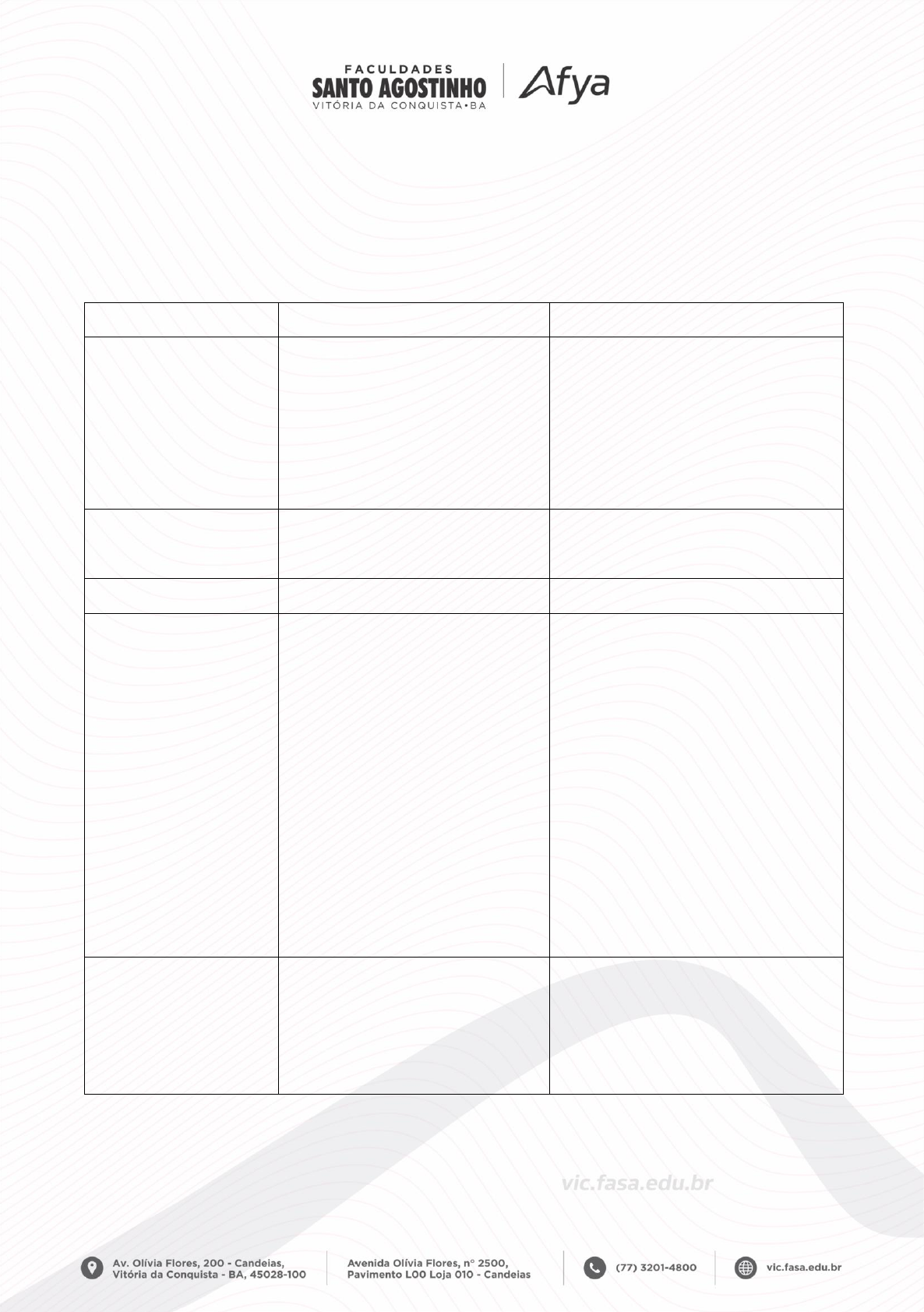 Página 1 de 1 Nome: Natália Alves de Alencar Matrícula: 2550903 Período/Semestre: 1º período Docente responsável: Rosângela Souza Lessa Componente: Tecnologias de Informação e Comunicação (TIC’s) MÚSCULO ESQUELÉTICO X MÚSCULO CARDÍACO - 04 Características Músculo Esquelético Músculo Cardíaco Aspecto da Célula e Características Fibras cilíndricas grandes, muito longas, não ramificadas com estriações transversais dispostas em feixes paralelos, múltiplos núcleos periféricos. Fibras curtas que se ramificam e anastomosam, estriações transversas paralelas e conexão terminoterminal pelos discos intercalados), núcleo único e central. Localização Fixado primariamente nos ossos por meio dos tendões. Coração e partes adjacentes dos grandes vasos. Proteínas Reguladoras Troponina e Tropomiosina. Troponina e Tropomiosina. Tipo de Atividade Contração intermitente, acima de um tônus basal; principal ação é produzir movimento (contração isotônica) por meio do encurtamento (contração concêntrica) ou do relaxamento controlado (contração excêntrica), ou manter a posição contra a gravidade (contração isométrica). Contração rítmica continua rápida, forte; bombeia o sangue do coração. Tipo de Estimulação Voluntária (reflexa) pela divisão somática do sistema nervoso. Involuntária (miogênicas), velocidade e força de contração são modificadas pela divisão autônoma do sistema nervoso. Referências Bibliográficas MOORE, K.L. Anatomia orientada para a clínica. 7. ed. Rio de Janeiro: Koogan, 2014.