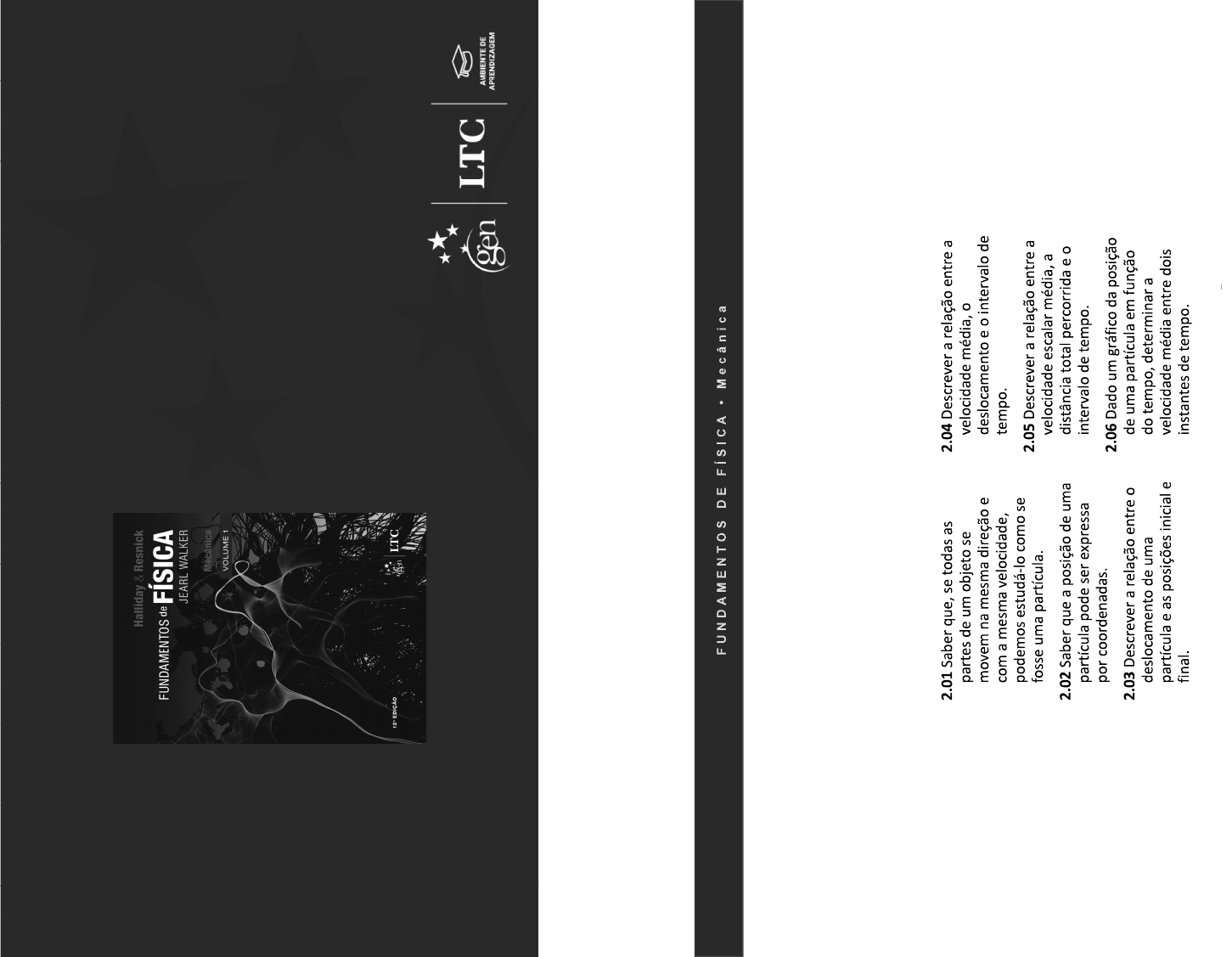W W W . G R U P O G E N . C O M . B R H a lli da y & R es ni ck F U N D A M E N T O S D E F ÍS IC A M ec â ni ca V O L U M E 1 C A P Í T U L O 2 M o vi m en to R et ilí n e o C o p yr ig h t @ L T C L iv ro s T é c n ic o s e C ie n tí fi c o s E d it o ra L td a . R e p ro d u ç ã o P ro ib id a . 2 -1 P o si çã o , D es lo ca m en to e V e lo ci d a d e M é d ia O b je ti vo s d o A p re n d iz a d o C o p yr ig h t @ L T C L iv ro s T é c n ic o s e C ie n tí fi c o s E d it o ra L td a . R e p ro d u ç ã o P ro ib id a . C o p yr ig h t @ L T C L iv ro s T é c n ic o s e C ie n tí fi c o s E d it o ra L td a . R e p ro d u ç ã o P ro ib id a . F ig u ra 2- 1 C o p yr ig h t @ L T C L iv ro s T é c n ic o s e C ie n tí fi c o s E d it o ra L td a . R e p ro d u ç ã o P ro ib id a . E q. ( 2- 2) A v el o ci d a d e m éd ia é m ed id a e m u ni d a d e s d e d is tâ n ci a/ te m p o m e tr os p o r se g un do (m /s ) C o p yr ig h t @ L T C L iv ro s T é c n ic o s e C ie n tí fi c o s E d it o ra L td a . R e p ro d u ç ã o P ro ib id a . F ig u ra 2- 4 C o p yr ig h t @ L T C L iv ro s T é c n ic o s e C ie n tí fi c o s E d it o ra L td a . R e p ro d u ç ã o P ro ib id a . A v e lo ci d a d e e sc a la r m é d ia é s e m p re p o si tiv a E xe m p lo U m a p a rt íc ul a se m ov e d o p o nt o x = 3 m a o p o nt o x = 3 m e m 2 s e gu n d o s. V el oc id ad e m é di a: = 3 m /s ; v el oc id ad e es ca la r m é di a: 3 m /s E q. ( 2- 3) C o p yr ig h t @ L T C L iv ro s T é c n ic o s e C ie n tí fi c o s E d it o ra L td a . R e p ro d u ç ã o P ro ib id a . 2- 2 V e lo c id ad e In st a n tâ n ea e V e lo ci d ad e E sc al ar O b je ti vo s d o A p re n d iz a d o C o p yr ig h t @ L T C L iv ro s T é c n ic o s e C ie n tí fi c o s E d it o ra L td a . R e p ro d u ç ã o P ro ib id a . E q. ( 2 -4 ) C o p yr ig h t @ L T C L iv ro s T é c n ic o s e C ie n tí fi c o s E d it o ra L td a . R e p ro d u ç ã o P ro ib id a . R es p os ta s: (a ) N os ca so s 1 e 4 (b ) N os ca so s 2 e 3 C o p yr ig h t @ L T C L iv ro s T é c n ic o s e C ie n tí fi c o s E d it o ra L td a . R e p ro d u ç ã o P ro ib id a . E xe m p lo F ig u ra 2- 6 C o p yr ig h t @ L T C L iv ro s T é c n ic o s e C ie n tí fi c o s E d it o ra L td a . R e p ro d u ç ã o P ro ib id a . 2 -3 A c el e ra ç ão O b je ti vo s d o A p re n d iz a d o C o p yr ig h t @ L T C L iv ro s T é c n ic o s e C ie n tí fi c o s E d it o ra L td a . R e p ro d u ç ã o P ro ib id a . E q. ( 2- 7) E q. ( 2- 8) A c e le ra ç ã o i n s ta n tâ n ea o u si m p le sm e nt e a c el e ra ç ã o , a , é a in cl in aç ão d a cu rv a da v el oc id a de e m fu n çã o do t em po e m um d a d o in st an te C o p yr ig h t @ L T C L iv ro s T é c n ic o s e C ie n tí fi c o s E d it o ra L td a . R e p ro d u ç ã o P ro ib id a . E q . ( 2 -9 ) A a ce le ra çã o é u m a g ra n d ez a ve to ri a l: O s in a lp o si tiv o in d ic a um a ac e le ra çã o do s en tid o po si tiv o do e ix o do s is te m a de c oo rd en ad as O s in a ln e ga tiv o in di ca u m a ac e le ra çã o no s en tid o ne ga tiv o do e ix o do s is te m a de c oo rd en ad as C o p yr ig h t @ L T C L iv ro s T é c n ic o s e C ie n tí fi c o s E d it o ra L td a . R e p ro d u ç ã o P ro ib id a . E q. ( 2- 10 ) E xe m p lo S e u m c ar ro c o m u m a ve lo ci d a de v = 2 5 m /s fr e ia a té p a ra r e m 5 ,0 s , a = + 5 ,0 m /s 2 . A ce le ra çã o é p os iti va , m as a v e lo ci da d e d im in ui . R es p os ta s: ( a) + (b ) (c ) (d ) + C o p yr ig h t @ L T C L iv ro s T é c n ic o s e C ie n tí fi c o s E d it o ra L td a . R e p ro d u ç ã o P ro ib id a . E xe m p lo F ig u ra 2 -6 C o p yr ig h t @ L T C L iv ro s T é c n ic o s e C ie n tí fi c o s E d it o ra L td a . R e p ro d u ç ã o P ro ib id a . 2 -4 A c el er a ç ão C o n s ta n te O b je ti vo s d o A p re n d iz a d o C o p yr ig h t @ L T C L iv ro s T é c n ic o s e C ie n tí fi c o s E d it o ra L td a . R e p ro d u ç ã o P ro ib id a . F ig u ra 2 -9 C o p yr ig h t @ L T C L iv ro s T é c n ic o s e C ie n tí fi c o s E d it o ra L td a . R e p ro d u ç ã o P ro ib id a . E q . ( 2- 1 8 ) E q . ( 2 -1 7 ) E q . ( 2 -1 6 ) C o p yr ig h t @ L T C L iv ro s T é c n ic o s e C ie n tí fi c o s E d it o ra L td a . R e p ro d u ç ã o P ro ib id a . R es p os ta : N os ca so s 1 (a = 0 ) e 4. C o p yr ig h t @ L T C L iv ro s T é c n ic o s e C ie n tí fi c o s E d it o ra L td a . R e p ro d u ç ã o P ro ib id a . 2- 5 A c el er a ç ão e m Q u ed a L iv re O b je ti vo s d o A p re n d iz a d o F ig u ra 2- 1 2 C o p yr ig h t @ L T C L iv ro s T é c n ic o s e C ie n tí fi c o s E d it o ra L td a . R e p ro d u ç ã o P ro ib id a . C o p yr ig h t @ L T C L iv ro s T é c n ic o s e C ie n tí fi c o s E d it o ra L td a . R e p ro d u ç ã o P ro ib id a . R es p os ta s: (a ) O s in a lé p os iti vo . ( b) O s in al é ne g at iv o. ( c) A a ce le ra çã o é 9, 8 m /s 2 em to do s o s po nt os da tr aj et ór ia C o p yr ig h t @ L T C L iv ro s T é c n ic o s e C ie n tí fi c o s E d it o ra L td a . R e p ro d u ç ã o P ro ib id a . 2 -6 In te g ra ç ão G rá fi c a n a A n á lis e d e M o vi m e n to s O b je ti vo s d o A p re n d iz a d o C o p yr ig h t @ L T C L iv ro s T é c n ic o s e C ie n tí fi c o s E d it o ra L td a . R e p ro d u ç ã o P ro ib id a . A in te gr a l d e fin id a d o la d o d ire ito p o de s e r ca lc ul a d a a p ar tir d e u m g rá fic o : E q. ( 2 -2 7) E q. ( 2- 28 ) C o p yr ig h t @ L T C L iv ro s T é c n ic o s e C ie n tí fi c o s E d it o ra L td a . R e p ro d u ç ã o P ro ib id a . A in te gr a l d e fin id a d o la d o d ire ito p o de s e r ca lc ul a d a a p ar tir d e u m g rá fic o : E q. ( 2- 29 ) E q. ( 2 -3 0) C o p yr ig h t @ L T C L iv ro s T é c n ic o s e C ie n tí fi c o s E d it o ra L td a .