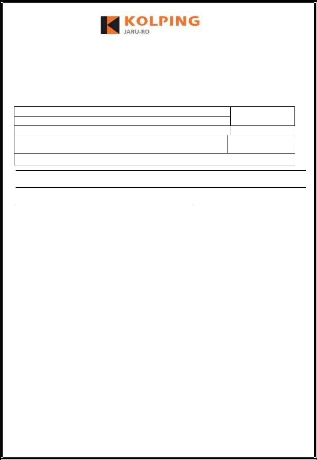 COMUNIDADE KOLPING DE JARU/RO CNPJ: 63.789.358/0001-65 ESCOLA DE EDUCAÇÃO INFANTIL E ENSINO FUNDAMENTAL PADRE ADOLFO KOLPING Parecer nº. 071/17-CEE/RO/CEB – 30/10/2017, Resolução nº. 065/16/-CEE/RO AVALIAÇÃO BIMESTRAL DE GEOGRAFIA SÉRIE: 6º Ano Turma: “____” Nota: DISCIPLINA: Geografia Regional PROFESSOR (A): Aparecida Conceição de Moura Souza Valor: 7,0 3º BIMESTRE/2024 DATA: ____/___/____ ALUNO (A): Instruções: 1. Identifique sua folha 2. Responda à caneta 3. Não faça rasuras e nem borrões 4. Escreva de forma legível Tenha uma ótima prova! Leia com atenção e responda a caneta azul ou preta 1) Engenheiro que projetou o palácio Getúlio Vargas: a) ( ) Leogrin de Vasconcelos Chaves. b) ( ) Jorge Teixeira de Oliveira. b) ( ) Marechal Cândido Rondon. 2) Museu criado em 1998, chamado da Imagem e do Som, se localiza em: a) ( ) Cacoal. b) ( ) Vilhena. b) ( ) Ji-Paraná. 3) Cite alguns monumentos históricos de Rondônia: ______________________________________________________________________________________________________________________________________________________________________________________________________ 4) Quem foi o Padre responsável pela coordenação da restauração da Catedral Sagrado Coração de Jesus nos anos 2000? ______________________________________________________________________________________________________________________________________________________________________________________________________ 5) Quais foram as principais nações indígenas de Rondônia? ______________________________________________________________________________________________________________________________________________________________________________________________________ 6) Qual povo indígena criou o 1º museu da cultura indígena em Rondônia: ____________________________________________________________________________________________________________________________________ 7) A 128 anos é realizada uma tradição cultural que é a festa do Divino, onde? a) ( ) Amazonas e Pará; b) ( ) No vale do Guaporé; c) ( ) Amazonas e Tocantins; 8) Cite uma contribuição da culinária boliviana para com o Estado de Rondônia: ____________________________________________________________________________________________________________________________________ 9) O Estado de Rondônia teve sua formação originária: a) ( ) Do contato entre nações indígenas e o colonizador europeu e do negro. b) ( ) Do contato entre nações asiáticas e o colonizador europeu e do negro.. b) ( ) Do contato entre nações oceânicas e o colonizador europeu e do negro. 10) Cite um líder que comandava os quilombos em Rondônia: ______________________________________________________________________________________________________________________________________________________________________________________________________ image1.jpeg