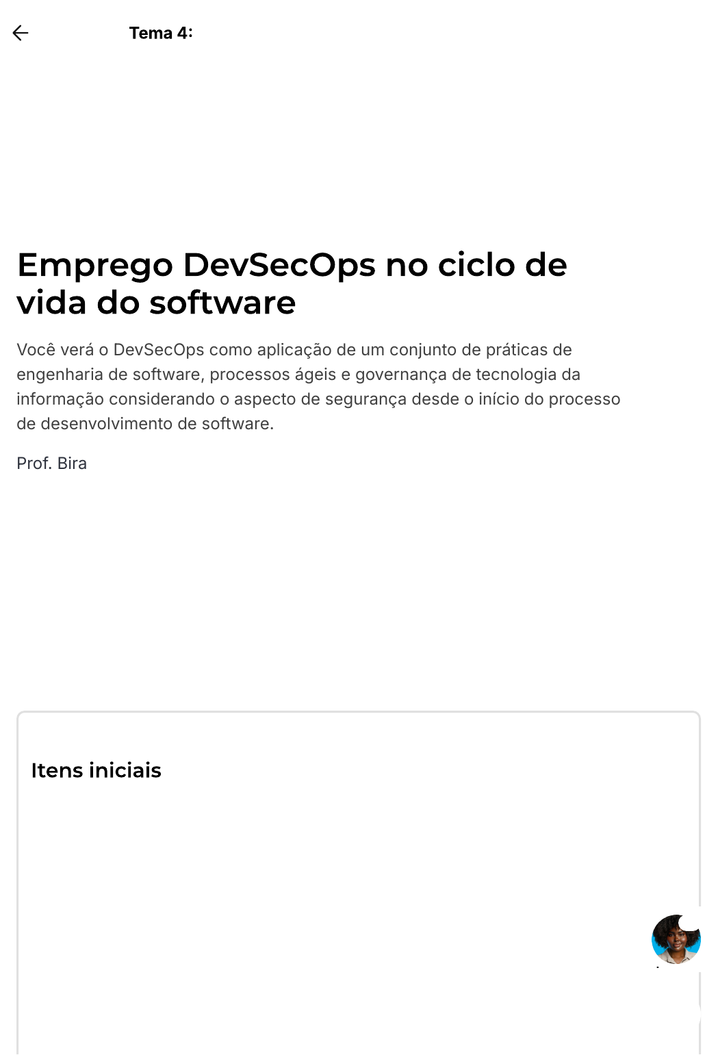 Cursando: Olá THIAGO MOURA Prof. Bira Você verá o DevSecOps como aplicação de um conjunto de práticas de engenharia de software, processos ágeis e governança de tecnologia da informação considerando o aspecto de segurança desde o início do processo de desenvolvimento de software. Propósito DevSecOps tem o propósito de garantir o desenvolvimento de produtos de software com o mais alto nível de qualidade e segurança possível, permitindo assim a fluidez de entrega de valor e ritmo de inovação. Velocidade requer organização, segurança e confiança entre as pessoas, para que esse fluxo contínuo de valor entregue seja atingido. Objetivos Voltar para disciplina Emprego Devsecops no Ciclo de Vida do Software Visualizado IA Sala de Aula | Estacio https://estudante.estacio.br/disciplinas/estacio_13092978/... 1 of 1 16/11/2024, 20:33