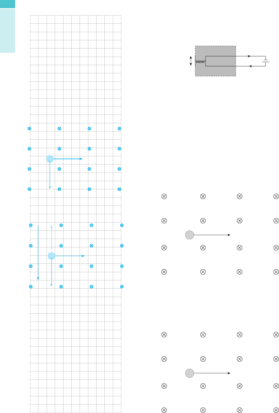 172 4. (Unesp) Parte de uma espira condutora está imersa em um campo magnético constante e uniforme, perpendicular ao plano que a contém. Uma das extremi- dades de uma mola de constante elástica k 5 2,5 N/m está presa a um apoio ex- terno isolado e a outra a um lado dessa espira, que mede 10 cm de comprimento. 10 cm i 5 0,50 A B ___› Inicialmente não há corrente na espira e a mola não está distendida nem com- primida. Quando uma corrente elétrica de intensidade i 5 0,50 A percorre a es- pira, no sentido horário, ela se move e desloca de 1,0 cm a extremidade móvel da mola para a direita. Determine o módulo e o sentido do campo magnético. 5. (UFPR) Uma experiência interessante, que permite determinar a velocidade ____ › v com que partículas elementares se movem, consiste em utilizar um cam- po magnético ____ › B em combinação com um campo elétrico ____ › E . Uma partícula elementar com carga Q negativa move-se com velocidade ____ › v paralelamente ao plano do papel (referencial inercial) e entra em uma região onde há um campo magnético ____ › B uniforme, constante e orientado para dentro do plano do papel, como mostra a figura. Ao se deslocar na região do campo magnético, a partícula fica sujeita a uma força magnética ______ › FM . a) Obtenha uma expressão literal para o módulo de ______ › FM e represente na figura o vetor ______ › FM para a posição indicada da partícula. Q B v ___› ___› b) Dispõe-se de um sistema que pode gerar um campo elétrico ____ › E uniforme, constante e paralelo ao plano do papel, que produz uma força elétrica ______ › FE sobre a partícula. Represente na figura o vetor ____ › E necessário para que a partícula de carga Q mova-se em movimento retilíneo uniforme. Em se- guida, obtenha uma expressão literal para o módulo da velocidade ____ › v da partícula quando ela executa esse movimento, em função das grandezas apresentadas no enunciado. Q B v ___› ___› 4. Gabarito B 5 0,50 T, cujo sentido é saindo do plano do papel. A espira sofre ação de uma força magnética para a direita, pela regra da mão esquerda, o campo de indução magnéti- ca ____ › B deve ter seu sentido para fora do plano do papel. Pela situação de equilíbrio temos: F E 5 F M t F E 5 k ? x F M 5 B ? i ? l ? sen 90° k ? x 5 B ? i ? l ? sen 90° 2,5 ? 1 ? 1 0 22 5 B ? 0,5 ? 10 ? 1 0 22 ? 1 B 5 0,50 T 5. Alternativa a) F M 5 B ? u q u ? v, b) v 5 E __ B a. F M 5 B ? u q u ? v ? sen 90° ä F M 5 B ? u q u ? v Utilizando-se a regra da mão esquerda encontramos a força, lembrando-se que a carga é negativa, então o sentido encontrado pela regra deve ser invertido. Q v ___› B ___› FM b. Para que a partícula se mova com movimento retilíneo a força elétrica, devido à presença do campo, deve ter senti- do oposto à força magnética. Lembrando que Q , 0, o campo elétrico deve ter sentido oposto ao da força elétrica: Q v ___› B ___› FM FE Campo Elétrico (E) Igualando-se as forças magnética e elétrica, encontra- mos a expressão para velocidade: F M 5 F E ä B ? u q u ? v 5 E ? u q u ä B ? v 5 E ä v 5 E __ B TCF_VU_LA_CADERNO_REVISAO_168A175.indd 172 27/02/14 14:24
