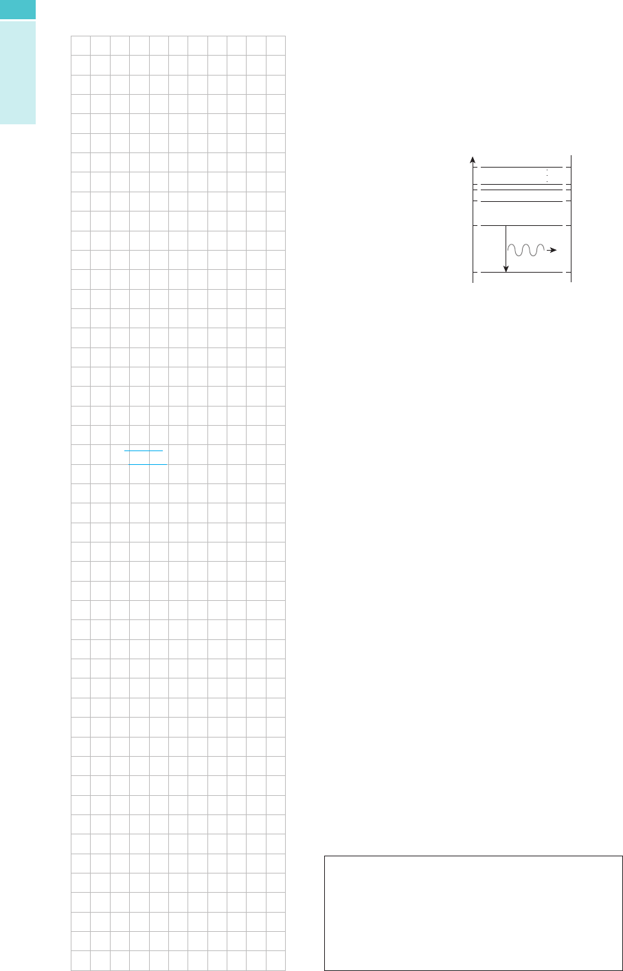 180 10. (UFJF-MG) De acordo com o modelo de Bohr, as energias possíveis dos esta- dos que o elétron pode ocupar no átomo de hidrogênio são, aproximadamen- te, dadas por En 5 2E0/n2, em que E0 5 13,6 eV e n 5 1, 2, 3, 4, ... . O elétron faz uma transição do estado excitado n 5 2 para o estado fundamental n 5 1. Admitindo que a massa do átomo de hidrogênio é igual à massa do próton MP 5 1,6 3 10227kg, faça o que se pede nos itens seguintes. 5 4 3 2 1E1 E2 E3 N ív ei s de E ne rg ia N úm ero Q uântico n fóton E4 E5 EÜ a) Calcule a energia E, em elétron-volts, do fóton emitido. b) Sabendo que a quantidade de movimento (momento linear) do fóton emi- tido é dada por Q 5 E __ c considerando que a quantidade de movimento do sistema se conserva, qual é a velocidade v de recuo do átomo? 11. (UFJF-MG) Um feixe de luz laser, de comprimento de onda † 5 400 nm 5 5 400 3 1029m, tem intensidade luminosa l 5 100 W/m2. De acordo com o modelo corpuscular da radiação, proposto por Einstein, em 1905, para ex- plicar fenômenos da interação da radiação com a matéria, a luz é formada por quanta de energias denominados fótons. Usando como base esse modelo quântico da luz, calcule: a) a energia de cada fóton do feixe de luz laser; b) a energia que incide sobre uma área de 1 cm2 perpendicular ao feixe duran- te um intervalo de tempo de 1,0 s; c) o número n de fótons que atingem essa área durante esse intervalo de tempo. 12. (UFPE) Quando um feixe de luz de comprimento de onda 4,0 3 1027 m (Efóton 5 5 3,0 eV) incide sobre a superfície de um metal, os fotoelétrons mais ener- géticos têm energia cinética igual a 2,0 eV. Suponha que o comprimento de onda dos fótons incidentes seja reduzido à metade. Qual será a energia ciné- tica máxima dos fotoelétrons, em eV? 13. (Fuvest-SP) Em um laboratório de Física, estudantes fazem um experimento em que radiação eletromagnética de comprimento de onda † 5 300 nm incide em uma placa de sódio, provocando a emissão de elétrons. Os elétrons escapam da placa de sódio com energia cinética máxima EC 5 E 2 W, sendo E a energia de um fóton da radiação e W a energia mínima necessária para extrair um elétron da placa. A energia de cada fóton é E 5 h ? f, sendo h a constante de Planck e f a frequência da radiação. Determine: a) a frequência f da radiação incidente na placa de sódio; b) a energia E de um fóton dessa radiação; c) a energia cinética máxima Ec de um elétron que escapa da placa de sódio; d) a frequência f0 da radiação eletromagnética, abaixo da qual é impossível haver emissão de elétrons da placa de sódio. Note e adote Velocidade da radiação eletromagnética: c 5 3 ? 108 m/s 1 nm 5 1029 m h 5 4 ? 10215 eV ? s W (sódio) 5 2,3 eV 1 eV 5 1,6 ? 10219 J 10. Gabarito a. E 5 10,2 eV, b. V átomo 5 3,4 m/s a. A diferença de energia entre as órbitas do elétron é igual à do fóton emitido, logo, pela equação fornecida: E 5 E 0 ___ 1 2 2 E 0 ___ 2 2 5 13,6 2 13,6 _____ 4 5 10,2 eV b. A quantidade de movimento do átomo terá o mesmo valor e sentido contrário ao da quantidade de movimento do fóton: M átomo ? V átomo 5 E __ C Æ V átomo 5 E ______ M átomo 5 5 1,632 ? 1 0 218 ____________________ 1,6 ? 1 0 227 ? 3 ? 1 0 8 5 3,4 m/s E 5 10,2 eV 5 16,32 ∙ 1 0 219 J Supondo o átomo em repouso antes da emissão do fóton: Q 5 0 Æ Q elétron 1 Q átomo 5 0 11. Gabarito a. E 5 4,97 ? 1 0 219 J, b. E incidente 5 1 ? 1 0 22 J, c. n 5 2,01 ? 1 0 16 fótons a. A frequência da onda pode ser calculada pe- la equação fundamental da ondulatória: v 5 † ? f Æ 3 ? 1 0 8 5 400 ? 1 0 29 ? f Æ Æ f 5 7,5 ? 1 0 14 Hz A energia carregada por cada fóton pode ser calculada: E 5 h ? f Æ E 5 6,63 ? 1 0 234 ? 7,5 ? 1 0 14 Æ Æ E 5 4,97 ? 1 0 219 J b. A área determinada pelo enunciado é igual a 1 c m 2 , o equivalente a 1 ? 1024 m, assim tere- mos que a energia incidente em um segundo por metro quadrado: E 5 P ? Dt Æ E 5 100 ? 1 Æ E 5 100 J/ m 2 100 J 1 m 2 E Incidente 1 ? 1 0 24 m 2 Æ E 5 1 ? 1 0 22 J c. Cada fóton transporta 4,97 ? 1 0 219 J, desta forma: n 5 E __ ε 5 1 0 22 ____________ 4,97 ? 1 0 219 Æ Æ n5 2,01 ? 1 0 16 fótons 12. Gabarito E C ‘ 5 5 eV Com a diminuição do comprimento de onda pela metade, a energia do fóton irá dobrar: E 5 h ? f Æ E 5 h ? c ____ l Para saber qual é a nova energia cinética de- ve-se inicialmente descobrir qual é a função trabalho para ejetar o elétron: EC 5 Efóton 2 W Æ 2 5 3 2 W Æ W 5 1 eV Com a nova energia, teremos: E’C 5 E’fóton 2 W Æ E’C 5 6 2 1 Æ E’C 5 5 eV 13. Gabarito a. f 5 1 ? 1 0 15 Hz, b. E fóton 5 4,0 eV, c. E cinética 5 1,7 eV, d. f 0 5 6 ? 1 0 14 Hz a. A frequência da onda pode ser calculada pe- la equação fundamental da ondulatória: v 5 † ? f Æ 3 ? 1 0 8 5 300 ? 1 0 29 ? f Æ Æ f 5 1,0 ? 1 0 15 Hz b. A energia carregada por cada fóton pode ser calculada: E Fóton 5 h ? f Æ E Fóton 5 4 ? 1 0 215 ? 1,0 ? 1 0 15 Æ Æ E Fóton 5 4,0 eV c. A energia cinética com que o elétron sai do átomo é igual a diferença entre a energia do fóton e a função trabalho desse átomo. E C 5 E Fóton 2 W Æ E C 5 4 2 2,3 Æ Æ E C 5 1,7 eV d. Neste caso a energia que o fóton carrega de- ve ser menor do que a função trabalho do átomo, dessa forma usará esse valor como o limite mínimo para que o elétron seja ejetado: E Mín 5 W Æ h ? f 0 5 W Æ 4 ? 1 0 215 ? f 0 5 2,4 Æ Æ f 0 5 6 ? 1 0 14 Hz TCF_VU_LA_CADERNO_REVISAO_176A181.indd 180 27/02/14 14:46