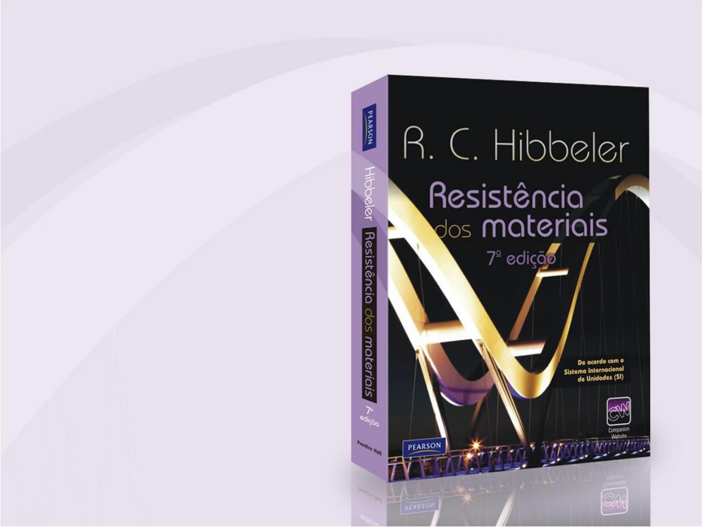 Capítulo 1: Tensão © 2009 Pearson Prentice Hall. Todos os direitos reservados.slide 2 Tensão de cisalhamento média • A tensão de cisalhamento distribuída sobre cada área secionada que desenvolve essa força de cisalhamento é definida por: Dois tipos diferentes de cisalhamento: A V =méd τméd = tensão de cisalhamento média V = força de cisalhamento interna resultante A = área na seção a) Cisalhamento simples b) Cisalhamento duplo © 2009 Pearson Prentice Hall. Todos os direitos reservados.slide 3 Exemplo 1.11 A escora de madeira mostrada na figura está suportada por uma haste de aço de 10 mm de diâmetro, presa na parede. Se a escora suporta uma carga vertical de 5 kN, calcular a tensão de cisalhamento média da haste na parede e ao longo das duas áreas sombreadas da escora ,uma das quais está identificada como abcd. © 2009 Pearson Prentice Hall. Todos os direitos reservados.slide 4 Solução: © 2009 Pearson Prentice Hall. Todos os direitos reservados.slide 5 © 2009 Pearson Prentice Hall. Todos os direitos reservados.slide 6 Exemplo 1.12 O elemento inclinado está submetido a uma força de compressão de 3.000 N. Determine a tensão de compressão média ao longo das áreas de contato lisas definidas por AB e BC e a tensão de cisalhamento média ao longo do plano horizontal definido por EDB. © 2009 Pearson Prentice Hall. Todos os direitos reservados.slide 7 Solução: As forças de compressão agindo nas áreas de contato são ( ) ( ) N 400.20000.3 ;0 N 800.10000.3 ;0 5 4 5 3 ==−=+ ==−=→+ BCBCy ABABx FFF FFF A força de cisalhamento agindo no plano horizontal secionado EDB é N 800.1 ;0 ==→+ VFx © 2009 Pearson Prentice Hall. Todos os direitos reservados.slide 8 As tensões de compressão médias ao longo dos planos horizontal e vertical do elemento inclinado são ( )( ) ( )( ) (Resposta) N/mm 20,1 4050 400.2 (Resposta) N/mm 80,1 4025 800.1 2 2 == == BC AB ( )( ) (Resposta) N/mm 60,0 4075 800.1 2 méd == A tensão de cisalhamento média que age no plano horizontal definido por BD é © 2009 Pearson Prentice Hall. Todos os direitos reservados.slide 9 Tensão admissível • Muitos fatores desconhecidos que influenciam na tensão real de um elemento. • O fator de segurança é um método para especificação da carga admissível para o projeto ou análise de um elemento. • O fator de segurança (FS) é a razão entre a carga de ruptura e a carga admissível. adm rup FS F F = © 2009 Pearson Prentice Hall. Todos os direitos reservados.slide 10 Exemplo 1.14 O braço de controle está submetido ao carregamento mostrado na figura abaixo. Determine, com aproximação de 5 mm, o diâmetro exigido para o pino de aço em C se a tensão de cisalhamento admissível para o aço for . Note na figura que o pino está sujeito a cisalhamento duplo. MPa 55adm = © 2009 Pearson Prentice Hall. Todos os direitos reservados.slide 11 Solução: Para equilíbrio, temos: ( ) ( ) ( )( ) ( ) ( ) kN 3002515 ;0 kN 502515 ;0 kN 150125,025075,0152,0 ;0 5 3 5 4 5 3 ==−−=+ ==+−−=+→ ==−==+ yyy xxx ABABC CCF CCF FFM O pino em C resiste à força resultante em C. Portanto, ( ) ( ) kN 41,30305 22 =−=CF © 2009 Pearson Prentice Hall. Todos os direitos reservados.slide 12 mm 8,18 mm 45,246 2 m 1045,276 1055 205,15 2 26 3 adm 2 = = = == − d d V A O pino está sujeito a cisalhamento duplo, uma força de cisalhamento de 15,205 kN age sobre sua área da seção transversal entre o braço e cada orelha de apoio do pino. A área exigida é Use um pino com um diâmetro d = 20 mm. (Resposta) © 2009 Pearson Prentice Hall. Todos os direitos reservados.slide 13 Exemplo 1.17 A barra rígida AB é sustentada por uma haste de aço AC com 20 mm de diâmetro e um bloco de alumínio com área de seção transversal de 1.800 mm2. Os pinos de 18 mm de diâmetro em A e C estão submetidos a cisalhamento simples. Se a tensão de ruptura do aço e do alumínio forem e , respectivamente, e a tensão de ruptura para cada pino for de , determine a maior carga P que pode ser aplicada à barra. Aplique um fator de segurança FS = 2. ( ) MPa 680 rupaço = ( ) MPa 70 rupal = MPa 900rup = © 2009 Pearson Prentice Hall. Todos os direitos reservados.slide 14 Solução: As tenções admissíveis são: ( ) ( ) ( ) ( ) MPa 450 2 900 FS MPa 35 2 70 FS MPa 340 2 680 FS rup adm rupal admal rupaço admaço === === === Há três incógnitas e nós aplicaremos as equações de equilíbrio ( ) ( ) ( ) ( ) (2) 075,02 ;0 (1) 0225,1 ;0 =−=+ =−=+ PFM FPM BA ACB © 2009 Pearson Prentice Hall. Todos os direitos reservados.slide 15 Agora, determinaremos cada valor de P que crie a tensão admissível na haste, no bloco e nos pinos, respectivamente. A haste AC exige ( ) ( ) ( ) ( ) kN 8,10601,010340 26 admaço === ACAC AF Usando a Equação 1, ( )( ) kN 171 25,1 28,106 ==P Para bloco B, ( ) ( ) ( ) kN 0,6310800.11035 66 admal === − BB AF Usando a Equação 2, ( )( ) kN 168 75,0 20,63 ==P © 2009 Pearson Prentice Hall. Todos os direitos reservados.slide 16 Para o pino A ou C, ( ) ( ) kN 5,114009,010450 26 adm ==== AFV AC Usando a Equação 1, ( )( ) kN 183 25,1 25,114 ==P Quando P alcança seu menor valor (168 kN), desenvolve a tensão normal admissível no bloco de alumínio. Por consequência, (Resposta) kN 168=P