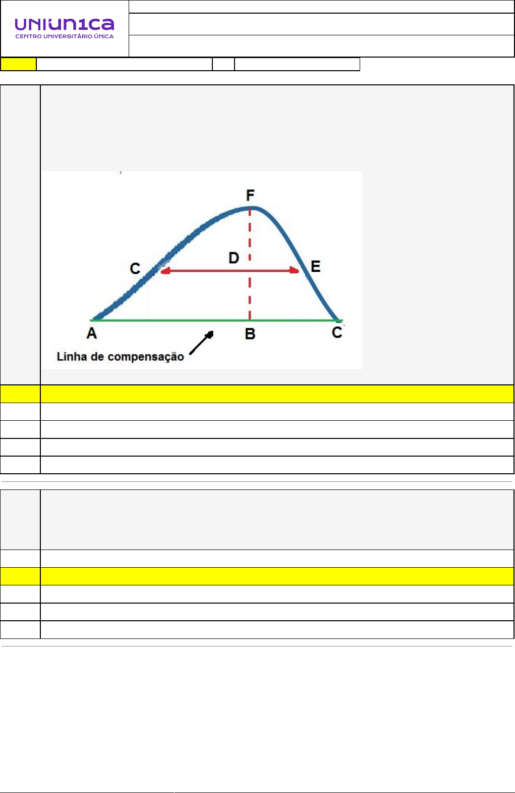 17/11/2024 09:33:49 1/5 REVISÃO DE SIMULADO Nome: ABNER AÉLCIO SOARES Disciplina: Estradas Respostas corretas são marcadas em amarelo X Respostas marcardas por você. Questão 001 (COPESE - UFPI 2014 - Adaptado) O diagrama de massas facilita a análise do movimento de terra e a distribuição dos materiais de terraplenagem, definindo a origem e o destino desses materiais, indicando volumes e distâncias médias de transporte. Com base no diagrama abaixo e considerando que D é o ponto médio do alinhamento BF, a distância média de transporte, o volume transportado e o momento de transporte são respectivamente. Figura 125. Diagrama do exercício 6. Fonte: O próprio autor. A) CE; BF e CExBF. B) AB; BD e ABxBD. X C) AC; BD e ACxBD. D) AC; BF e ACxBF. E) BF; AC e BFxAC. Questão 002 No serviço de terraplenagem em um trecho de uma estrada, o custo de retirada de terra é de R$ 80,00 por caminhão e a capacidade de carga do caminhão é de 5,0m3 por viagem. Considerando que o volume a ser retirado é de aproximadamente 150m3, e que o empolamento do solo é de 20%, assinale a afirmativa correta. A) O custo total do transporte neste trecho será de R$ 14.400,00. B) O volume de solo destinado para o aterro (Vs) é 180m3. X C) O custo total do transporte neste trecho será de R$ 2.400,00. D) Para a retirada de terra neste trecho, serão necessárias 30 viagens de caminhão. E) O volume de solo destinado para o aterro (Vs) é 150m3. 17/11/2024 09:33:49 2/5 Questão 003 Observe o diagrama de massas abaixo. Figura 120. Diagrama do exercício 2. Fonte: O próprio autor. Analise as afirmativas abaixo: I. O volume de transporte na área abaixo da linha azul é 60.000m3. II. A distância média de transporte na área abaixo da linha azul é 8dam. III. O momento de transporte na área abaixo da linha azul é 480.000m3xdam. IV. O volume de aterro compactado entre as estacas 1 e 8 é de 20.000m3. V. O volume de corte entre as estacas 13 e 15 é de40.000m3. Assinale a alternativa que apresenta as afirmações corretas. A) Apenas as afirmativas II, IV e V. B) Apenas as afirmativas II e IV. C) Apenas as afirmativas II e IV. X D) Apenas as afirmativas I, II e III. E) Apenas a afirmativa IV e V. 17/11/2024 09:33:49 3/5 Questão 004 (ENADE 2017- Adaptado) Um engenheiro está desenvolvendo um projeto de terraplenagem de um trecho de uma rodovia federal, compreendido entre as estacas 0 e 25, e construiu o Diagrama de Brückner conforme figura abaixo. Figura 124. Diagramas do exercício 5. Fonte: Fonte: ENADE 2017- adaptado. Baseado neste diagrama é possível afirmar que: A) A distância média de transporte entre as estacas 1 e 9 é aproximadamente 160dam. B) O volume de corte entre as estacas 6 e 9 é de 6.000m3. C) O volume de transporte entre as estacas 10 e 14 é de aproximadamente 6.500m3. D) O momento de transporte entre as estacas 10 e 17 é de 45.000m3xdam. X E) O volume de aterro entre as estacas 18 e 22 é de 5.000m3. Questão 005 Os perfis transversais entre as estacas X e Y de uma estrada, estão apresentados abaixo. Considere as afirmações a seguir, considerando um fator de homogeneização fh = 1,2 e a distância entre as estacas for 20m. I. A área total da estaca X é de 30,73m2, sendo 10,15m2 de corte e 20,58m2 de aterro. II. A área total de corte da estaca Y é de 66,02m2. III. O volume de corte será 761,70m3. IV. O volume de aterro será 171,50m3. Estão corretas: A) Apenas as afirmativas I, II e III. B) Apenas as afirmativas II e III. C) Apenas as afirmativas I e IV. X D) Apenas as afirmativas I e III. E) Apenas as afirmativas II, III e IV. 17/11/2024 09:33:49 4/5 Questão 006 Em um trecho em construção de uma estrada, durante a terraplenagem,a quantidade transportada para execução de um aterro é de aproximadamente 260m3 de material. Considerando que o empolamento do solo é de 18%, o custo da retirada de terra é de R$ 95,00, que a capacidade do caminhão é de 7,50m3 por viagem e que o fator de homogeneizaçãoé 1,35, assinale a alternativa correta. A) Serão realizadas aproximadamente 30 viagens para executar este transporte. B) O custo total aproximado de transporte será R$ 3.325,00. C) Caso o empolamento do solo fosse 27% o volume de corte aproximado seria 173m3. X D) O volume de corte é aproximadamente 193m3. E) O volume compactado é aproximadamente 187m3. Questão 007 (ENADE 2011- Adaptado) Em razão dos jogos da copa de 2014 foi feita uma ampliação em uma pista de pouso e decolagem de um aeroporto.A pista que foi ampliada tem um comprimento de 1.200m e foi estaqueada com um total de 60 estacas de 20m cada. O projeto de terraplenagem desta ampliação foi realizado e foi feito o seguinte diagrama de massas. Figura 121. Diagrama do exercício 3. Fonte: ENADE 2011- adaptado. A partir da linha de distribuição representada no diagrama, qual é o volume do bota- fora? A) 1.100m3. X B) 110m3. C) 1.200m3. D) 500m3. E) 600m3. 17/11/2024 09:33:49 5/5 Questão 008 Observe o diagrama de massas abaixo. Avalie as afirmações a seguir. I. O maior volume de corte é 1.200.000m3. II. O volume entre as estacas 100 e 110 é 300.000m3. III. O maior volume de aterro é 500.000m3. IV. As estacas dos pontos de passagem são as estacas 110; 125; 145 e a 160. Estão corretas: X A) Apenas as afirmativas II e III. B) Apenas as afirmativas II, III e IV. C) Apenas as afirmativas I, II e IV. D) Apenas as afirmativas I, II e III. E) Apenas as afirmativas I e III.