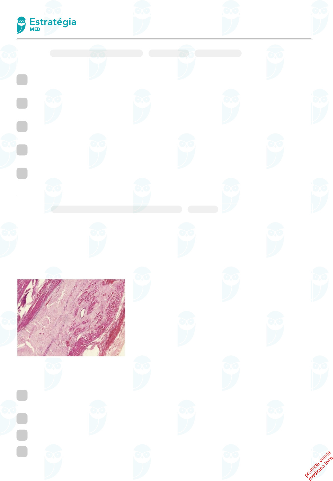 SCASSST Síndrome Coronária Aguda sem Supra do Segmento ST At.me/medicinalivre cessar Lista Questão 1 Fibrinólise no tratamento do IAMCSST Avaliação inicial Eletrocardiograma Em relação à Síndrome Coronariana Aguda (SCA), é correto afirmar: A A terapia fibrinolítica é crucial para salvar vidas, tanto na síndrome coronariana aguda com supradesnivelamento do segmento ST, quanto na SCA sem supra de ST. B Cerca de um terço dos pacientes com IAM não têm dor no peito. Esses pacientes tendem a ser idosos, do sexo feminino, diabéticos e correm maior risco de morte subsequente. C Paciente com dor torácica típica, mas com marcadores de necrose miocárdicas normais e sem supradesnivelamento do segmento ST, exclui-se infarto agudo do miocárdio. D O deslocamento dinâmico do segmento ST é a alteração eletrocardiográfica mais sensível para a síndrome coronariana aguda. E Se o nível de LDL- colesterol do paciente for baixo, não há recomendação de estatina na síndrome coronariana aguda. Essa questão possui comentário do professor no site 4000185711 Questão 2 Inf arto Agudo do miocárdio com supra de ST IAMCSST Cardiologia Homem, 67a, no início da manhã apresentou fortes dores na região central do tórax, que irradiavam para o pescoço, mandíbula e braço esquerdo, e di culdade para respirar. Foi imediatamente conduzido a uma Unidade de Emergência, chegando com sudorese acentuada e muito ansioso. Exame físico: PA=60x35mmHg; FC=120bpm; cianose de extremidades, pulsos fracos. Eletrocardiograma: sinais de extenso infarto do miocárdio anterolateral. Foram realizadas medidas iniciais de suporte de vida e indicado cateterismo cardíaco, mas antes disto evoluiu à óbito. Submetido à necropsia. A Figura mostra uma secção do coração. SOBRE A IMAGEM, É CORRETO AFIRMAR QUE: A Há uma área de infarto do miocárdio antigo e o novo infarto é muito recente para ser identificado à histologia convencional. B Há uma área de necrose coagulativa do miocárdio, compatível com o infarto recente. C Existe uma hipertrofia dos cardiomiócitos decorrente de hipertensão arterial crônica. D O infarto do miocárdio produziu redução súbita da pressão arterial, com trombose vascular e sinais de recanalização. med ici na liv re pro ibi da ve nd a https://med.estrategia.com/cadernos-e-simulados/cadernos/3da96eb4-aed1-4e27-b4f3-569357315d96 Essa questão possui comentário do professor no site 4000184376 Questão 3 Critérios de internação Estratif icação de risco Cardiologia Paciente do sexo masculino com 66 anos vai ao serviço de pronto atendimento e relata episódio de dor torácica em aperto, com irradiação para pescoço e mandíbula, iniciada durante atividade sexual, com sensação de morte iminente. Parou a atividade e procurou atendimento médico. A dor passou quando estava a caminho do pronto atendimento, após cerca de 15 minutos do seu início. Relata ser hipertenso, tabagista e dislipidêmico. Faz uso habitual de candesartana/hidroclorotiazida 16/12.5 mg e sinvastatina/ezetimiba 40/10 mg. Não foram observadas alterações ao exame físico e foi solicitado ainda teste de troponina ultrassensível, com resultado normal. Fez também o ECG reproduzido abaixo. Nesse caso, esse paciente deve ser estratificado, preferencialmente, como A HEART Score 9 – cateterismo em até 2 horas. B HEART Score 7 – cateterismo em até 24 horas. C HEART Score 3 – teste não invasivo ambulatorial. D HEART Score 5 – teste não invasivo em até 72 horas. Essa questão possui comentário do professor no site 4000183886 Questão 4 Anticoagulantes Antiplaquetários Cardiologia Sobre o tratamento antitrombótico preconizado pela diretriz brasileira de síndrome coronária aguda sem supradesnivelamento de segmento ST, assinale a correta. A Nos raros casos de pacientes com hipersensibilidade ao ácido acetilsalicílico, para dupla antiagregação, recomenda-se a combinação de clopidogrel com ticagrelor, ou clopidogrel com prasugrel, todos sem dose de ataque. B O período de tratamento com enoxaparina em dose plena é por 5 dias. Após esse período, caso o paciente permaneça internado, deve ser reduzida para dose profilática de tromboembolismo venoso. C Não há indicação rotineira de se iniciar inibidor do receptor P2Y12 como pré-tratamento em pacientes indicados para estratégia invasiva precoce (com progressiva piora da dor torácica, que apesar de não ocorrer positivação dos marcadores de lesão miocárdica, teve indicado cateterismo diagnóstico e possivelmente terapêutico por parte da cardiologia. Diversas condutas serão realizadas a m de melhorar os desfechos desse paciente, dentre eles o uso de medicações que interagem com plaquetas. A respeito dessa intervenção, assinale a alternativa considerada INADEQUADA: A Na utilização de clopidogrel, é preciso ressaltar ainda que, dentre os pacientes submetidos à trombólise, a dose de ataque de 300 mg não deve ser administrada em pacientes acima de 75 anos. B A dose dobrada de 150 mg/dia de clopidogrel deve ser restrita aos pacientes com baixo risco de sangramento. C Em caso de intervenção cirúrgica, o clopidogrel deve ser suspenso 10 dias antes do procedimento. D Para uso de clopidogrel com dose de ataque de 600 mg em pacientes submetidos à ICPP, tem se baseado na inibição do receptor do ADP mais rápido que se obtém com essa dose. Essa questão possui comentário do professor no site 4000029827 Questão 71 Biomarcadores Dentre os biomarcadores séricos abaixo, o mais específico para necrose miocardica é: A Mioglobina. B BNP. C CK-MB. D Troponina. E Interleucina 6. Essa questão possui comentário do professor no site 4000028745 Questão 72 Eletrocardiograma Idoso, 68 anos de idade, procura hospital com quadro de dor torácica, provavelmente cardiogênica, possuindo algumas características que não são compatíveis com insu ciência coronária. Ao ser realizado eletrocardiograma, foram encontradas al