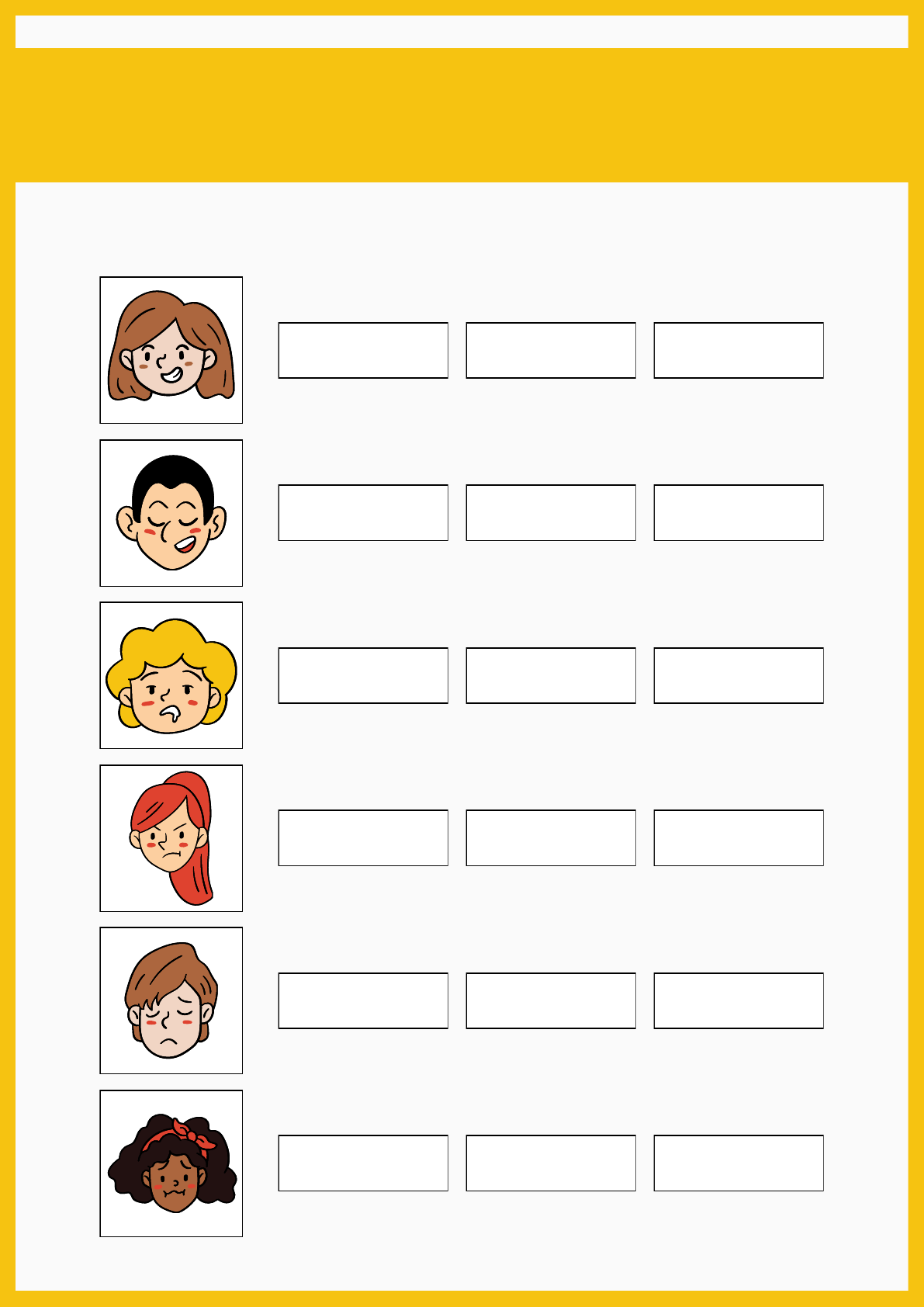 Happy Sad Anxious Calm Worried Happy Worried Bored Happy Angry Sad Confused Happy Sad Angry Sad Worried Anxious Emotions How are they feeling? Look at each one of their expressions and choose the correct option. Happy Sad Anxious Calm Worried Happy Worried Bored Happy Angry Sad Confused Happy Sad Angry Sad Worried Anxious Emotions How are they feeling? Look at each one of their expressions and choose the correct option.
