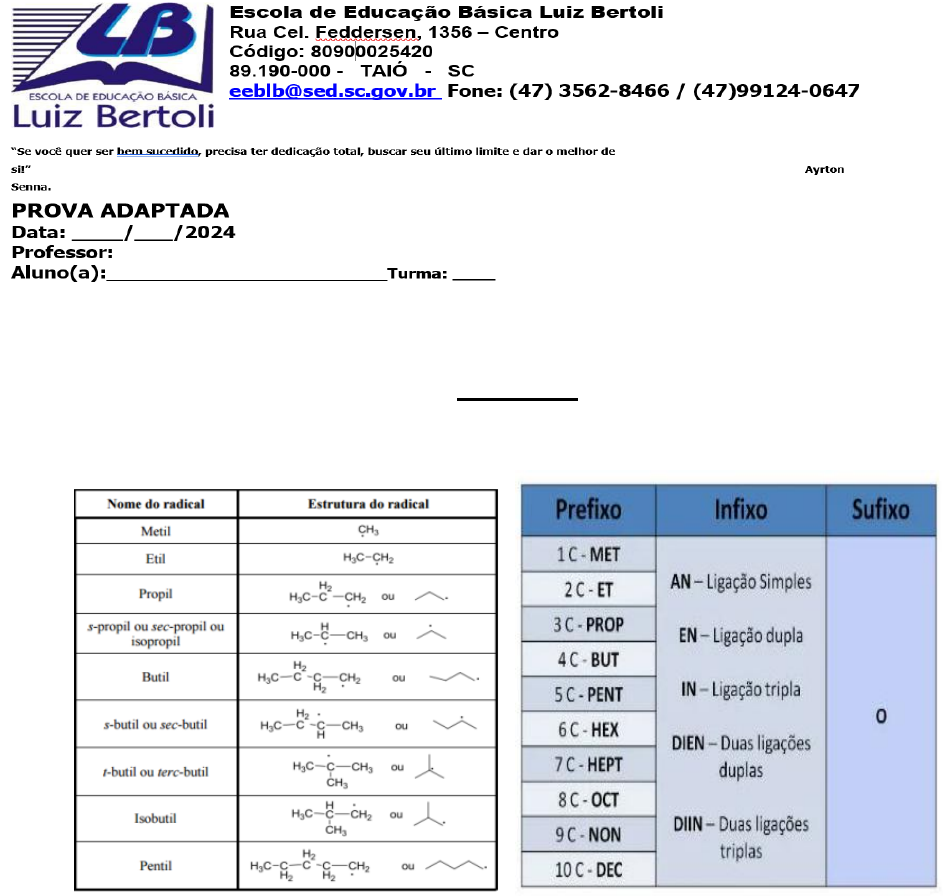 QUÍMICA 1-Qual a fórmula molecular da estrutura abaixo: CH – CH – CH ________________________ CH– CH–CH | _______________________ CH 2-Faça as formulas estruturais: a) PENTENO b) ETINO c) PROPINO