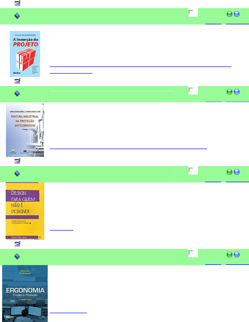 BIBLIOGRAFIA TECNÓLOGO EM DESIGN DE INTERIORES 1/121 Livro 745.2 / M777i / 1987 Selecionar [5] Status | Reservar MONTENEGRO, Gildo. A invenção do projeto: a criatividade aplicada em desenho industrial, arquitetura, comunicação visual. Sao Paulo: Edgard Blucher, 1987. 131 p. ISBN 9788521200072. ISBN 9788521200072. Palavras-chave: CRIATIVIDADE ; COMUNICACAO VISUAL ; DESENHO INDUSTRIAL ; ARQUITETURA. 2/121 Livro 667.6 / N972p / 5.ed. / 2014 Selecionar [3] Status | Reservar NUNES, Laerce de Paula; LOBO, Alfredo Carlos O. Pintura industrial na protecao anticorrosiva. 5.ed. Rio de Janeiro: Livros Tecnicos e Cientificos, 2014. 250 p. ISBN 9788521607326. ISBN 9788521607326. Palavras-chave: PINTURA INDUSTRIAL; CORROSAO E ANTICORROSIVOS. 3/121 Livro 745.4 / W726d / 8.ed. / 1995 Selecionar [2] Status | Reservar WILLIAMS, Robin. Design para quem não é designer: noções básicas de planejamento visual. 8.ed. Sao Paulo: Callis, 1995. 142 p. ISBN 9788585642408. ISBN 9788585642408. Palavras-chave: DESIGN. 4/121 Livro 620.82 / L712e / 2003 Selecionar [2] Status | Reservar LIDA, Itiro; GUIMARÃES, Lia Buarque de Macedo. Ergonomia: projeto e produção. Sao Paulo: Edgard Blucher, 2003. 465 p. ISBN 978852120017X. ISBN 978852120017X. Palavras-chave: ERGONOMIA. http://phl.jf.ifsudestemg.edu.br/cgi-bin/wxis.exe?IsisScript=phl82/003.xis&opc=status_tit&tit=JF16035&acv=001&tmp=/tmp/filegciRK1 http://phl.jf.ifsudestemg.edu.br/cgi-bin/wxis.exe?IsisScript=phl82/038.xis&acv=001&tit=JF16035&opc=origem&tmp=/tmp/filegciRK1 http://phl.jf.ifsudestemg.edu.br/cgi-bin/wxis.exe?IsisScript=phl82/003.xis&bool=exp&opc=decorado&exp=CRIATIVIDADE%20&tmp=/tmp/filegciRK1 http://phl.jf.ifsudestemg.edu.br/cgi-bin/wxis.exe?IsisScript=phl82/003.xis&bool=exp&opc=decorado&exp=CRIATIVIDADE%20&tmp=/tmp/filegciRK1 http://phl.jf.ifsudestemg.edu.br/cgi-bin/wxis.exe?IsisScript=phl82/003.xis&bool=exp&opc=decorado&exp=DESENHO%20INDUSTRIAL%20&tmp=/tmp/filegciRK1 http://phl.jf.ifsudestemg.edu.br/cgi-bin/wxis.exe?IsisScript=phl82/003.xis&bool=exp&opc=decorado&exp=DESENHO%20INDUSTRIAL%20&tmp=/tmp/filegciRK1 http://phl.jf.ifsudestemg.edu.br/cgi-bin/wxis.exe?IsisScript=phl82/003.xis&bool=exp&opc=decorado&exp=ARQUITETURA&tmp=/tmp/filegciRK1 http://phl.jf.ifsudestemg.edu.br/cgi-bin/wxis.exe?IsisScript=phl82/003.xis&opc=status_tit&tit=JF17806&acv=001&tmp=/tmp/filegciRK1 http://phl.jf.ifsudestemg.edu.br/cgi-bin/wxis.exe?IsisScript=phl82/038.xis&acv=001&tit=JF17806&opc=origem&tmp=/tmp/filegciRK1 http://phl.jf.ifsudestemg.edu.br/cgi-bin/wxis.exe?IsisScript=phl82/003.xis&bool=exp&opc=decorado&exp=PINTURA%20INDUSTRIAL&tmp=/tmp/filegciRK1 http://phl.jf.ifsudestemg.edu.br/cgi-bin/wxis.exe?IsisScript=phl82/003.xis&bool=exp&opc=decorado&exp=PINTURA%20INDUSTRIAL&tmp=/tmp/filegciRK1 http://phl.jf.ifsudestemg.edu.br/cgi-bin/wxis.exe?IsisScript=phl82/003.xis&opc=status_tit&tit=JF61952&acv=001&tmp=/tmp/filegciRK1 http://phl.jf.ifsudestemg.edu.br/cgi-bin/wxis.exe?IsisScript=phl82/038.xis&acv=001&tit=JF61952&opc=origem&tmp=/tmp/filegciRK1 http://phl.jf.ifsudestemg.edu.br/cgi-bin/wxis.exe?IsisScript=phl82/003.xis&bool=exp&opc=decorado&exp=DESIGN&tmp=/tmp/filegciRK1 http://phl.jf.ifsudestemg.edu.br/cgi-bin/wxis.exe?IsisScript=phl82/003.xis&opc=status_tit&tit=JF62652&acv=001&tmp=/tmp/filegciRK1 http://phl.jf.ifsudestemg.edu.br/cgi-bin/wxis.exe?IsisScript=phl82/038.xis&acv=001&tit=JF62652&opc=origem&tmp=/tmp/filegciRK1 http://phl.jf.ifsudestemg.edu.br/cgi-bin/wxis.exe?IsisScript=phl82/003.xis&bool=exp&opc=decorado&exp=ERGONOMIA&tmp=/tmp/filegciRK1 http://phl.jf.ifsudestemg.edu.br/cgi-bin/wxis.exe?IsisScript=phl82/012.xis&dbvar=%5eaphl_acv%5eb1%5ecacv&exp=MFN=32338&tmp=/tmp/filegciRK1 http://phl.jf.ifsudestemg.edu.br/cgi-bin/wxis.exe?IsisScript=phl82/012.xis&dbvar=%5eaphl_acv%5eb1%5ecacv&exp=MFN=32605&tmp=/tmp/filegciRK1 http://phl.jf.ifsudestemg.edu.br/cgi-bin/wxis.exe?IsisScript=phl82/012.xis&dbvar=%5eaphl_acv%5eb1%5ecacv&exp=MFN=34307&tmp=/tmp/filegciRK1 http://phl.jf.ifsudestemg.edu.br/cgi-bin/wxis.exe?IsisScript=phl82/012.xis&dbvar=%5eaphl_acv%5eb1%5ecacv&exp=MFN=34316&tmp=/tmp/filegciRK1 http://phl.jf.ifsudestemg.edu.br/cgi-bin/wxis.exe?IsisScript=phl82/012.xis&dbvar=%5eaphl_acv%5eb1%5ecacv&exp=MFN=32338&tmp=/tmp/filegciRK1 http://phl.jf.ifsudestemg.edu.br/cgi-bin/wxis.exe?IsisScript=phl82/012.xis&dbvar=%5eaphl_acv%5eb1%5ecacv&exp=MFN=32605&tmp=/tmp/filegciRK1 http://phl.jf.ifsudestemg.edu.br/cgi-bin/wxis.exe?IsisScript=phl82/012.xis&dbvar=%5eaphl_acv%5eb1%5ecacv&exp=MFN=34307&tmp=/tmp/filegciRK1 http://phl.jf.ifsudestemg.edu.br/cgi-bin/wxis.exe?IsisScript=phl82/012.xis&dbvar=%5eaphl_acv%5eb1%5ecacv&exp=MFN=34316&tmp=/tmp/filegciRK1 http://phl.jf.ifsudestemg.edu.br/cgi-bin/wxis.exe?IsisScript=phl82/012.xis&dbvar=%5eaphl_acv%5eb1%5ecacv&exp=MFN=32338&tmp=/tmp/filegciRK1 http://phl.jf.ifsudestemg.edu.br/cgi-bin/wxis.exe?IsisScript=phl82/012.xis&dbvar=%5eaphl_acv%5eb1%5ecacv&exp=MFN=32605&tmp=/tmp/filegciRK1 http://phl.jf.ifsudestemg.edu.br/cgi-bin/wxis.exe?IsisScript=phl82/012.xis&dbvar=%5eaphl_acv%5eb1%5ecacv&exp=MFN=34307&tmp=/tmp/filegciRK1 http://phl.jf.ifsudestemg.edu.br/cgi-bin/wxis.exe?IsisScript=phl82/012.xis&dbvar=%5eaphl_acv%5eb1%5ecacv&exp=MFN=34316&tmp=/tmp/filegciRK1 http://phl.jf.ifsudestemg.edu.br/cgi-bin/wxis.exe?IsisScript=phl82/012.xis&dbvar=%5eaphl_acv%5eb1%5ecacv&exp=MFN=32338&tmp=/tmp/filegciRK1 http://phl.jf.ifsudestemg.edu.br/cgi-bin/wxis.exe?IsisScript=phl82/012.xis&dbvar=%5eaphl_acv%5eb1%5ecacv&exp=MFN=32605&tmp=/tmp/filegciRK1 http://phl.jf.ifsudestemg.edu.br/cgi-bin/wxis.exe?IsisScript=phl82/012.xis&dbvar=%5eaphl_acv%5eb1%5ecacv&exp=MFN=34307&tmp=/tmp/filegciRK1 http://phl.jf.ifsudestemg.edu.br/cgi-bin/wxis.exe?IsisScript=phl82/012.xis&dbvar=%5eaphl_acv%5eb1%5ecacv&exp=MFN=34316&tmp=/tmp/filegciRK1 http://phl.jf.ifsudestemg.edu.br/cgi-bin/wxis.exe?IsisScript=phl82/012.xis&dbvar=%5eaphl_acv%5eb1%5ecacv&exp=MFN=32338&tmp=/tmp/filegciRK1 http://phl.jf.ifsudestemg.edu.br/cgi-bin/wxis.exe?IsisScript=phl82/012.xis&dbvar=%5eaphl_acv%5eb1%5ecacv&
