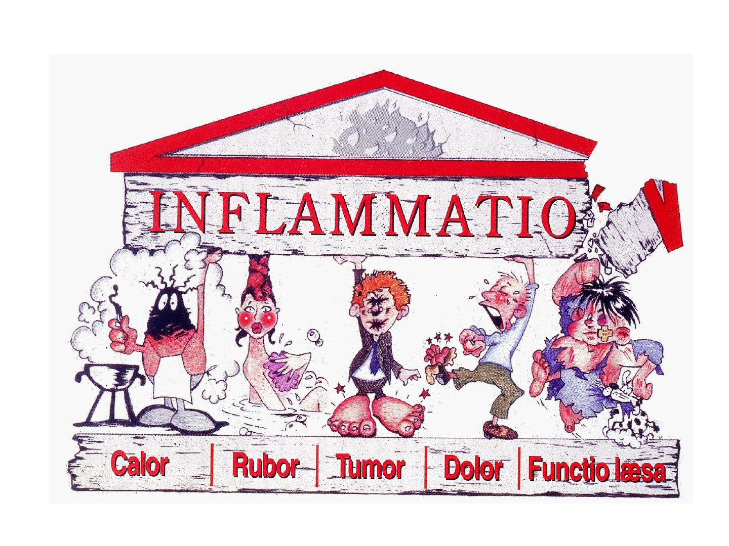 InflamaInflamaççãoão • Resposta à injuria com sinais caracteristicos resultantes de alterações vasculares e quimicas. • Resposta supostamente benéfica, mas que pode transformar-se em maléfica quando desregulada. – Por exemplo, fluido nos pulmões interfere com as trocas gasosas – Dôr intensa provoca espasmos e reduz o fluxo sanguineo Copyright, 2000, J.L. Fishback, M.D. 5 Sinais atribuidos Sinais atribuidos àà resposta resposta vascularvascular • Vasodilatação induz hiperemia – Rubor – Calor • Aumento da permeabilidade – Edema • Aumento da pressão tissular – Dôr • Tensão • Estimulo de terminações nervosas - pressão e mediadores • Segue-se perda de função A inflamação como “reação padronizada”. • A inflamação depende menos da natureza do estimulo inflamatóório do que da maneira como o organismo mobiliza suas defesas (Celsus, Bernard, Cohnheim, Virchow e Metchnicoff). • A resposta inflamatóória é não especifica, mas ocorre de maneira padronizada qualquer que seja o estimulo. • Ela é reprodutivel quando de provocações ulteriores. •• Esclerose multipla Esclerose multipla •• OsteoartriteOsteoartrite •• PenfigoPenfigo •• Febres periFebres perióódicasdicas •• Artrite reumatArtrite reumatóóideide •• SarcoidoseSarcoidose •• Lupus eritêmico sistêmicoLupus eritêmico sistêmico •• DiabDiabéétes de tipo Ites de tipo I •• Colite ulcerativaColite ulcerativa •• VasculitesVasculites •• Cancer Cancer em geralem geral •• DoenDoençça a de de irradiairradiaççãoão DoenDoençças as provide de provide de componente inflamatcomponente inflamatóório rio intensointenso •• DoenDoençça a de Alzheimerde Alzheimer •• Anafilaxia sistêmicaAnafilaxia sistêmica •• AsmaAsma •• AteroscleroseAterosclerose •• Dermatite Dermatite atatóópicapica •• DoenDoençça a de de Crohn Crohn ((ileite ileite regional) regional) •• DoenDoençça Pulmonar a Pulmonar Obstrutiva Crônica Obstrutiva Crônica (DPOC)(DPOC) •• GotaGota •• IsquemiaIsquemia//reperfusãoreperfusão As funções da inflamação • Matar microorganismos. • Coordenadar reações imunitarias. • Eliminar células lesadas. • Restruturar tecidos. • Restaurar a função normal ! •• As As respostas inflamatrespostas inflamatóórias precoces rias precoces diferem diferem das das respostas tardiasrespostas tardias •• Cada fase envolve mediadores Cada fase envolve mediadores quimicos quimicos e e ccéélulas diferentes que lulas diferentes que funcionam associadosfuncionam associados para:para: – Enfrentar, destruir e remover os agentes injuriosos – Isolar estes agentes – Estimular as respostas imunes – Promover cura/cicatrização Fases Fases dada InflamaInflamaçção ão – Fase 1: Inflamação aguda (resposta vascular e celular, quando dominam os granulócitos) – Fase 2: Inflamação crônica (proliferação, quando dominam os monócitos) – Fase 3: Formação de granuloma – Fase 4: Cura/cicatrização Resposta Resposta vascularvascular – Vasodilatação - assegura um fornecimento aumentado de nutrientes à zona em causa – Aumento de permeabilidade vascular • permite às células e aos mediadores abandonarem a area; “depuração”) Arteriola Vênula Capilares Thoroughfare vessel A-V anastamosis Nerve A A microcirculamicrocirculaççãoão * aumento de pressão venosa ““ GapsGaps”” entre centre céélulas endoteliais lulas endoteliais normal Inflamed Resposta Resposta vascularvascular • Os vasos permitem passagem de glóbulos brancos que: • Isolam o agente agressivo • Destroem-no e removem-no, assim assegurando “limpeza” 1.1. CCéélulas de alarmelulas de alarme CCéélulas endoteliaislulas endoteliais CCéélulas dendriticaslulas dendriticas MacrMacróófagosfagos MastMastóócitos citos 2. 2. CCéélulas nlulas nééoo--recrutadasrecrutadas NeutrNeutróófilosfilos EosinEosinóófilosfilos LinfLinfóócitoscitos Plaquetas Plaquetas CCéélulas envolvidas lulas envolvidas Acumulo de leucóócitos. • Os leucóócitos possuem inumeras funções de defesa: - matar microbios. - fagocitose. - processamento de antigeno. - reparar lesões. Envolvimento sequencial Envolvimento sequencial de de molmolééculas culas de de aderênciaaderência Rolagem Aderência Transmigração SELECTINAS INTEGRINAS & MOLÉCULAS DE TIPO Ig (ICAM, VCAM) Que ocorre em ausência de resposta inflamatóória ? • Neutropenia. • Sindrome de deficiência de adesão leucocitaria. • Doença granulomatosa crônica. • Sindrome de Chediak-Higashi. • Pacientes transplantados tratados com imuno- supressivos tornam-se susceptiveis a infecções. • A vida não é possivel sem um sistema eficiente de defesa !! Sindrôme de deficiência da adesão leucocitária • Leucócitos deficientes em β2-integrinas. • Grande sensibilidade a infecções repetidas e sérias. • Cicatrização prejudicada. • Mortalidade elevada. • Necessidade de transplante de medula e/ou altas doses de produtos antibacterianos profiláticos. A A ‘‘teoria quimicateoria quimica’’ dada inflamainflamaççãoão • Substâncias quimicas, os mediadores, liberadas pelas células injuriadas ou ativadas, coordenam o desenrolar da resposta inflamatória. Os primeiros ‘mediadores da inflamação’ Phlogosina Leber, 1931 atração de leucóócitos Phlogistina Dold, 1914 protease leucocitaria Necrohormonios Caspari, 1925 colapso vascular Necrosina Menkin, 1934-6 lesão tissular Pirexina Menkin, 1945 fator pirogênico Exudina Menkin, 1956 permeabilidade vascular Mediadores Mediadores da da inflamainflamaççãoão Mais ligados à inflamação aguda • Aminas vasoativas: histamina e serotonina • Derivados do acido aracdônico: prostanóóides e leucotrienos • Fosfolipidios: « Platelet-activating factor » (PAF) Mais ligados à transição, à dôr, à cronificação • Peptideos » Ne
