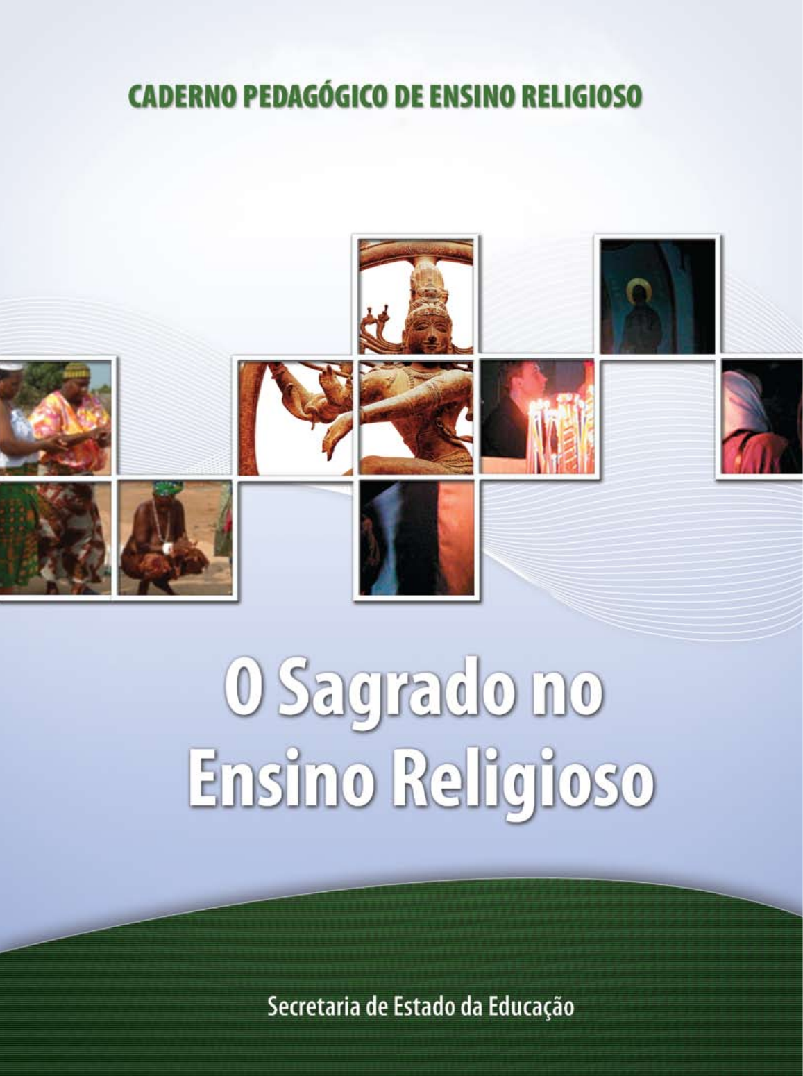 GOVERNO DO PARANÁ SECRETARIA DE ESTADO DA EDUCAÇÃO SUPERINTENDÊNCIA DA EDUCAÇÃO CURITIBA 2008 O SAGRADO NO ENSINO RELIGIOSO Biaca, Valmir et al. O sagrado no ensino religioso / Valmir Biaca; Elson Oliveira Souza; Emerli Scholgl; Sér- gio Rogério Azevedo Junqueira [e] Sant’Ana, René Simonato. – Curitiba : SEED – Pr., 2006. - p. 136 (Cadernos pedagógicos do ensino fundamental, v.8). ISBN: 978-85-85380-67-0 1. Ensino religioso. 2. Ensino religioso-Paraná. 3. Ensino fundamental. 4. Educação-Pa- raná. I. Junqueira, Sérgio Rogério Azevedo. II. Scholgl, Emerli. III. Souza, Elson Oliveira. IV. Sant’Ana, René Simonato. V. Paraná. Secretaria de Estado da Educação. Superintendência de Educação. Departamento de Ensino Fundamental. VI. Material de apoio didático. VII. Título. VIII. Série. CDU21+373.3(816.2) CATALOGAÇÃO NA FONTE - CEDITEC - SEED-PR. Depósito legal na Fundação Biblioteca Nacional, conforme Decreto Federal n.1825/1907, de 20 de Dezembro de 1907. É permitida a reprodução total ou parcial desta obra, desde que citada a fonte. SECRETARIA DE ESTADO DA EDUCAÇÃO Avenida Água Verde, 2140 - Telefone: (0XX) 41 3340-1500 80240-900 CURITIBA - PARANÁ IMPRESSO NO BRASIL DISTRIBUIÇÃO GRATUITA EDITORAÇÃO, ILUSTRAÇÕES E REVISÃO ORTOGRÁFICA MEMVAVMEM Editora 2006 GOVERNO DO PARANÁ Roberto Requião SECRETARIA DE ESTADO DA EDUCAÇÃO Mauricio Requião de Mello e Silva DIRETOR GERAL Ricardo Fernandes Bezerra SUPERINTENDÊNCIA DA EDUCAÇÃO Yvelise Freitas de Souza Arco-Verde DEPARTAMENTO DE ENSINO FUNDAMENTAL – 2006 Fátima Ikiko Yokohama Lilian Ianke Leite DEPARTAMENTO DE EDUCAÇÃO BÁSICA Mary Lane Hutner EQUIPE TÉCNICO-PEDAGÓGICA Elson Oliveira Souza René Simonato Sant’Ana Valmir Biaca ASSESSORIA PEDAGÓGICA Emerli Scholgl Sérgio Rogério Azevedo Junqueira COLABORADORES Eloi Corrêa dos Santos Juliano Orlandi APRESENTAÇÃO Professora e Professor: O conhecimento religioso é um patrimônio da humanidade. Refletir sobre esse fenômeno é pensar criticamente sobre a nossa condição existencial, o que não passa, necessariamente, pela prática de uma crença em particular. Antes, esse pensar está marcado pela busca incansável do entendimento das questões ligadas à própria vida, à transcendência e à orientação ética que dá sentido às realizações pessoais e sociais. A dimensão religiosa, por constituir uma propriedade humana, deve ser abordada com seriedade no espaço escolar, de modo que crianças e jovens estudantes possam estabelecer posições autênticas e referenciadas eticamen- te diante das expressões e manifestações religiosas. Há muito essa discussão deixou de ser privilégio de poucos esclarecidos e transposição para a escola de dogmas e sacramentos utilizados pela Igreja. Hoje, a liberdade de crença e de exercício religioso, garantida constitucionalmente, permite a leitura e o debate crítico dos lugares sagrados, dos textos sagrados orais e escritos, das organizações religiosas, do universo simbólico que reúne ritos e festas, danças e músicas, forças sociais que sustentam as tradições religiosas. As orientações sugeridas neste Caderno Pedagógico O Sagrado no Ensino Religioso demonstram claramente, sem proselitismos, que é possível orga- nizar conhecimentos básicos sobre o assunto para ampliar as oportunidades de desenvolvimento humano. Aqui está o esforço comprometido das equipes pedagógicas da SEED e consultoria das IES com a formação de nossos estu- dantes do Ensino Fundamental. Trata-se de um trabalho orientado para apre- sentar didaticamente a riqueza da diversidade do fenômeno religioso, pela via do sagrado, para uma escola laica e pluralista. Mauricio Requião de Mello e Silva Secretário de Estado da Educação Fátima Ikiko Yokohama Chefe do Departamento de Ensino Fundamental – 2006 Prezados(as) colegas professores(as) Apresentamos com satisfação, a consolidação de mais uma ação em prol da educação pública paranaense de qualidade: a coleção dos Cadernos Pedagógicos do Ensino Fundamental, de todas as disciplinas escolares. A elaboração desse material se traduz em uma importante ação de implementa- ção das diretrizes e pretende fomentar as discussões críticas sobre os conhecimentos historicamente produzidos, articulados à prática social em sala de aula. É específico para o(a) professor(a), fornece elementos para a preparação de aulas com vistas a priorizar o tratamento dos conteúdos na escola e destaca uma abordagem pedagó- gica dos conteúdos, proposta nos fundamentos teórico-metodologicos da disciplina e explicitada ao longo das unidades. Vale ressaltar que estes cadernos consistem num material de apoio didático- pedagógico aos professores do Ensino Fundamental da rede pública estadual de ensino e portanto, não pretendem esgotar as possibilidades de abordagem dos con- teúdos, e sim instigar o professor a buscar encaminhamentos teórico-metodológicos diferenciados, com vistas a resgatar a função social da escola pública no estado do Paraná. A meta da educação do Estado do Paraná para o Ensino Fundamental é a for- mação de qualidade dos nossos educandos acolhidos por um trabalho docente crí- tico e articulado às diretrizes da política educacional que vem sendo construída. Entendemos que o apoio e a orientação dos alunos está a cargo do professor, mas são os recursos educacionais que oferecem a base desse projeto. Desta forma, a Coleção Cadernos Pedagógicos, que ora apresentamos, buscou atender aos anseios dos professores, no que diz respeito ao material didático-pedagógico, através da reflexão e do diálogo com todos os profissionais da rede pública estadual de ensino. Inteligência, criatividade, espírito de iniciativa, capacidade e perseverança foram aspectos importantíssimos que contribuíram para esta realização que, efetivamente abriu possibilidades para evidenciar um trabalho diferenciado, com os conteúdos 