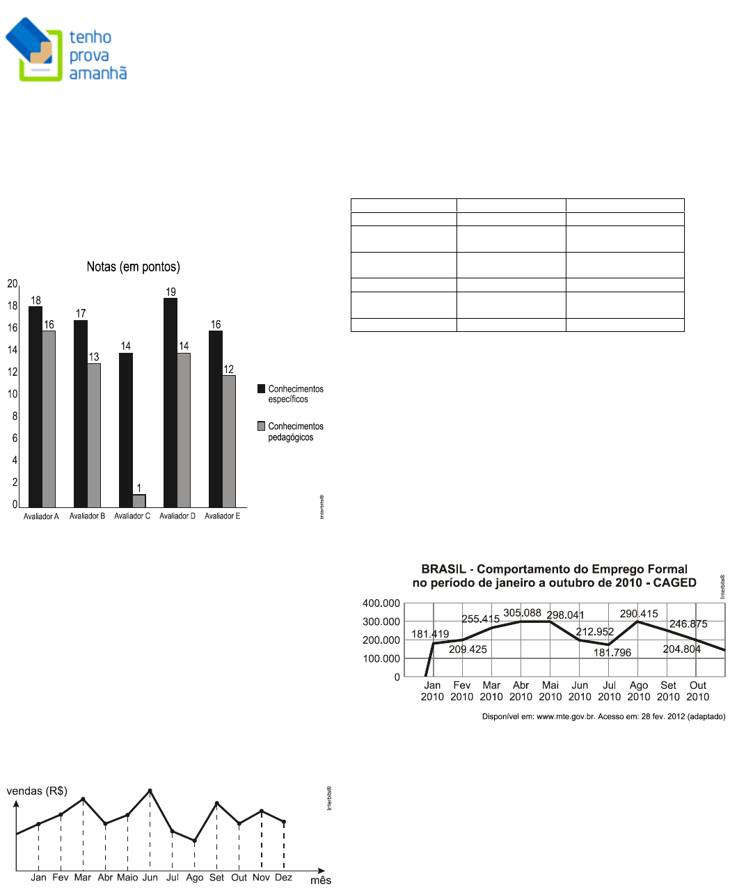 Provas ENEM Matemática www.tenhoprovaamanha.com.br www.tenhoprovaamanha.com.br 91 composta por cinco membros, são apresentadas no gráfico. Sabe-se que cada membro da banca atribui duas notas ao professor, uma relativa aos conhecimentos específicos da área de atuação e outra, aos conhecimentos pedagógicos, e que a média final do professor foi dada pela média aritmética de todas as notas atribuídas pela banca avaliadora. Utilizando um novo critério, essa banca avaliadora resolveu descartar a maior e a menor notas atribuídas ao professor. A nova média, em relação à média anterior, é a) 0,25 ponto maior. b) 1,00 ponto maior. c) 1,00 ponto menor. d) 1,25 ponto maior. e) 2,00 pontos menor. 8. (Enem 2012) O dono de uma farmácia resolveu colocar à vista do público o gráfico mostrado a seguir, que apresenta a evolução do total de vendas (em Reais) de certo medicamento ao longo do ano de 2011. De acordo com o gráfico, os meses em que ocorreram, respectivamente, a maior e a menor venda absolutas em 2011 foram a) março e abril. b) março e agosto. c) agosto e setembro. d) junho e setembro. e) junho e agosto. 9. (Enem 2012) Uma pesquisa realizada por estudantes da Faculdade de Estatística mostra, em horas por dia, como os jovens entre 12 e 18 anos gastam seu tempo, tanto durante a semana (de segunda-feira a sexta-feira), como no fim de semana (sábado e domingo). A seguinte tabela ilustra os resultados da pesquisa. De acordo com esta pesquisa, quantas horas de seu tempo gasta um jovem entre 12 e 18 anos, na semana inteira (de segunda-feira a domingo), nas atividades escolares? a) 20 b) 21 c) 24 d) 25 e) 27 10. (Enem 2012) O gráfico apresenta o comportamento de emprego formal surgido, segundo o CAGED, no período de janeiro de 2010 a outubro de 2010. Com base no gráfico, o valor da parte inteira da mediana dos empregos formais surgidos no período é a) 212 952. b) 229 913. c) 240 621. d) 255 496. e) 298 041. 11. (Enem 2012) O gráfico mostra a variação da extensão média de gelo marítimo, em milhões de quilômetros quadrados, comparando dados dos anos 1995, 1998, 2000, 2005 e 2007. Os dados correspondem aos meses de junho a setembro. O Ártico começa a recobrar o gelo quando termina o verão, em meados de setembro. O gelo do mar atua como o sistema de resfriamento da Terra, refletindo quase toda a luz solar de volta ao espaço. Águas de oceanos escuros, por sua vez, absorvem a luz solar e reforçam o aquecimento do Ártico, ocasionando derretimento crescente do gelo. Rotina Juvenil Durante a semana No fim de semana Assistir à televisão 3 3 Atividades domésticas 1 1 Atividades escolares 5 1 Atividades de lazer 2 4 Descanso, higiene e alimentação 10 12 Outras atividades 3 3 Provas ENEM Matemática www.tenhoprovaamanha.com.br www.tenhoprovaamanha.com.br 92 Com base no gráfico e nas informações do texto, é possível inferir que houve maior aquecimento global em a) 1995. b) 1998. c) 2000. d) 2005. e) 2007. 12. (Enem 2012) Um produtor de café irrigado em Minas Gerais recebeu um relatório de consultoria estatística, constando, entre outras informações, o desvio padrão das produções de uma safra dos talhões de suas propriedades. Os talhões têm a mesma área de 30 000 m2 e o valor obtido para o desvio padrão foi de 90 kg/talhão. O produtor deve apresentar as informações sobre a produção e a variância dessas produções em sacas de 60 kg por hectare (10 000 m2). A variância das produções dos talhões expressa em (sacas/hectare)2 é a) 20,25. b) 4,50. c) 0,71. d) 0,50. e) 0,25. 13. (Enem 2011) A Escala de Magnitude de Momento (abreviada como MMS e denotada como ), introduzida em 1979 por Thomas Haks e Hiroo Kanamori, substituiu a Escala de Richter para medir a magnitude dos terremotos em termos de energia liberada. Menos conhecida pelo público, a MMS é, no entanto, a escala usada para estimar as magnitudes de todos os grandes terremotos da atualidade. Assim como a escala Richter, a MMS é uma escala logarítmica. e se relacionam pela fórmula: Onde é o momento sísmico (usualmente estimado a partir dos registros de movimento da superfície, através dos sismogramas), cuja unidade é o dina.cm. O terremoto de Kobe, acontecido no dia 17 de janeiro de 1995, foi um dos terremotos que causaram maior impacto no Japão e na comunidade científica internacional. Teve magnitude . U.S. GEOLOGICAL SURVEY, Historic Earthquakes. Disponível em: http://earthquake.usgs.gov. Acesso em: 1 maio 2010 (adaptado). U.S. GEOLOGICAL SURVEY. USGS Earthquake Magnitude Policy. Disponível em: http://earthquake.usgs.gov. Acesso em: 1 maio 2010 (adaptado). Mostrando que é possível determinar a medida por meio de conhecimentos matemáticos, qual foi o momento sísmico do terremoto de Kobe (em dina.cm)? a) b) c) d) e) 14. (Enem 2011) Uma equipe de especialistas do centro meteorológico de uma cidade mediu a temperatura do ambiente, sempre no mesmo horário, durante 15 dias intercalados, a partir do primeiro dia de um mês. Esse tipo de procedimento é frequente, uma vez que os dados coletados servem de referência para estudos e verificação de tendências climáticas ao longo dos meses e anos. As medições ocorridas nesse período estão indicadas no quadro: Dia do mês Temperatura (em ºC) 1 15,5 3 14 5 13,5 7 18 9 19,5