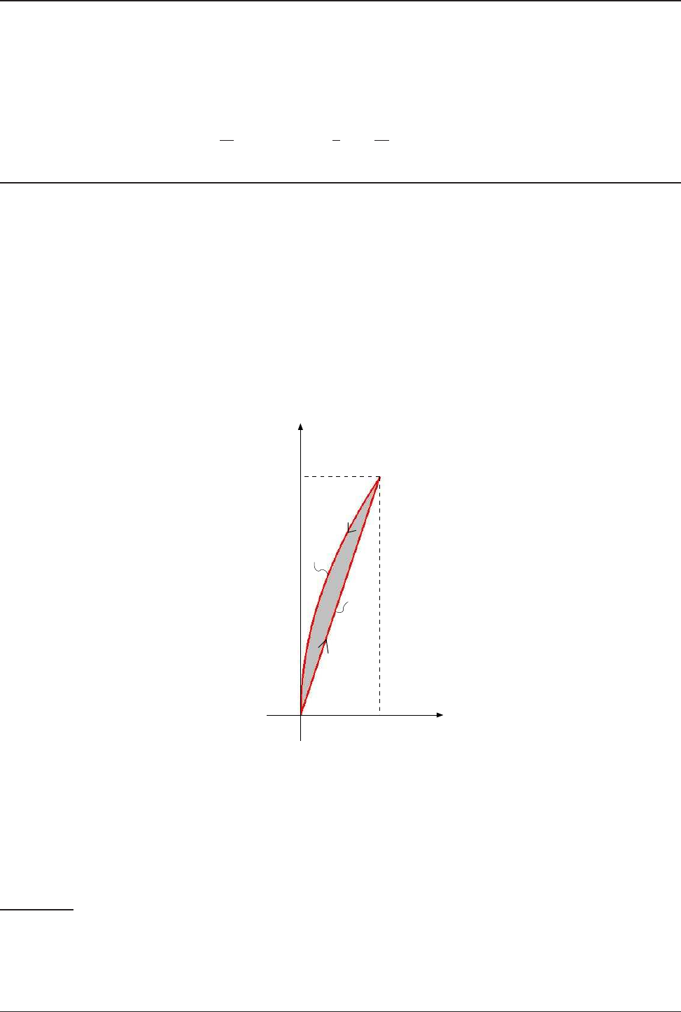 Cálculo 3A Lista 8 122 Então: ∮ C+ → F · d→r= 2 ∫ 1 −1 ∫ 2 y4+1 dxdy = 2 ∫ 1 −1 ( 1− y4 ) dy = = 2 [ y − y5 5 ]1 −1 = 2 ( 2− 2 5 ) = 16 5 . Exerćıcio 8: Use a fórmula A(D) = ∫ C+=∂D+ x dy para calcular a área da região D limitada pelas curvas y = 3x e y2 = 9x. Solução: De y = 3x e y2 = 9x temos: 9x2 = 9x ⇔ 9x2 − 9x = 0 ⇔ 9x(x− 1) = 0 ⇔ x = 0 ou x = 1 . Logo, (0, 0) e (1, 3) são pontos de interseção. Assim, o esboço de D está representado na figura a seguir. x y D C2 C1 3 1 Temos C = ∂D = C1 ∪ C2. Logo: A(D) = ∫ C1 x dy + ∫ C2 x dy . Cálculo de ∫ C1 x dy = ∫ C1 0 dx+ x dy UFF IME - GMA