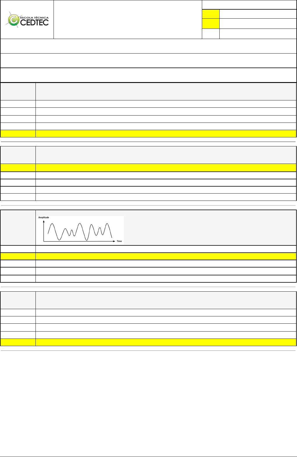 Pincel Atômico - 15/11/2024 07:52:53 1/1 Exercício Caminho do Conhecimento - Etapa 4 (21117) Atividade finalizada em 23/02/2024 20:58:20 (1600575 / 1) LEGENDA Resposta correta na questão # Resposta correta - Questão Anulada X Resposta selecionada pelo Aluno Disciplina: CONTROLADOR LÓGICO PROGRAMÁVEL [996996] - Avaliação com 4 questões, com o peso total de 13,00 pontos [capítulos - 111] Turma: Curso Técnico: Eletrotécnica - Grupo: FEVEREIRO/24 PRES - ELETGUA NOT [109376] Aluno(a): 91571599 - ROBERT CAVALCANTE VIEIRA DA SILVA - Respondeu 1 questões corretas, obtendo um total de 3,25 pontos como nota [350096_126954] Questão 001 Não é um exemplo de uma saída digital: Relé X Contator Válvula Solenóide Controle de nível [350097_126889] Questão 002 Qual das alternativas NÃO é característica de um CLP: X Não poderem realizar operações aritméticas. São programáveis. Podem ser reutilizados. Grande confiabilidade. Permitem interface de comunicação com outros CLPs. [350096_126887] Questão 003 São características de sinais analógicos serem: Discretos no tempo e discretos na amplitude. Contínuos no tempo e contínuos na amplitude. Contínuos no tempo e discretos na amplitude. X Contínuos no tempo, não importando a variação na amplitude. Discretos no tempo e contínuos na amplitude. [350097_126952] Questão 004 NÃO é um exemplo de uma entrada digital: Chave comutadora Chave de fim de curso X Botoeira Sensor de proximidade capacitivo Transmissor de umidade relativa