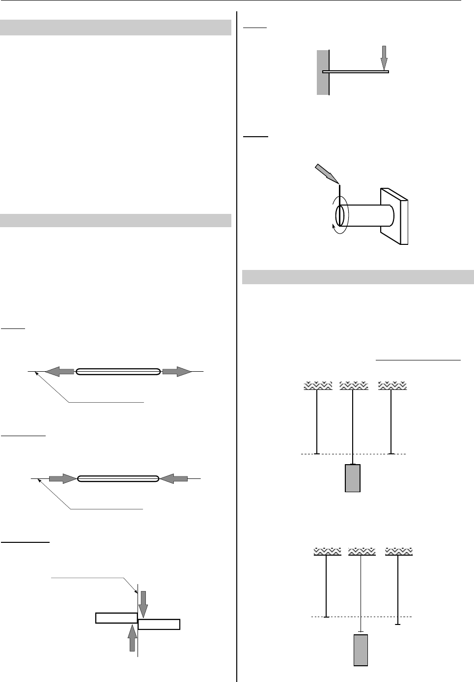 Tecnologia de Projetos II 2o Ciclo de Mecânica __________________________________________________________________________________________ - 1 - deformação transitória deformação permanente RESISTÊNCIA DOS MATERIAIS Na Estática os corpos são considerados indeformáveis tal hipótese é necessária afim de se conseguir um resultado completamente independente das propriedades da matéria de que são constituídos. A Resistência dos Materiais, que também faz parte da Mecânica, entretanto, considera os corpos tais como são na realidade, isto é, deformáveis e suscetíveis de sofrerem rupturas quando sob a ação de forças. Assim, a Resistência dos Materiais se ocupa em estudar: 1. As mudanças ocasionadas no corpo pela ação de forças externas e internas; 2. As propriedades (dimensões, forma, material) que o fazem capaz de resistir à ação dessas forças. SOLICITAÇÕES Um sistema de forças pode ser aplicado num corpo de diferentes maneiras, originando portanto diversos tipos de solicitações, tais como tração, compressão, cisalhamento, flexão e torção. Quando cada tipo se apresenta isoladamente, diz-se que a solicitação é simples . No caso de dois ou mais tipos agirem contemporaneamente a solicitação é composta. Tração - solicitação que tende a alongar a peça no sentido da reta de ação da resultante do sistema de forças. F F Reta de ação da força Compressão - solicitação que tende a encurtar a peça no sentido da reta de ação da resultante do sistema de forças. F F Reta de ação da força Cisalhamento - solicitação que tende a deslocar paralelamente em sentido oposto, duas secções contíguas de uma peça. F F Reta de ação da força Flexão - solicitação que tende a modificar o eixo geométrico de uma peça. F Torção - solicitação que tende a girar as secções de uma peça, uma em relação às outras. F M t DEFORMAÇÃO A experiência ensina que a ação de qualquer força sobre um corpo altera a sua forma, isto é, provoca uma deformação. Com o aumento da intensidade da força, há um aumento da deformação. No ensaio de tração, um fio solicitado pôr uma força de pequena intensidade sofrerá uma deformação transitória e retomará seu comprimento inicial quando a força for removida. Aumentando a intensidade da força, o fio sofrerá uma deformação permanente. O ponto que separa os dois tipos de deformações é o limite de elasticidade Tecnologia de Projetos II 2o Ciclo de Mecânica __________________________________________________________________________________________ - 2 - l l o ∆l P σ A(área) ALONGAMENTO UNITÁRIO Alongamento unitário ( ε ) é a relação entre o alongamento total ( ∆l ) e o comprimento inicial ( l ). ε = ∆ ο l l [ cm/cm] Pode ser expresso também em porcentagem(%). TENSÃO Tensão (σ)é a relação entre a força normal (P) e a área (S). σ = P A [ Kgf/cm2 ou Kgf/mm2 ] σ é a força aplicada em cada quadradinho de área unitária DIAGRAMA TENSÃO-DEFORMAÇÃO Como já foi visto, o ensaio de tração consiste em aplicar num corpo de prova uma força axial com o objetivo de deformá-lo até que se produza sua ruptura. O ensaio é feito com auxílio do extensômetro, esquematizado ao lado. F F Corpo de Prova Aumentando-se a tensão, a deformação também vai aumentando e os resultados da experiência podem ser mostrados por um gráfico, marcando em abcissas as deformações (alongamento unitário) e em ordenadas as tensões. ε σ 1 32 σp σ r σ e P E R (1). zona elástica deformação transitória (2). zona plástica deformação permanente (3). zona de ruptura O gráfico representa o caso típico do aço doce (baixo teor de carbono). Até o ponto P, o gráfico é uma reta. Neste trecho é válida a lei de Hook, que diz: As deformações são diretamente proporcionais às tensões que as produzem. O ponto P é o limite de elasticidade e a tensão correspondente é a tensão de proporcionalidade ( σp ). O trecho PE ainda se verifica a elasticidade mas já não é pura, pois, tem-se um misto de deformações elásticas e deformações permanentes. De fato, cessando as solicitações, o corpo de prova não readquire completamente o formato primitivo, mas tenderá a este, permanecendo parcialmente deformado. Depois do ponto E a tensão sofre oscilações desordenadas enquanto o material vai se deformando com grande fluidez. Este fenômeno é chamado de escoamento e a tensão correspondente tensão de escoamento ( σe ). Tecnologia de Projetos II 2o Ciclo de Mecânica __________________________________________________________________________________________ - 3 - Convém frisar que o escoamento é característico nos aços doces e outros materiais. Ele marca o início das grandes deformações permanentes. Continuando o ensaio, nota-se que a curva toma um aspecto definido até atingir o ponto R, onde se verifica a ruptura do corpo. Este ponto é o limite de ruptura e a tensão atingida é a tensão de ruptura (σr). Todos os materiais apresentam, com variantes mais ou menos acentuadas, o mesmo comportamento, e o diagrama terá sempre aspecto semelhante, apesar de alguns trechos se confundirem para alguns materiais e se evidenciarem para outros. No aço duro, por exemplo, não se verifica o escoamento enquanto o chumbo e o estanho são caracterizados por isto. DIMENSIONAMENTO No dimensionamento dos elementos de máquinas admitem-se apenas deformações elásticas. Os cálculos podem ser: de verificação ou de dimensionamento propriamente dito. Verificação No primeiro caso escolhem-se as dimensões e depois verifica-se se a tensão de trabalho não ultrapassa a tensão admissível. σ = ≤ σt P A onde ( σ ) é tensão admissível [kgf/mm2 ou kgf/cm2] Dimensionamento No segundo caso, o processo é inverso: as dimensões são calculadas admitindo-se a tensão de trabalho, com critério e segurança. Α ≥ σ P (A) é a área da seção transversal da peça [cm2 ,mm2] Vejamos 